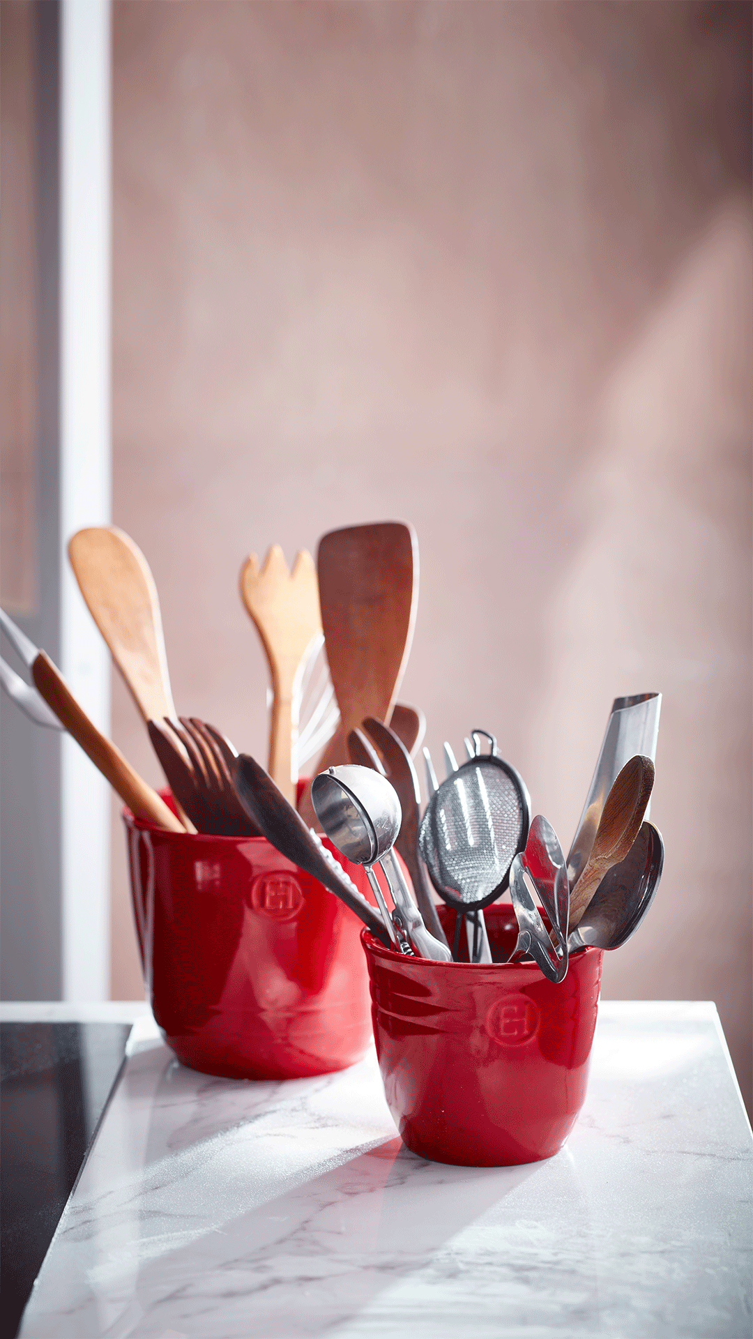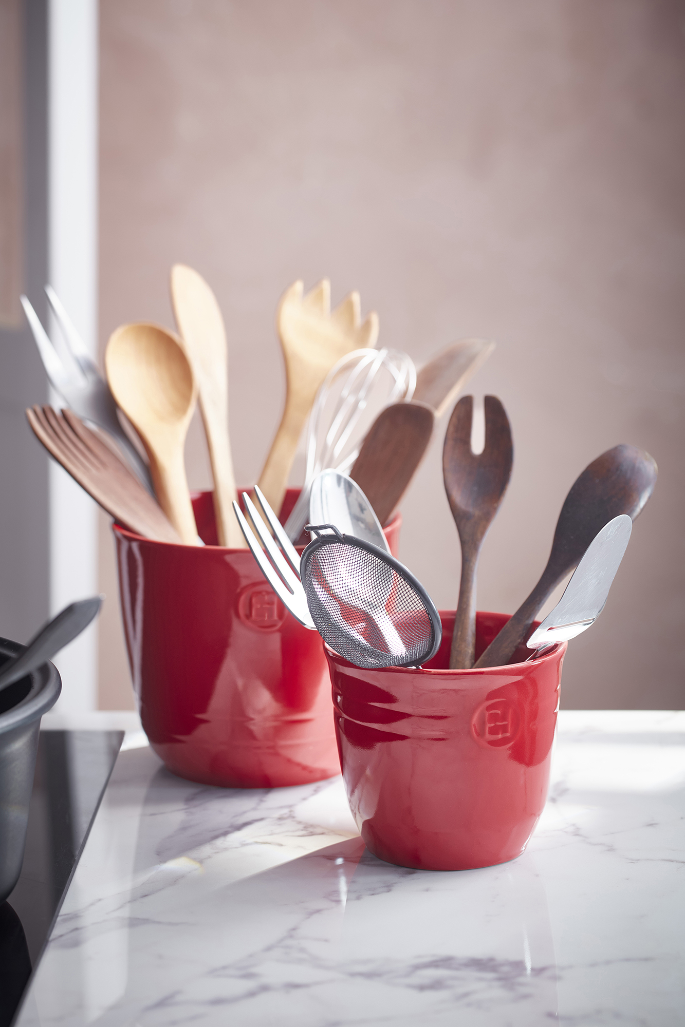 Поставка за кухненски прибори, диаметър 13 см и височина 12 см, изработена от HR® керамика, марка Emile Henry.