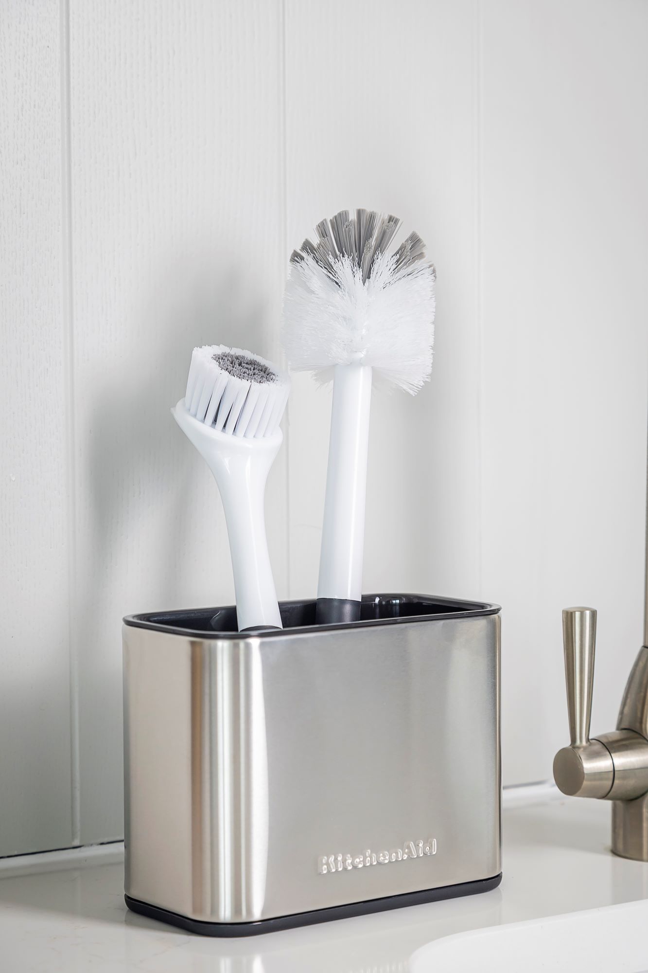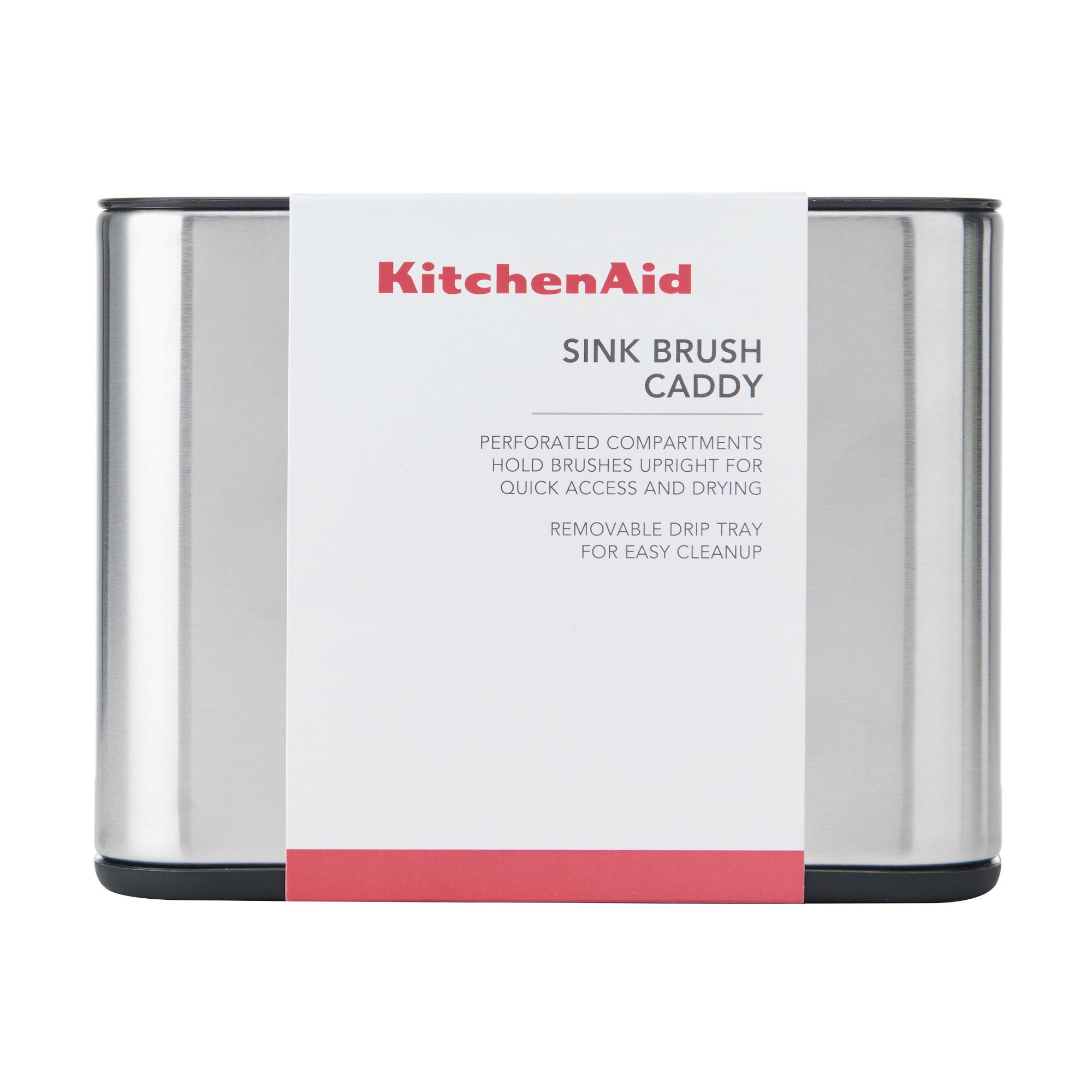 Поддържайте четките и аксесоарите си за мивка перфектно организирани с поставката за мивка от неръждаема стомана, марка KitchenAid.