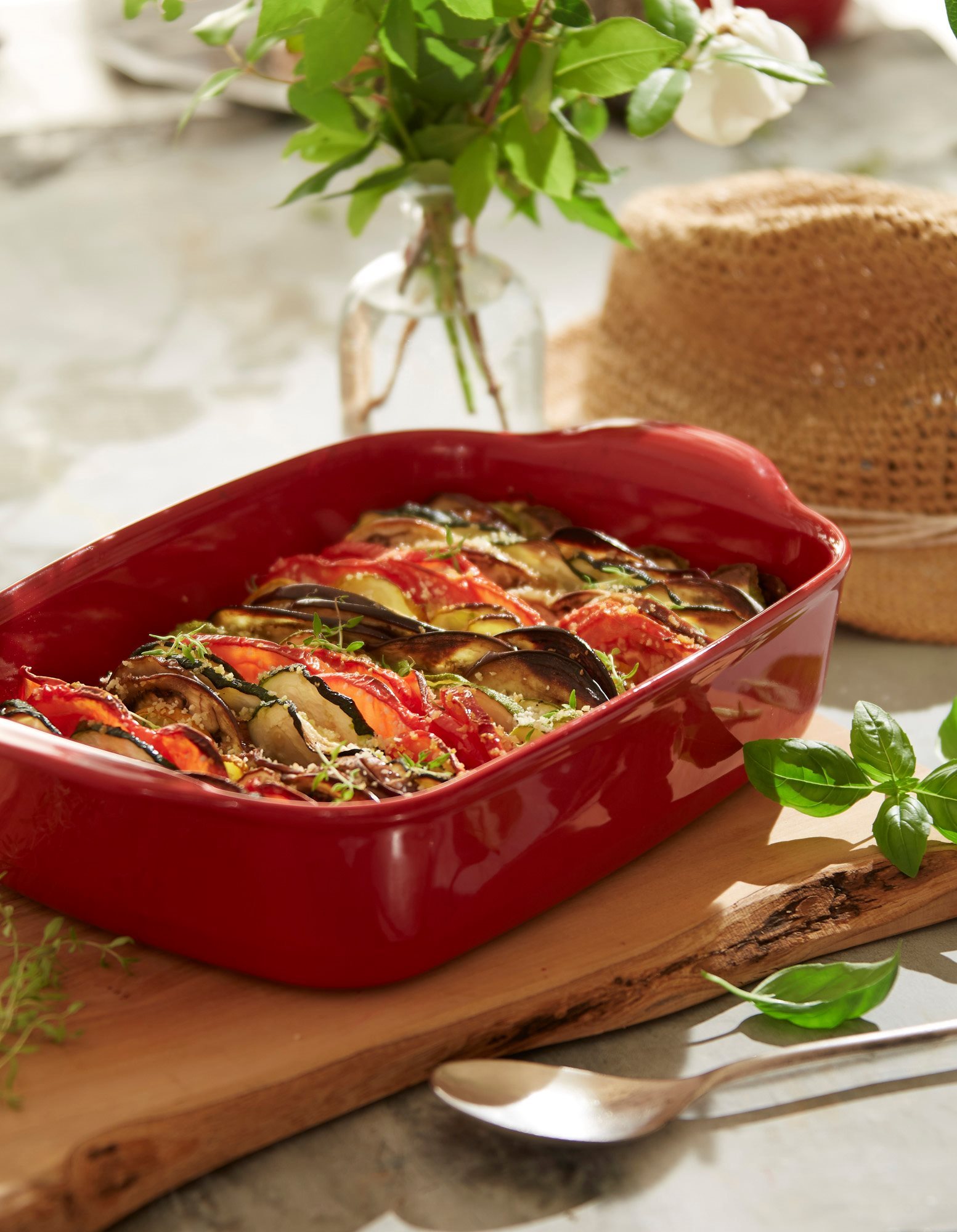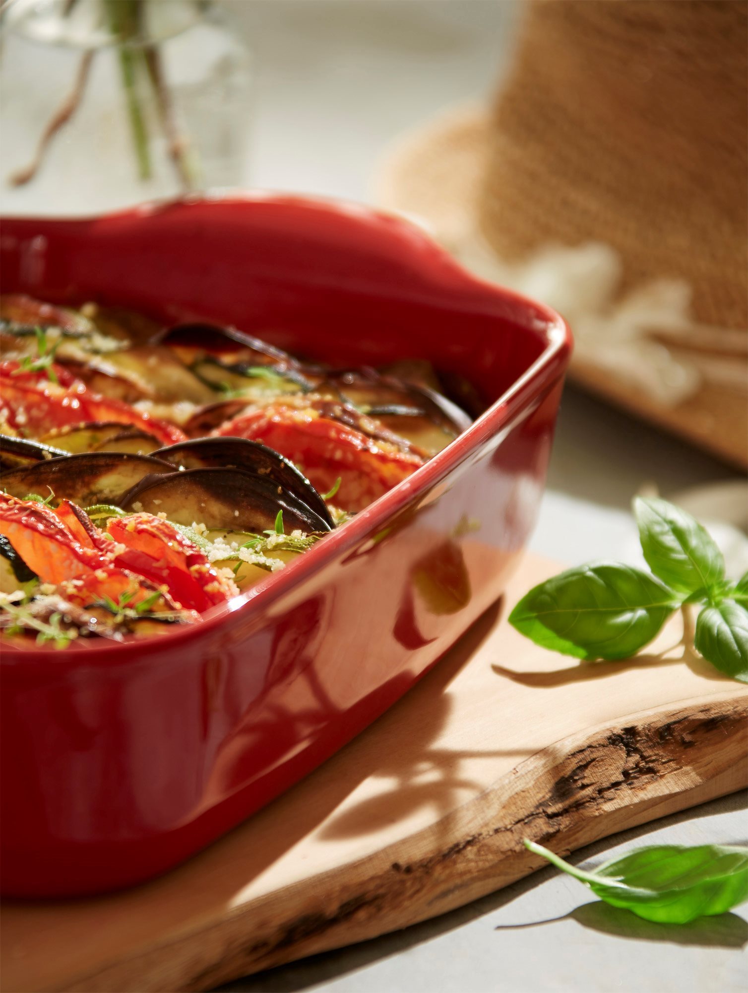 Това ястие за печене, част от колекцията, е идеално за приготвяне на бързо хранене. Поради силно устойчивия на топлина материал, от който е изработен продуктът, а именно висококачествена керамична, ястието може незабавно да бъде прехвърлено от температури надолу до -20°C до температури над 270°C, както във фурна, така и в микровълнова печка. Правоъгълната му форма с дръжки дава възможност за лесно боравене, а в същото време ярко оцветения му дизайн ще донесе допълнителен стил във вашата кухня!