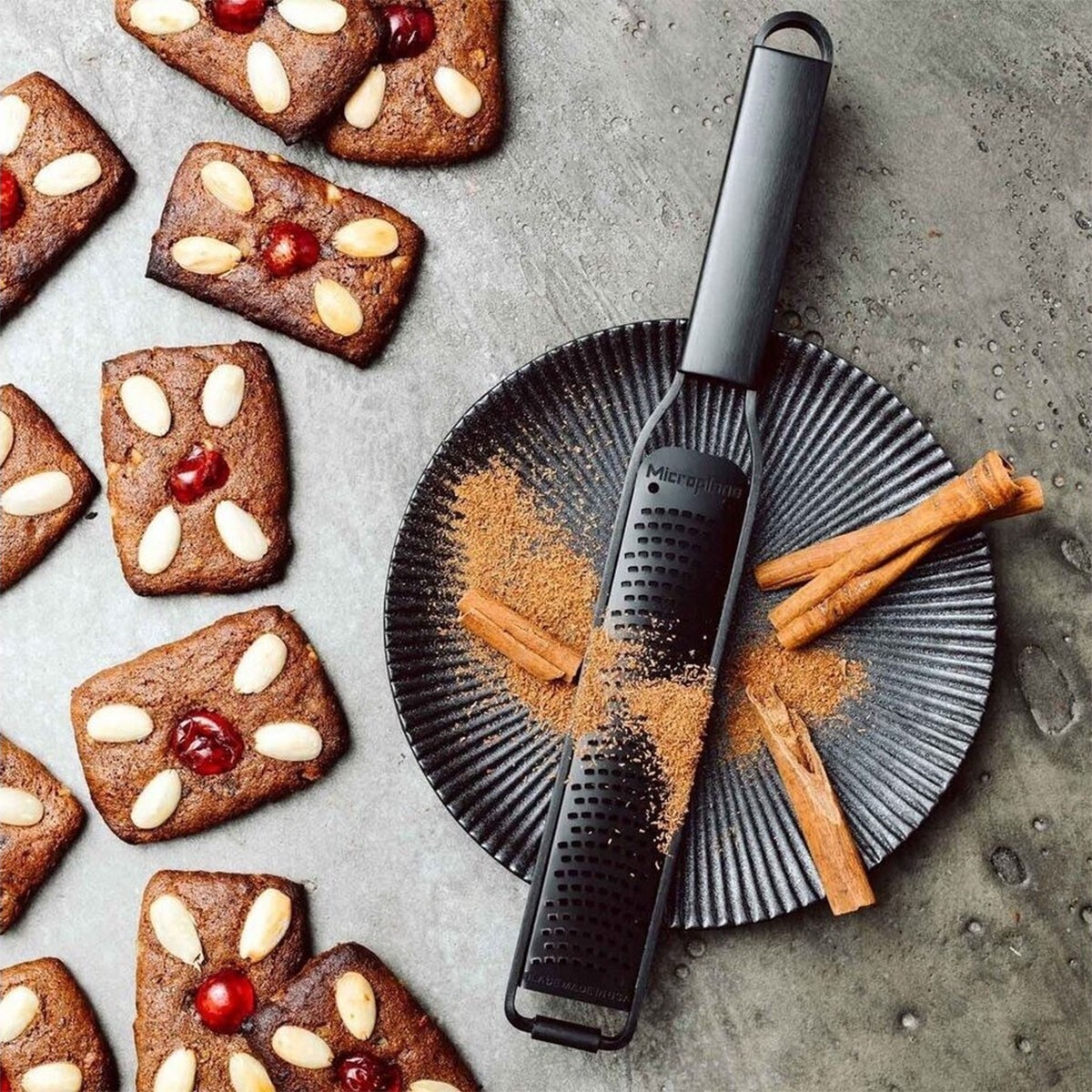 Цитрусова ренде от гамата "Black Sheep", произведена от Microplane, изработена изцяло от неръждаема стомана, с елегантно матово черно покритие.