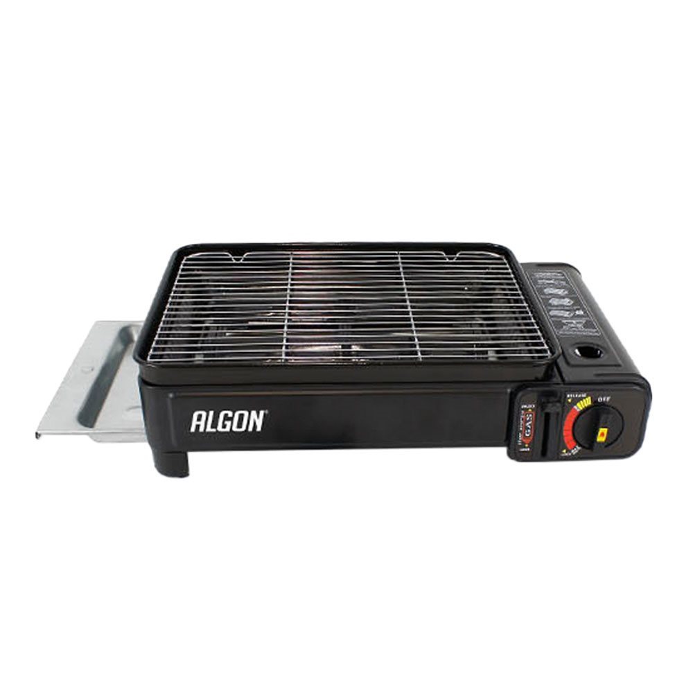 Газовият котлон има подвижна решетка с емайлирана повърхност, включва тава за събиране на мазнини и има регулируем бутон за контрол на температурата (предпазен механизъм).