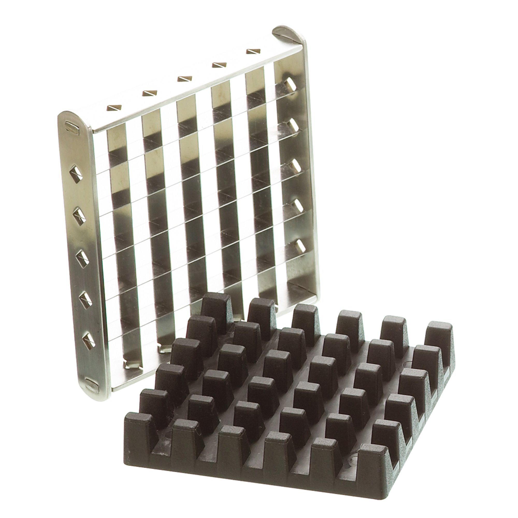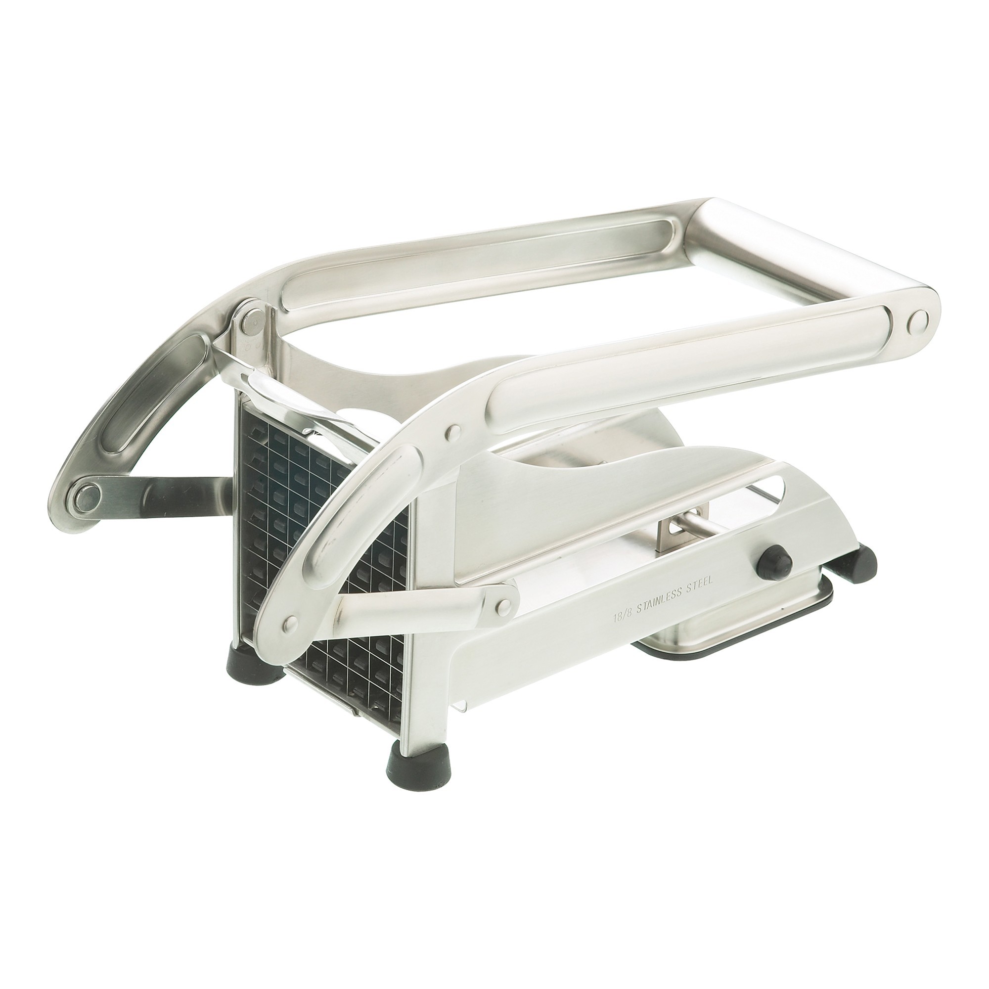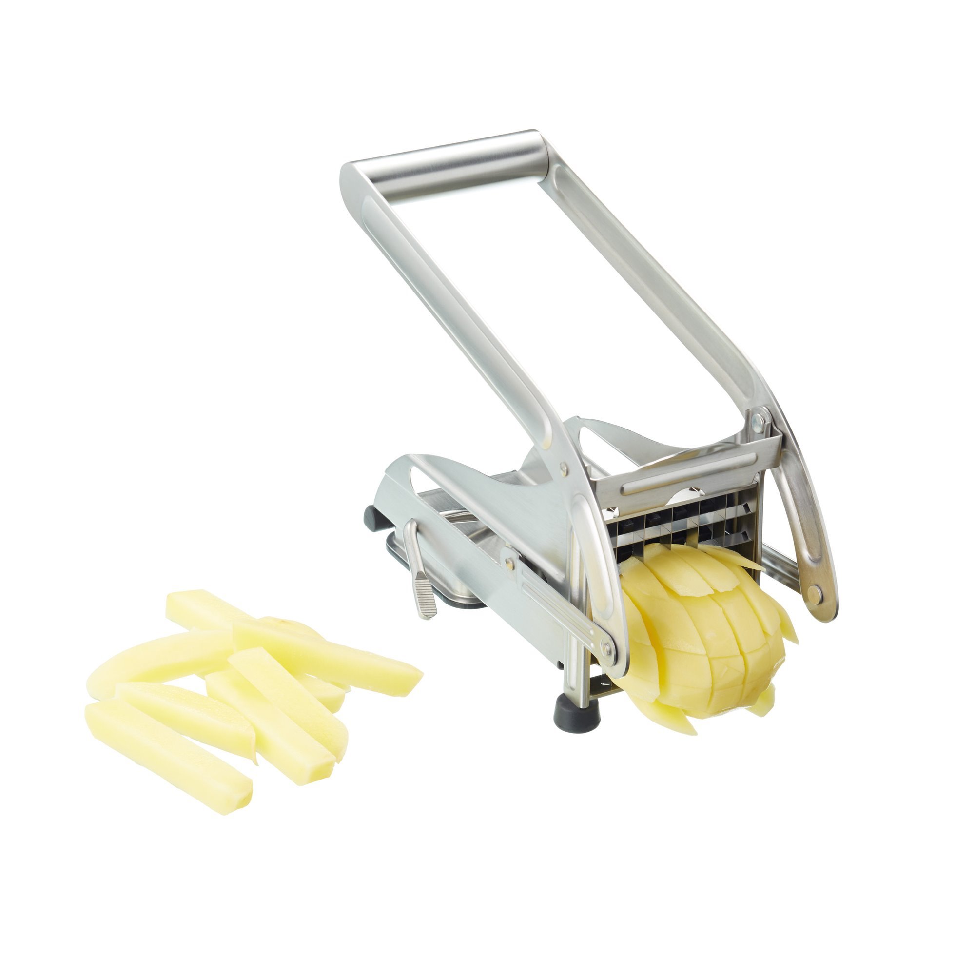 Красиво проектиран, изработен от висококачествена неръждаема стомана, този резач за картофи е перфектен за приготвяне на чипс и пържени картофи, като е снабден с две сменяеми остриета (с 36 отвора за чипс и 64 отвора за пържени картофи).