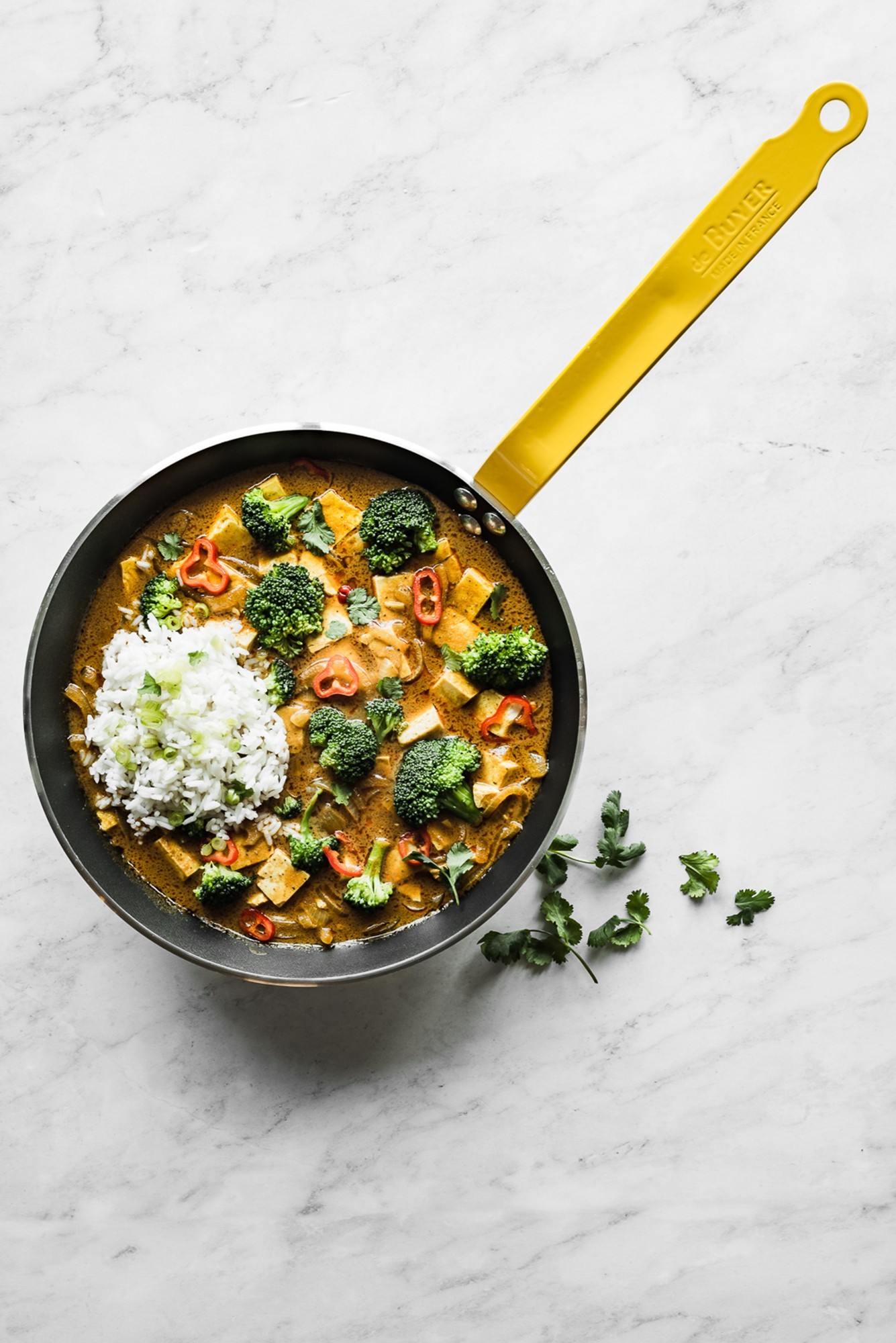 Тиган, de Buyer марка, диаметър 24 см, височина 3,5 см, изработен от алуминий с дебелина 4 мм. Продуктът е с антизалепвателно покритие, направено от PTFE, състоящо се от 5 слоя, което не съдържа PFOA и има повишена устойчивост на драскотини. Тиганът е в съответствие с международните стандарти на НАССР