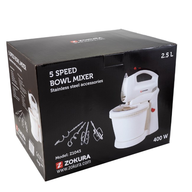 С помощта на ръчния миксер с купа, маркаZokura, ще успеете да приготвите бързо и без много усилия , теста и кремове, като един истински професионален готвач. С мощност от 400W, миксера има 5 нива на скорост и е оборудван с турбо бутон.