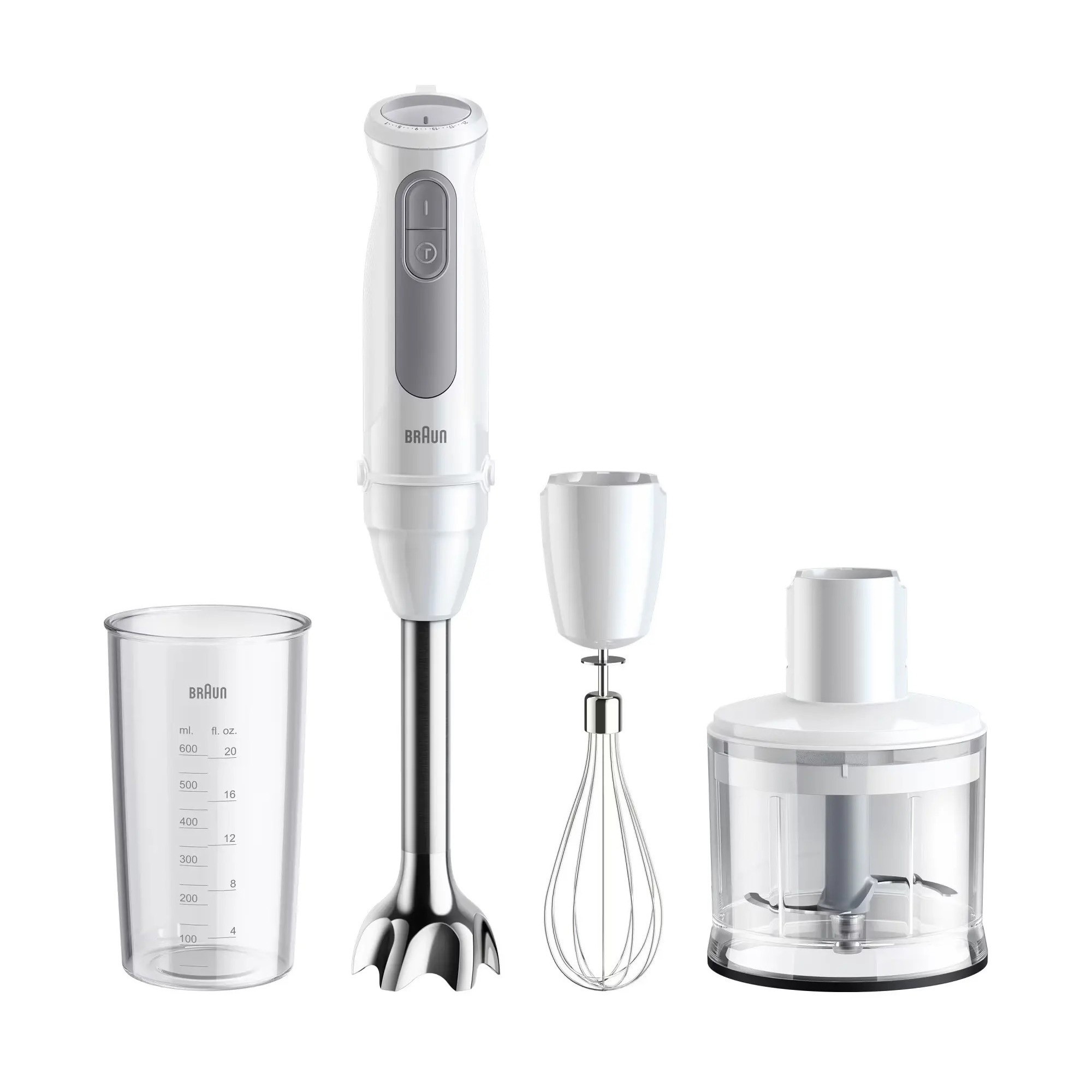 Ръчен пасатор Braun MQ50236M, 1000 W, Мерителна чаша 0,6 л, Чопър 0,5 л, Турбо функция, Разбиване, 21 степени на скорост, Бял