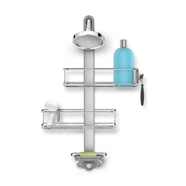 Регулируема стойка за аксесоари за душ, произведена от анодизиран алуминий и неръждаема стомана, марка simplehuman