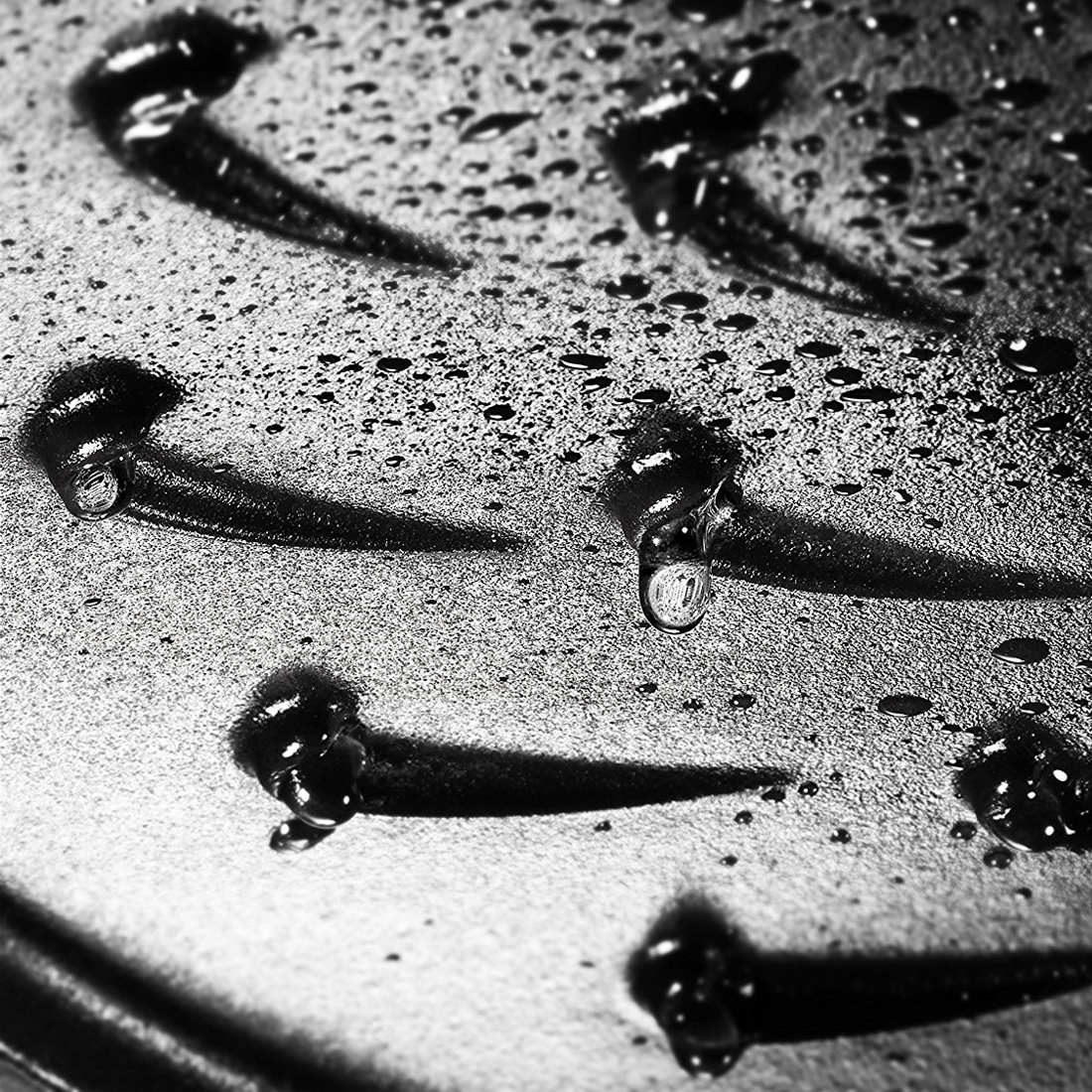 - Тежкият капак, изработен от чугун и изявите от вътрешната страна на ястието осигуряват затворена верига, която позволява поддържане на влажността вътре в ястието и усилване на вкусовете.
