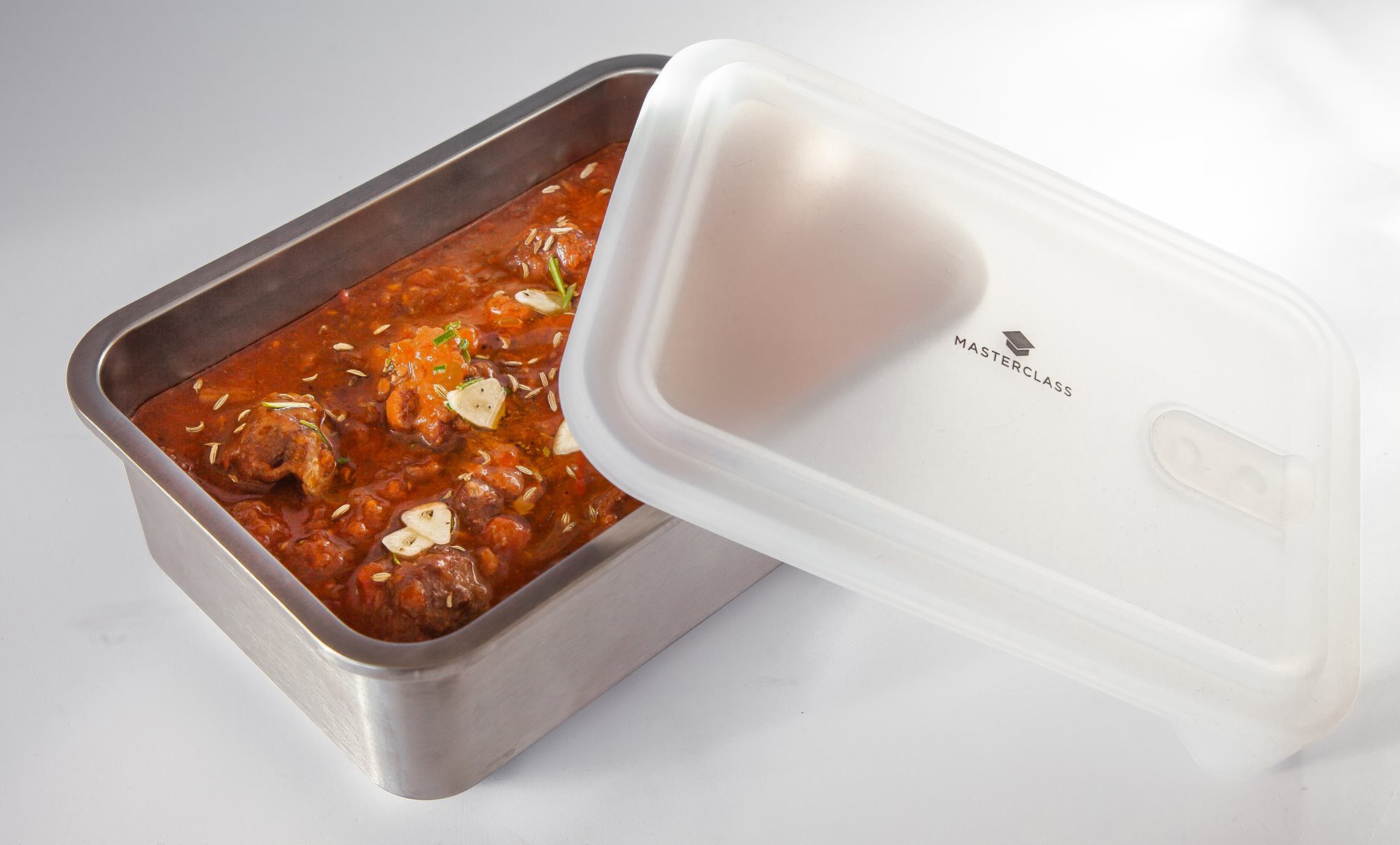 Гответе, замразявайте, загрявайте и яжте с помощта на този революционен контейнер за храна all-in-one, от MasterClass. Изработен от неръждаема стомана, това е отлична алтернатива както на пластмасовите, така и на стъклените съдове.