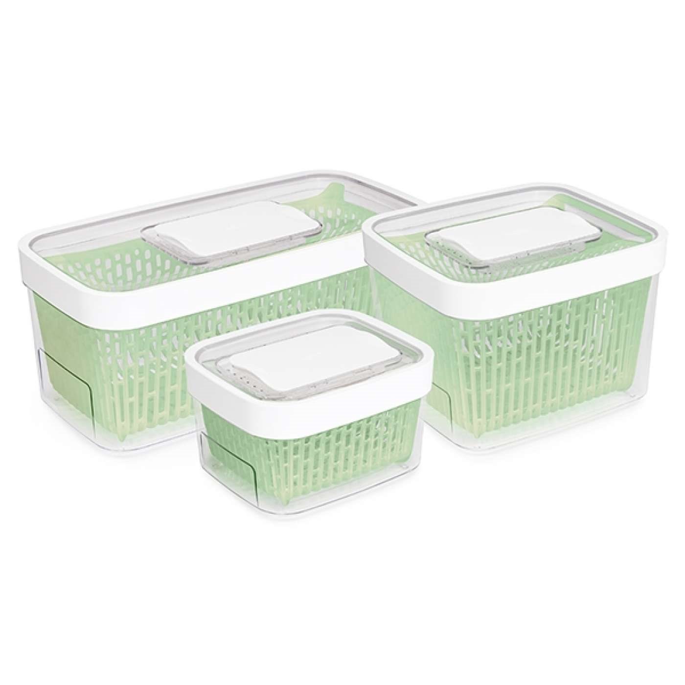 Съд за съхранение на хранителни продукти, марка OXO, изработен от платмаса.