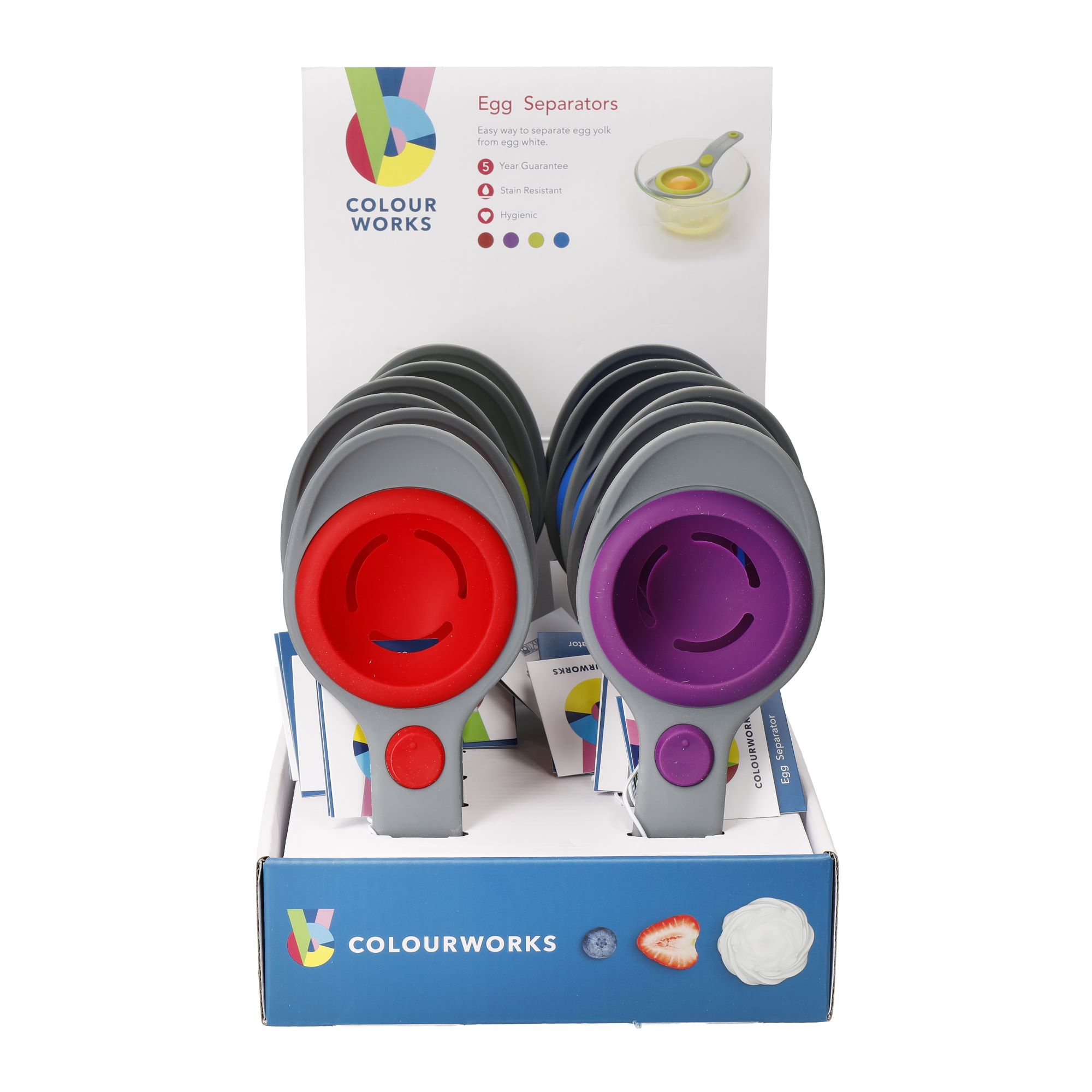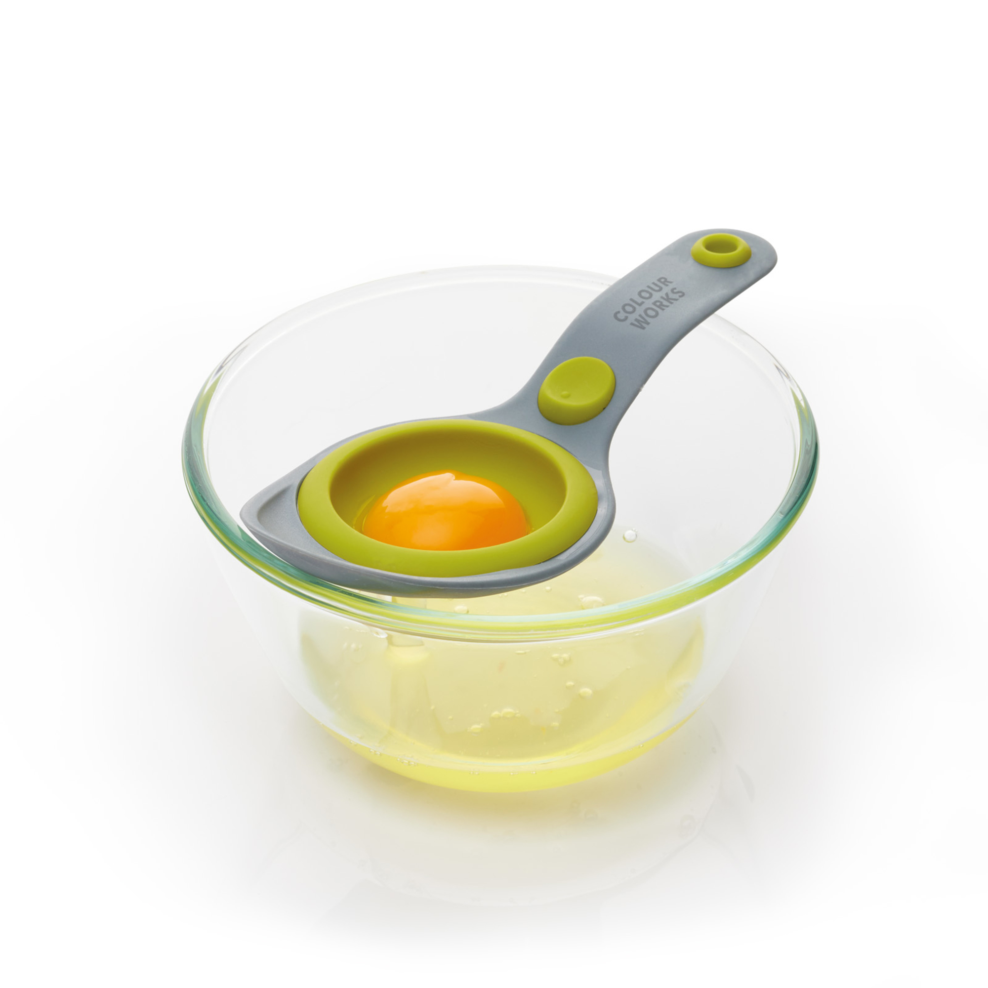 Разделител за яйца, марка Colourworks, със силиконово сито и пластмасова рамка. Този продукт е идеален за отделяне на жълтък от яйчен белтък.