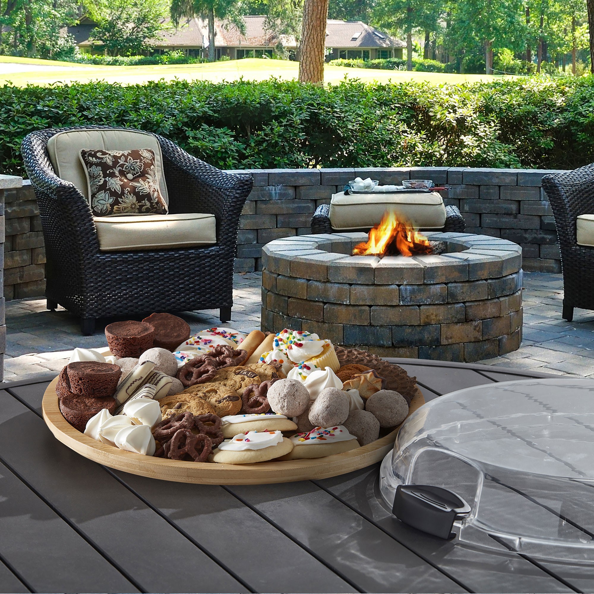 Сервираща дъска за предястия, Farberware™ Build-a-Board, изработена от бамбук, диаметър 35,5 см, снабдена с пластмасов капак.