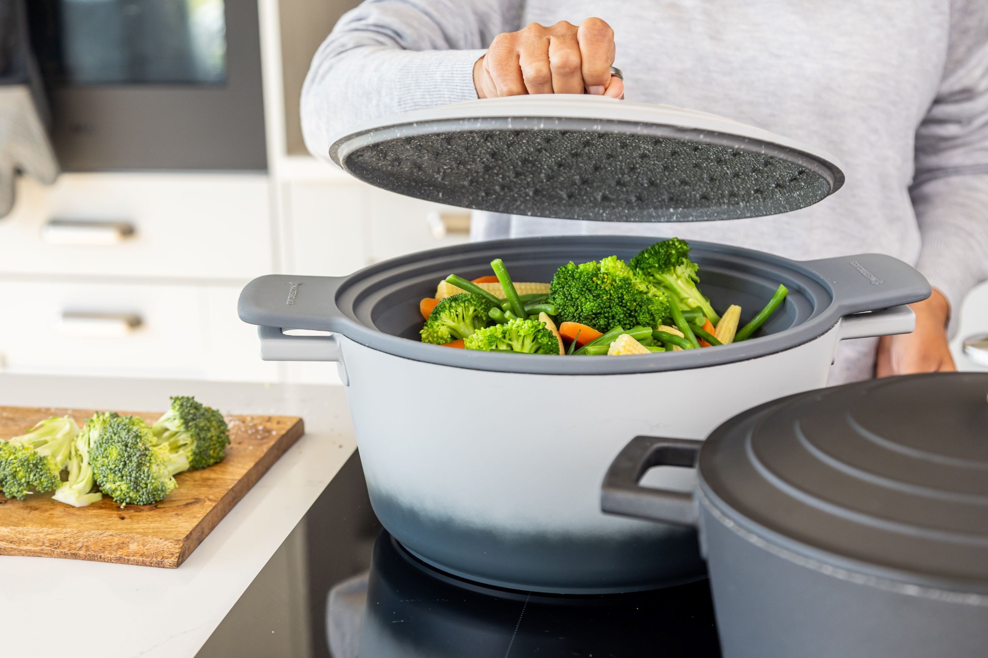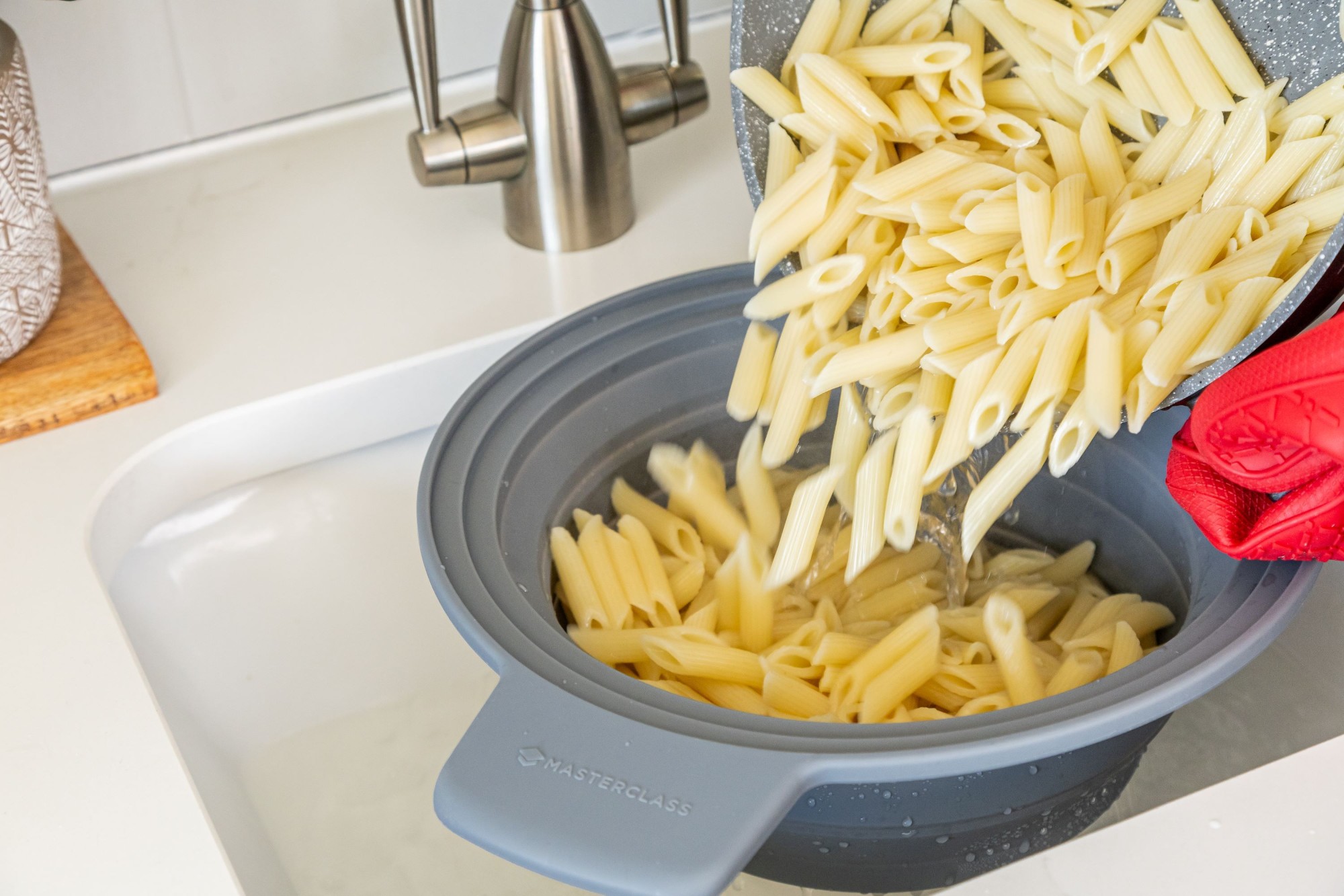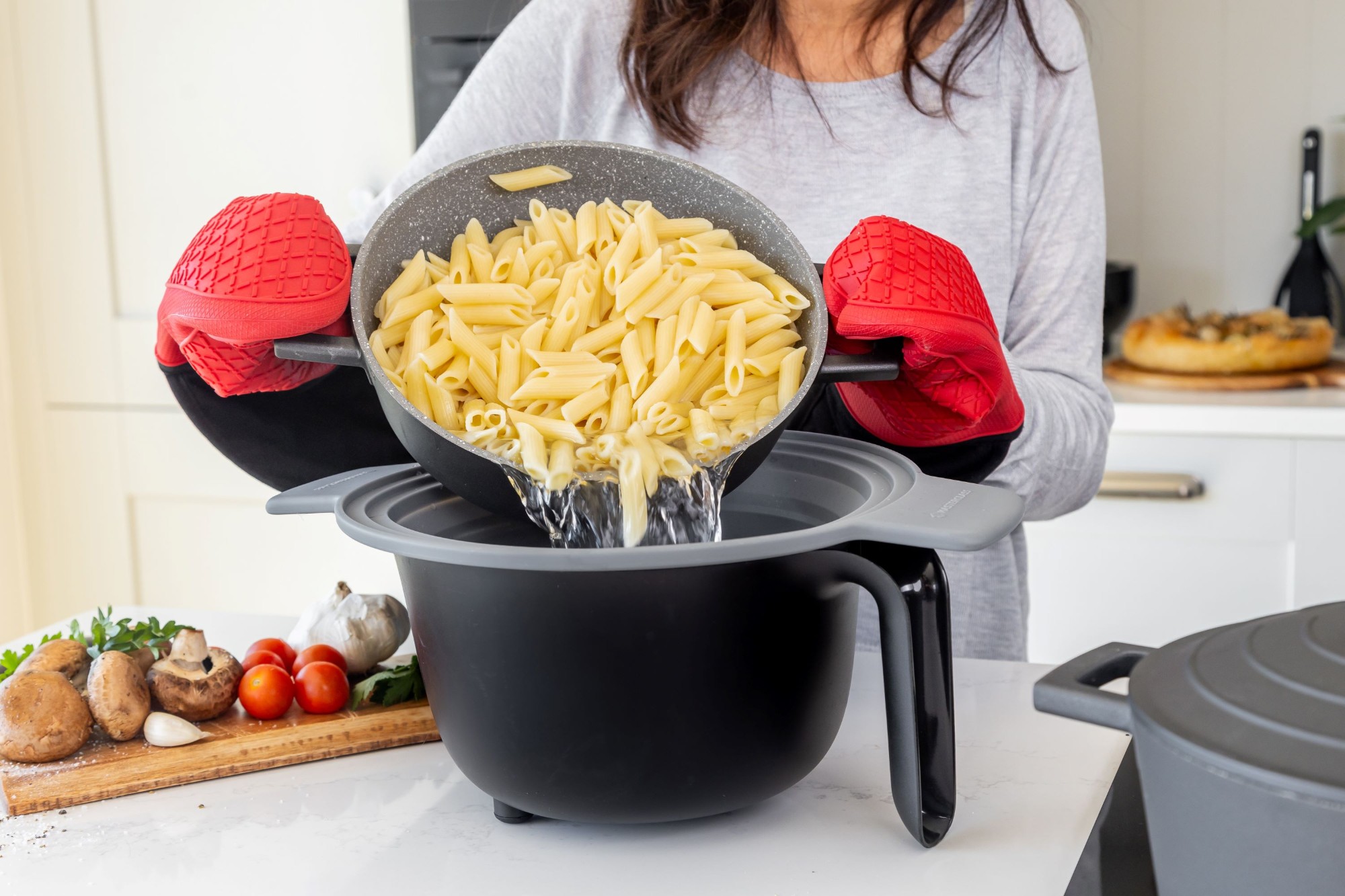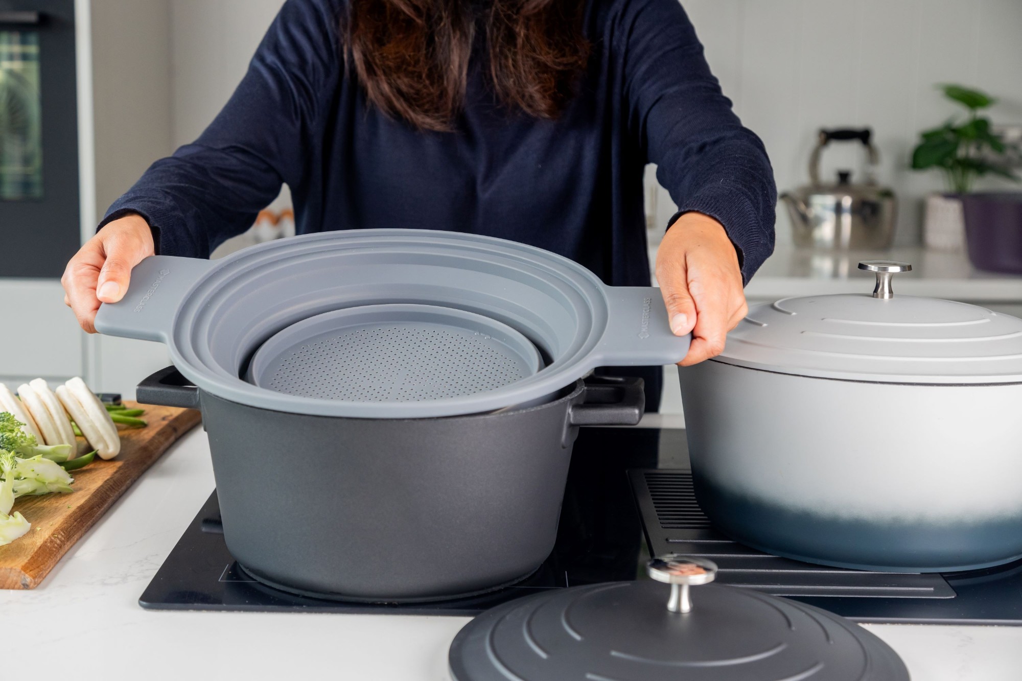 Цедката е предназначена да побира MasterClass съдове за готвене от лят алуминий, както и други съдове за готвене с диаметър между 24 - 30 см.
