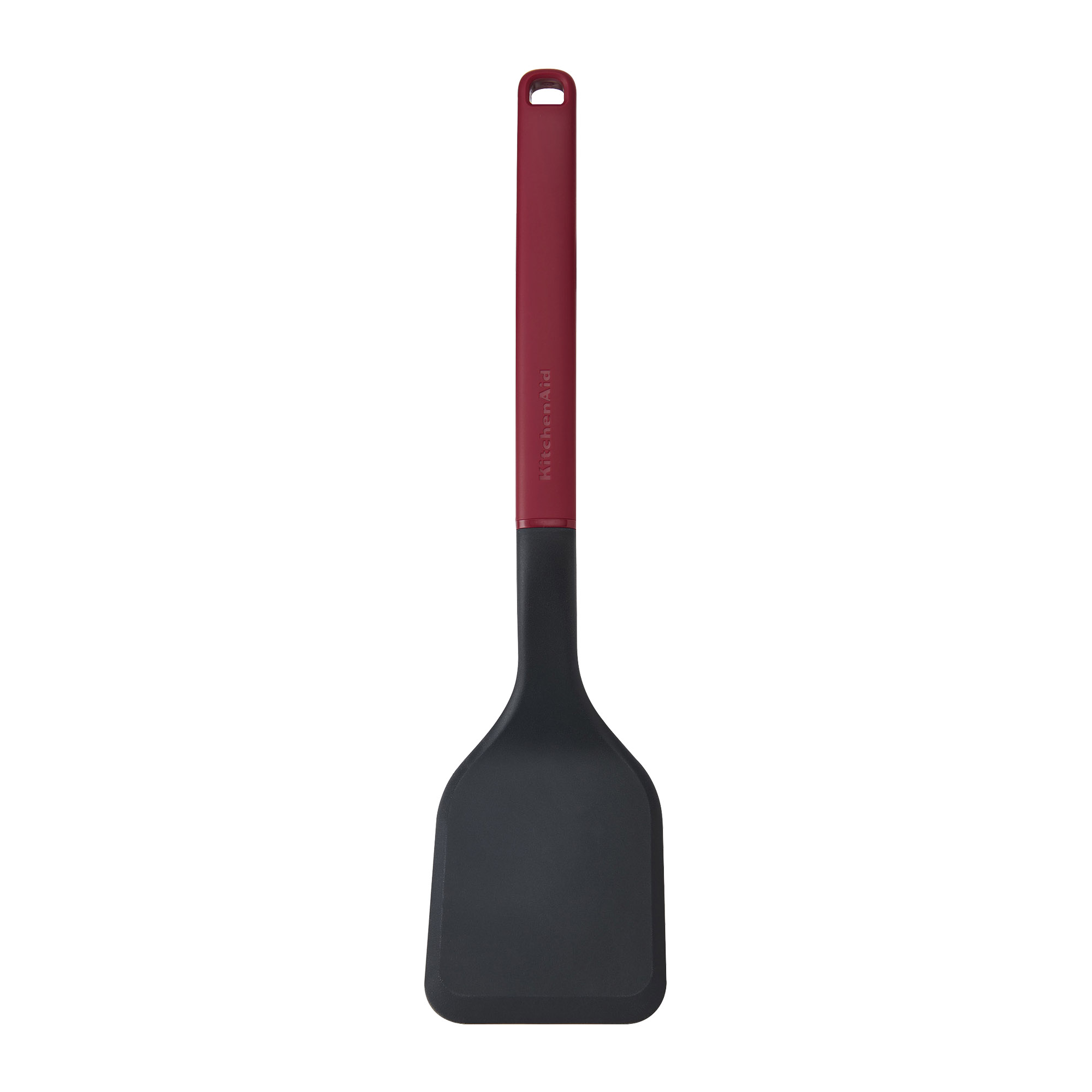 Шпатула, произведена от KitchenAid, изработена от пластмаса, безопасна за употреба с всички видове съдове за готвене, включително такива с незалепващо покритие.
