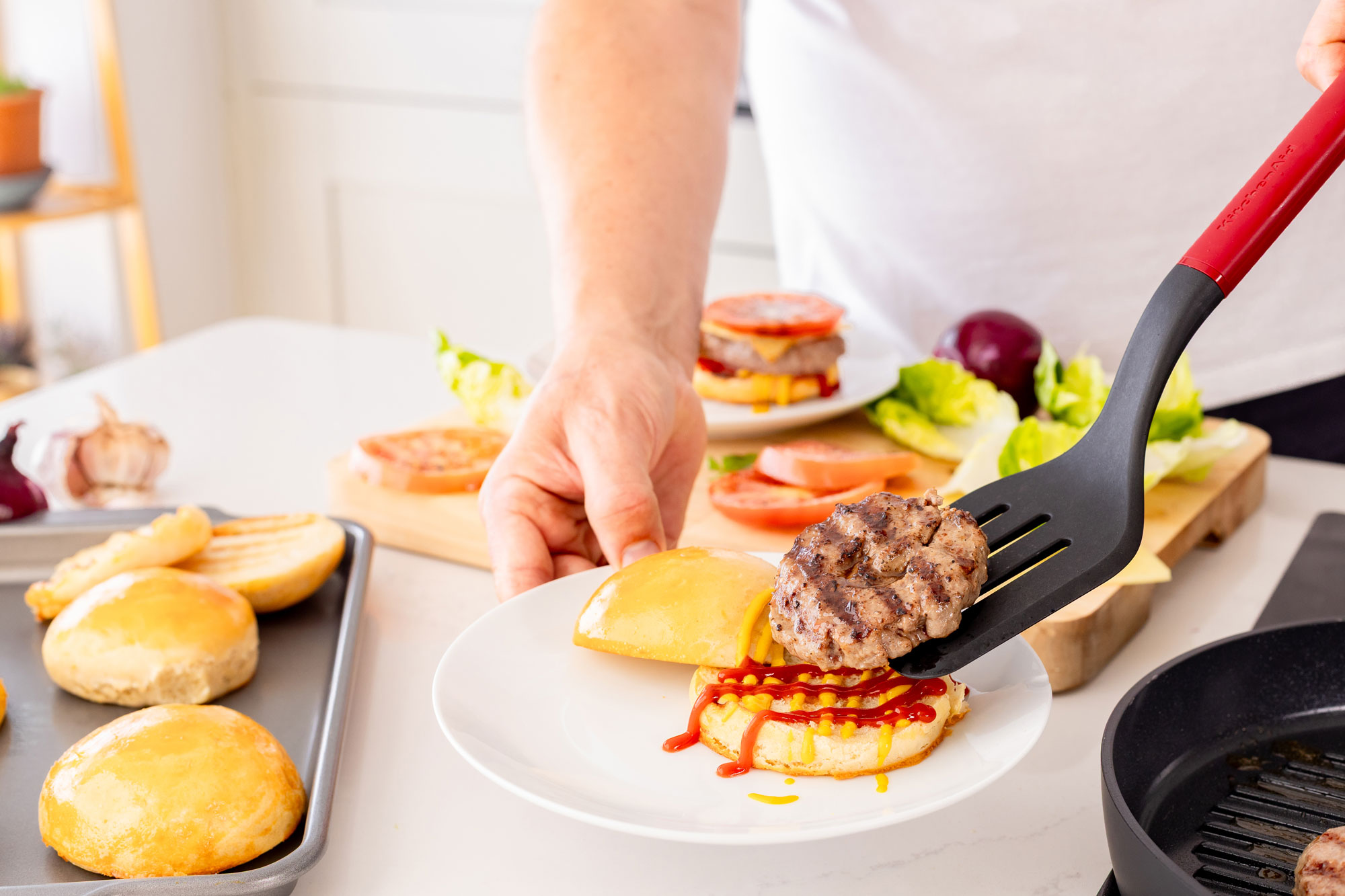 Голямата с прорези глава осигурява повърхност, която позволява по-голям контрол при повдигане и въртене на храна, и е устойчива на топлина до 232°C/450°F.