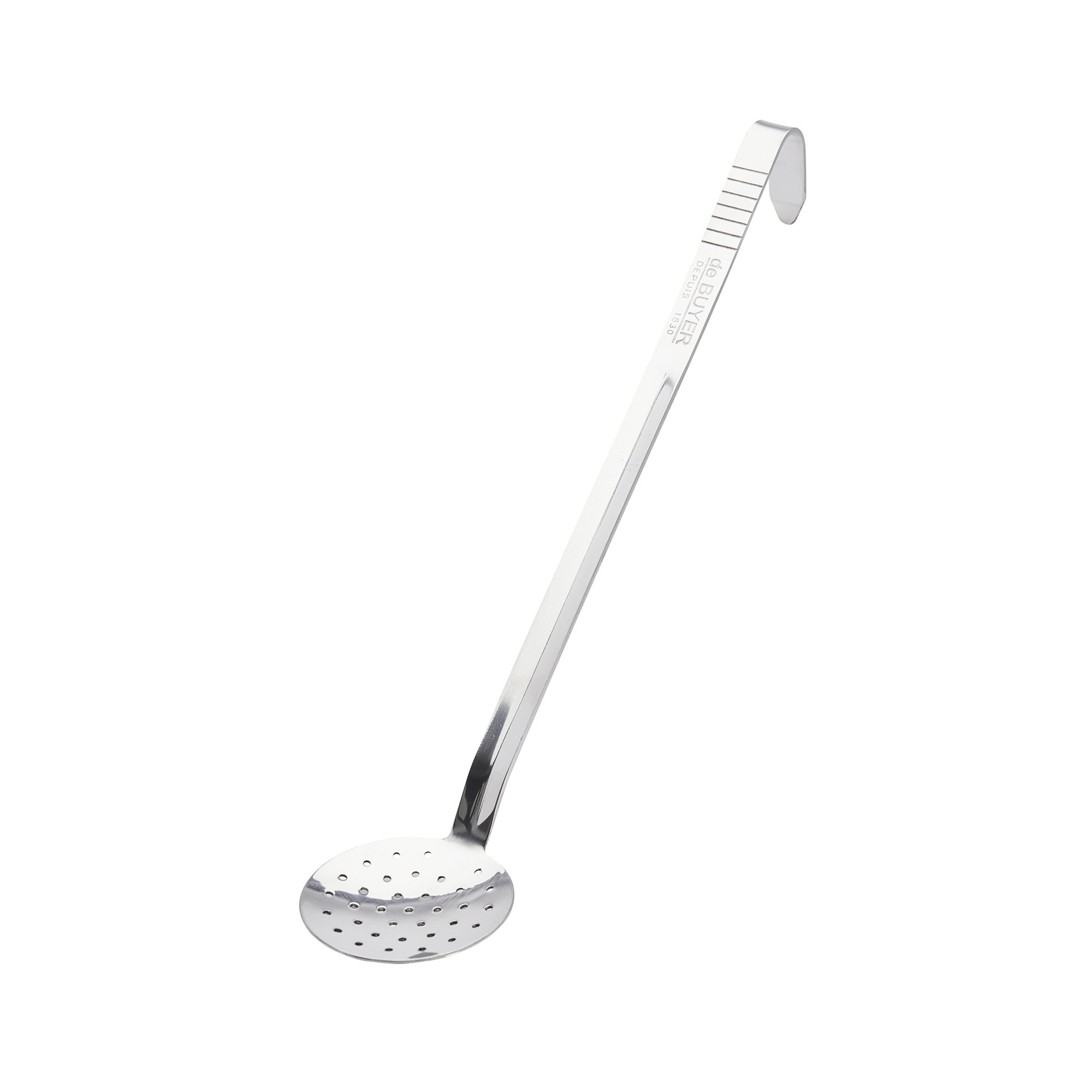 Приборът за отстраняване на пяна е полезен за премахване на деликатни храни (грисове за кнедли, кнедли, равиоли) и източване на течности, изработени от неръждаема стомана, с широка дръжка с дебелина 2,5 мм.