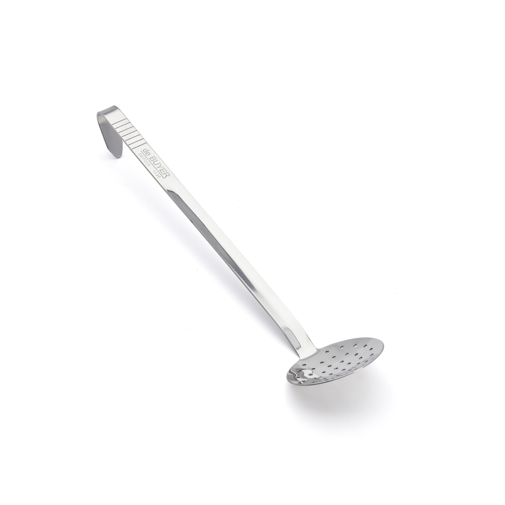 Инструмент за отстраняване на пяна, от неръждаема стомана, марка de Buyer с дължина на дръжката 32,9 см и диаметър 8 см.