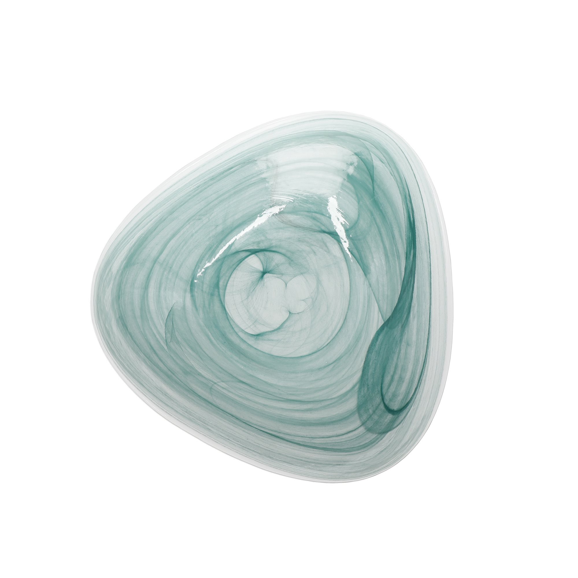 Тази стъклена купа за сервиране Artesa има извита органична форма и уникален дизайн с изумруденозелени спирали.