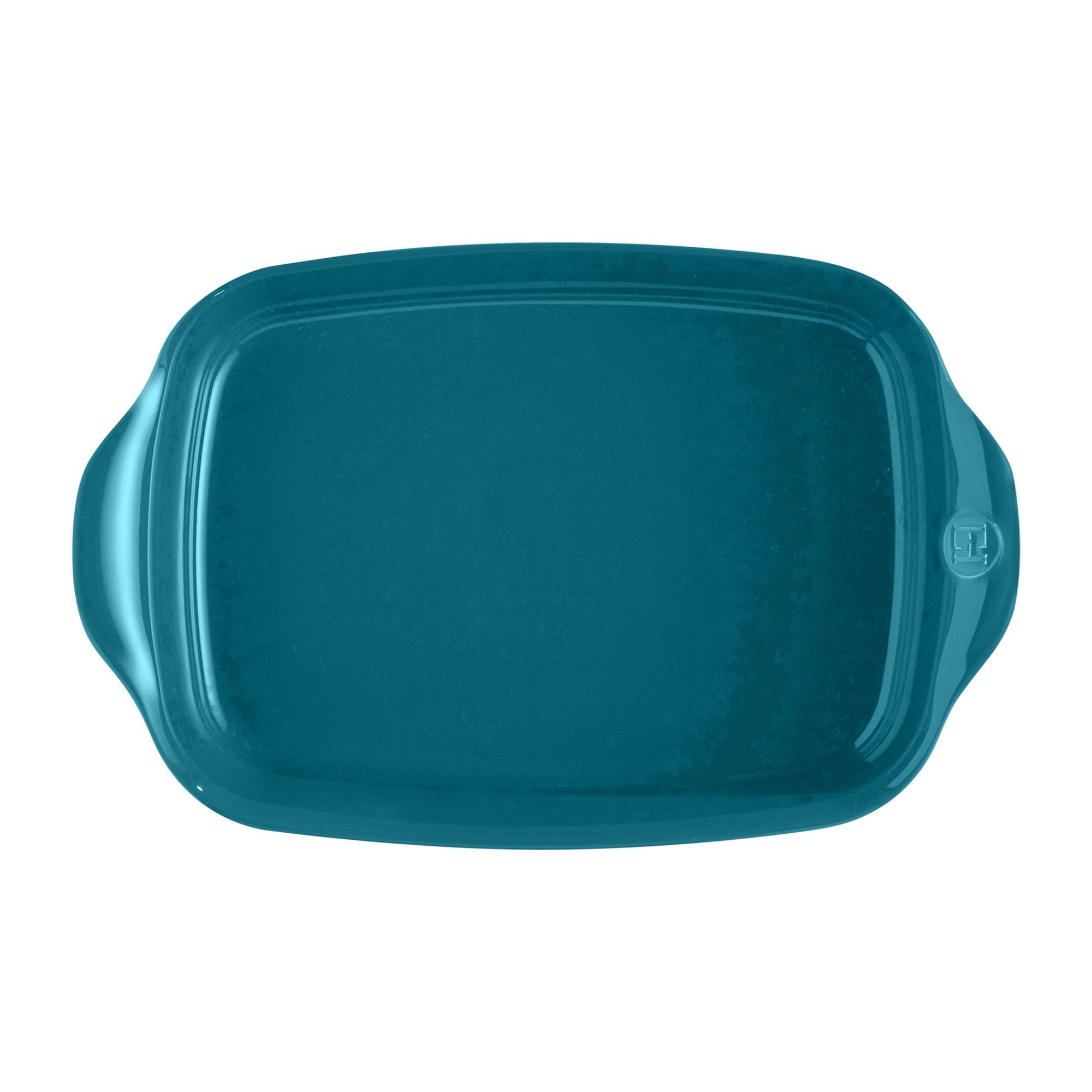 Правоъгълна тава, марка Emile Henry, с размери 30 x 19 x 6,5 см (вътрешна величина 24,5 x 17,5 x 7 см), вместимост 1,55 л, с обикновен и практичен дизайн. Тавата има широки ръбове за добро захващане/боравене, а дълбочината му го прави идеален за приготвяне на пържоли, лазаня или за гратиниране.
