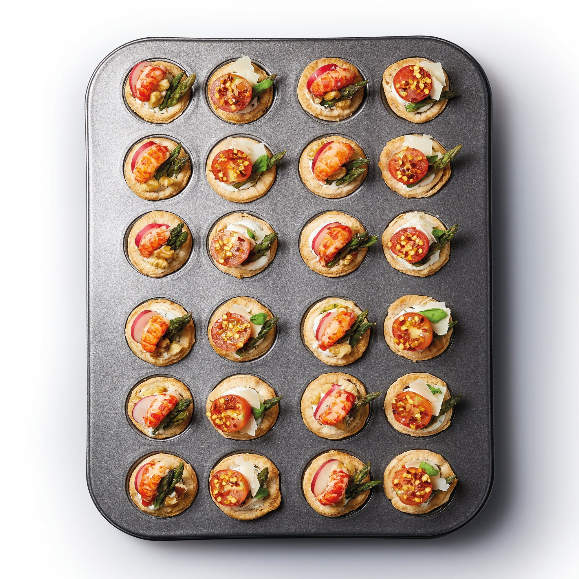 Тази тава от Kitchen Craft е идеална за приготвяне на мини-тарти, мини-кишове или кифини. Изработена е от твърда стомана, размери 35 х 27 см, снабдени с двоен незалепващо слой.