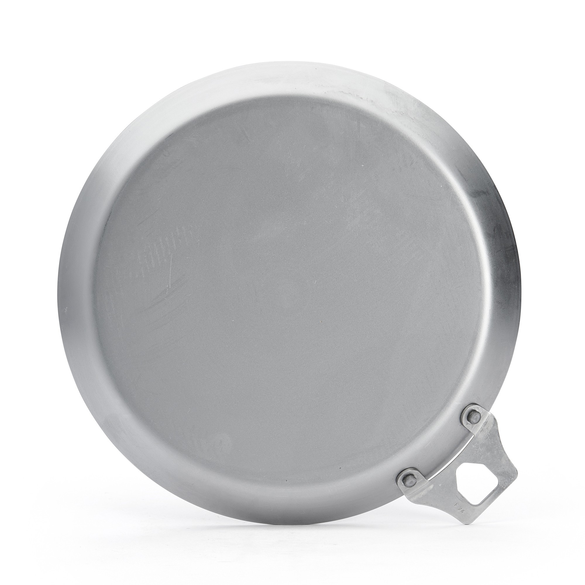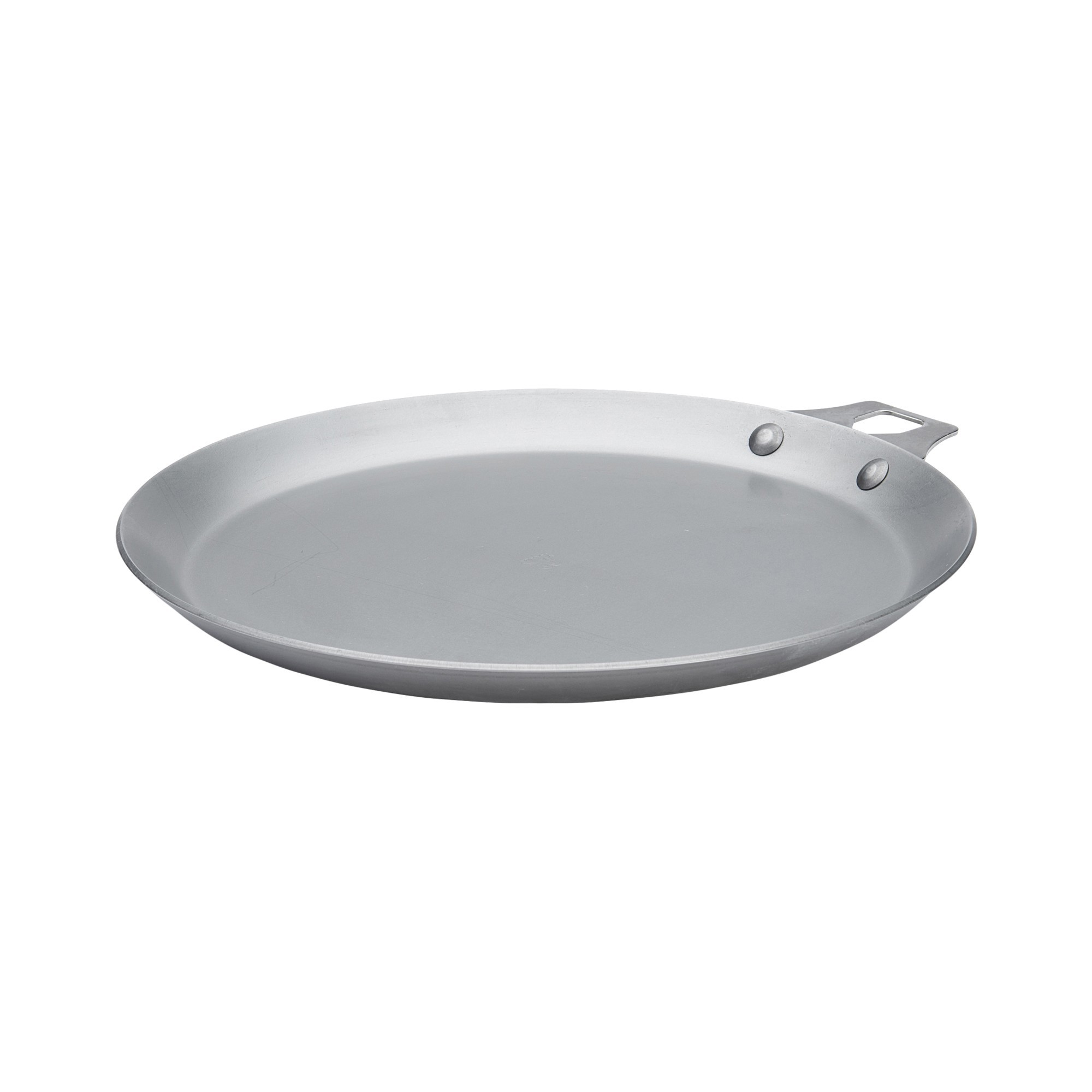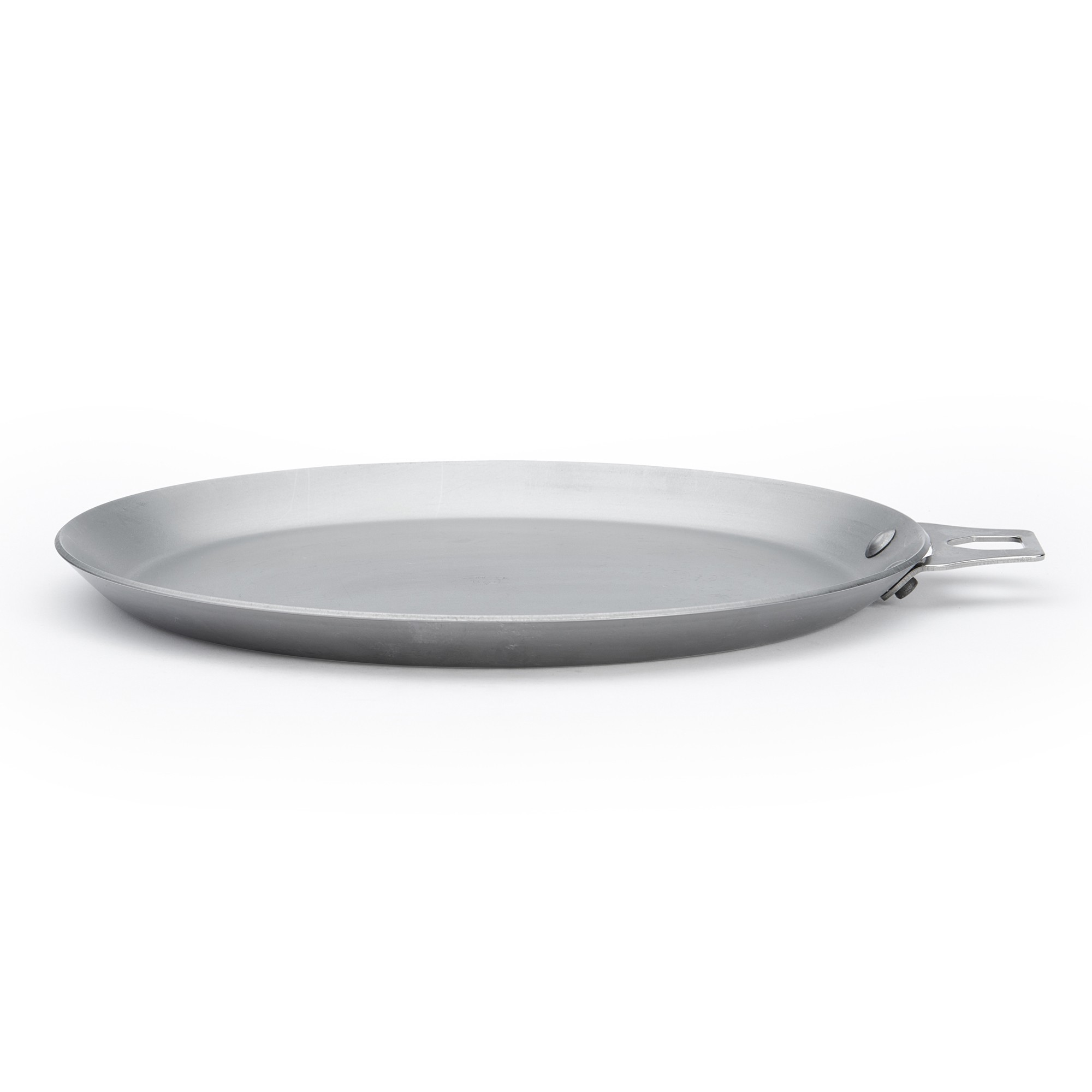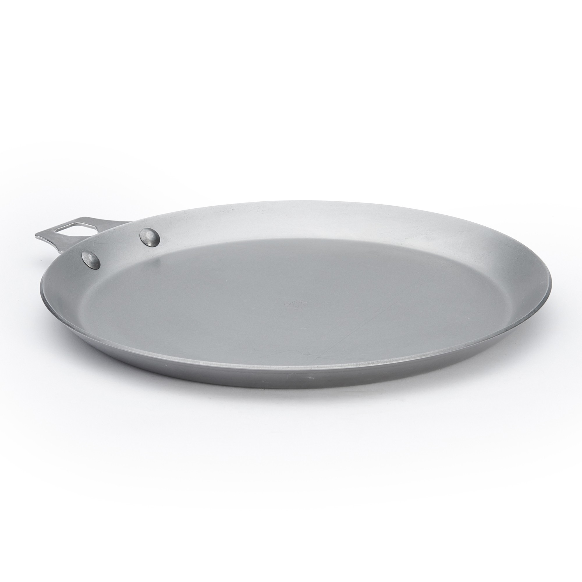 Тава за палачинки без дръжка, произведена от de Buyer, с диаметър 26 см, изработена от стомана, с дебелина 2,5 мм, която предотвратява деформация.