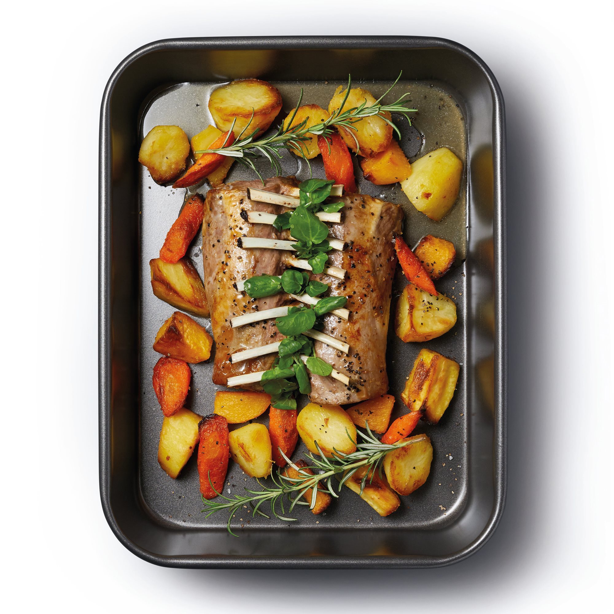 Полезна както за печене, така и за печене, тавата за фурна от гамата MasterClass ви идва на помощ, когато възнамерявате да приготвите картофи по различни начини (независимо дали задушени картофи, запечени или печени картофи), зеленчуци, пържола, пай или лазаня.