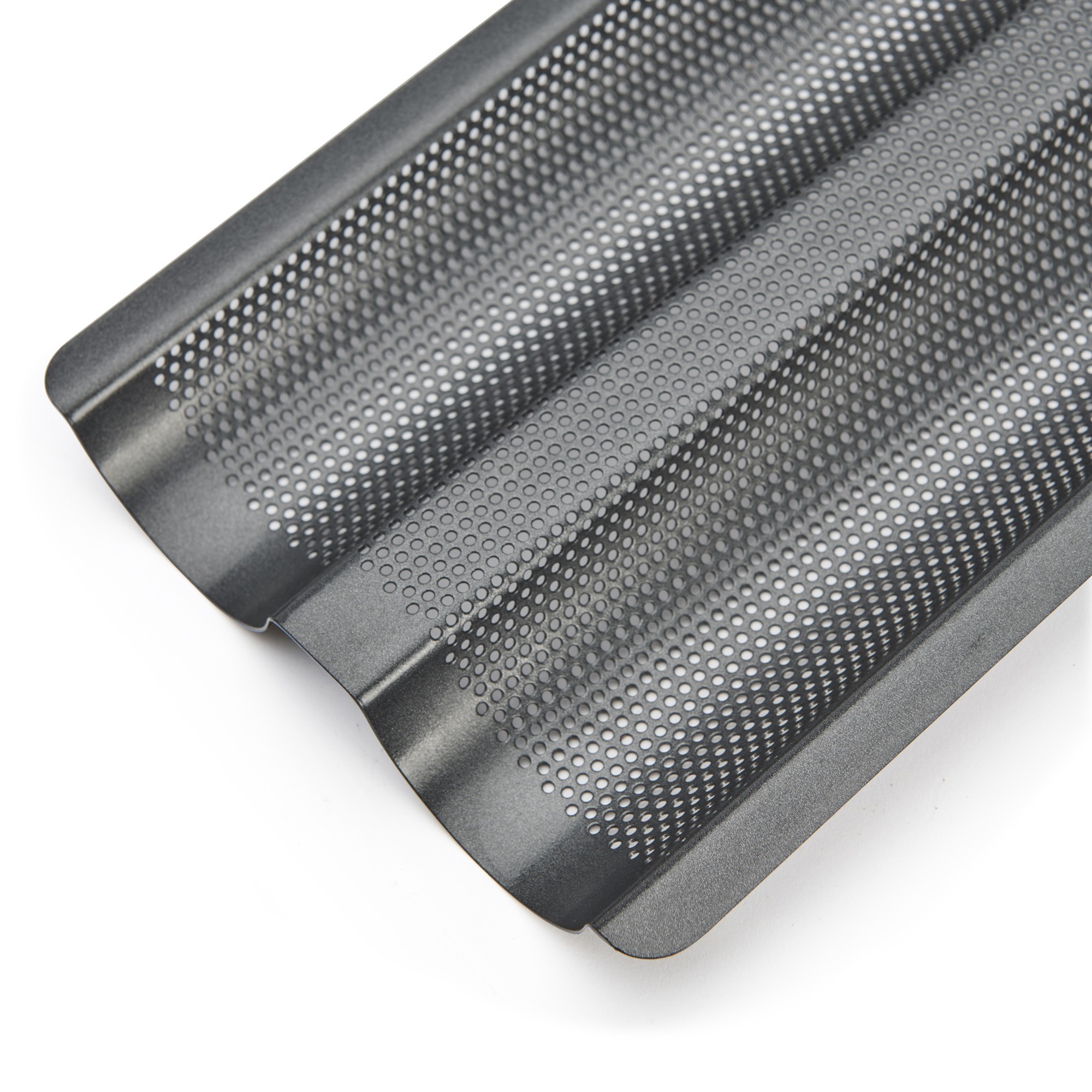 Перфорациите на тавата позволяват циркулацията на топъл въздух, така че тавата се загрява бързо и достига високи температури, позволявайки на соковете да се карамелизират и да получат хрупкава коричка. Разбира се, разпределението на топлината се извършва еднакво за равномерно печене.