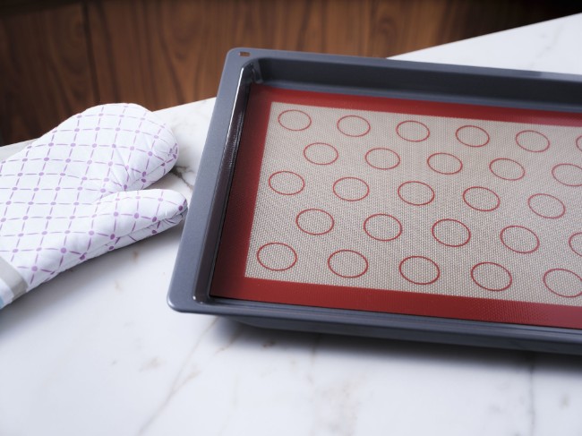 - Осигурява равномерна и незалепваща повърхност, перфорирана с микродупки, идеална за безупречно изпичане на деликатни макарони или други сладкиши.