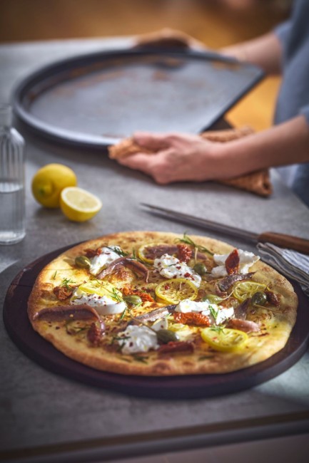 • Високият ръб предотвратява падането на пицата от тавата за печене
