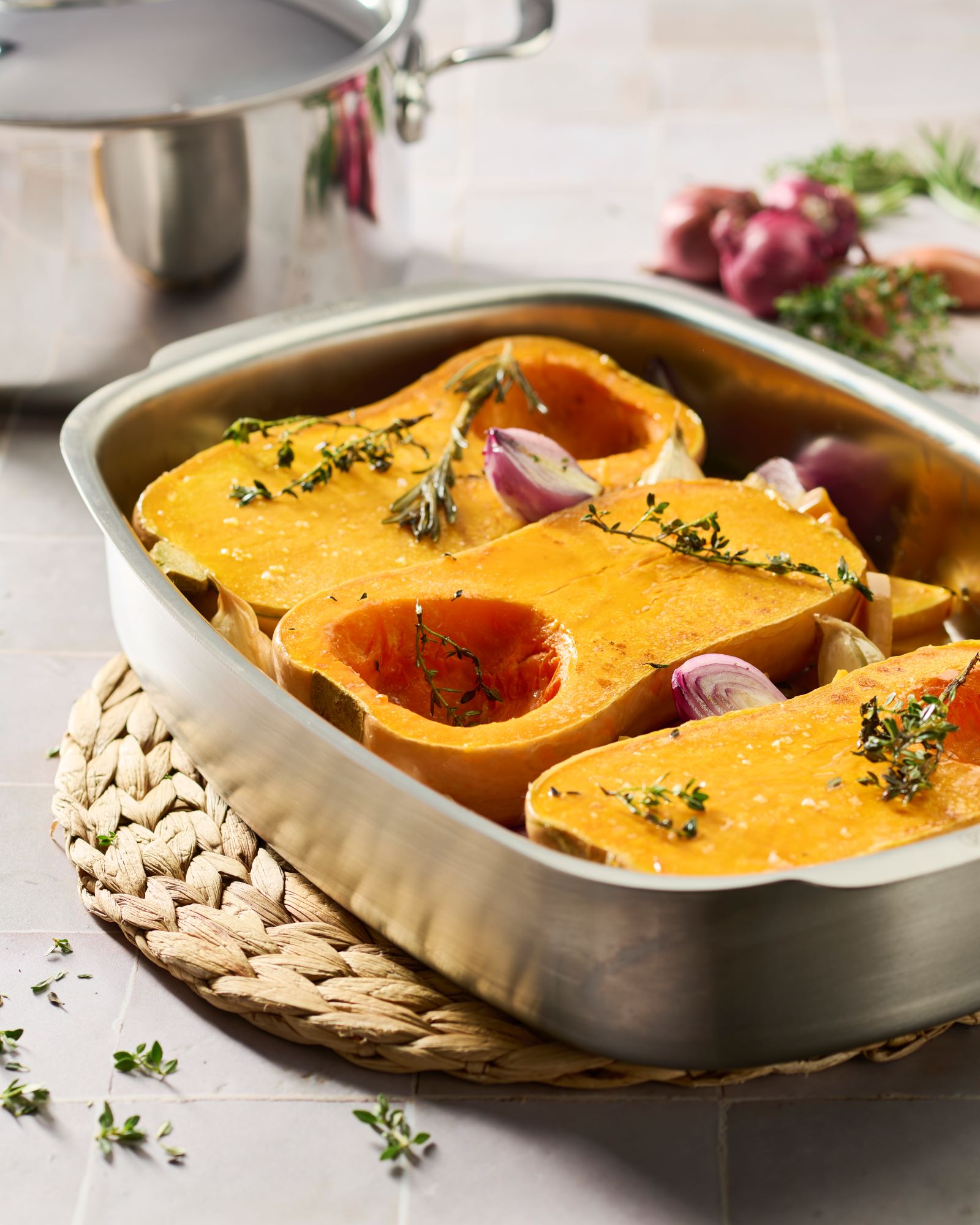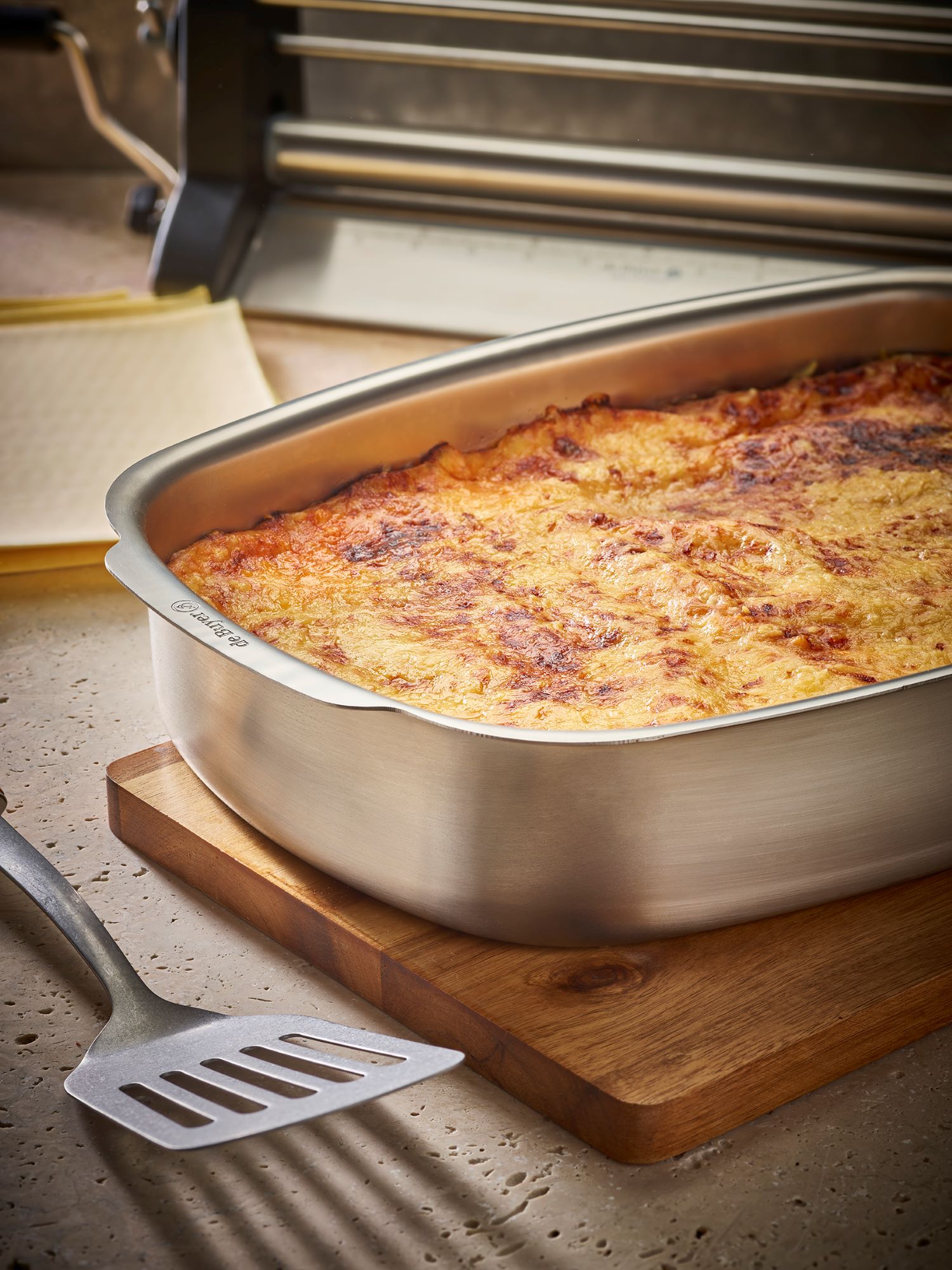 Правоъгълната тава е идеална за приготвяне на различни ястия: гратен, печени ястия, риба, месо, зеленчуци и др. Тази универсална тава може да се използва и за сервиране директно на масата.