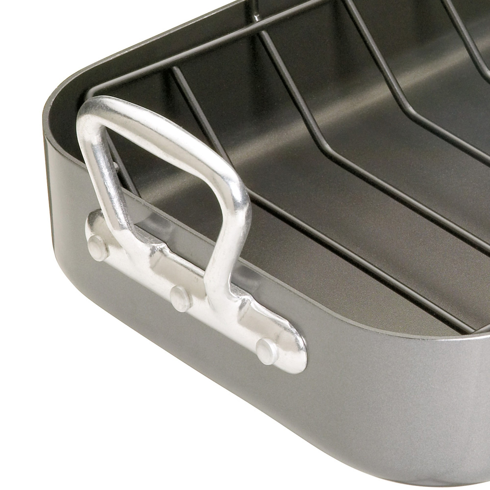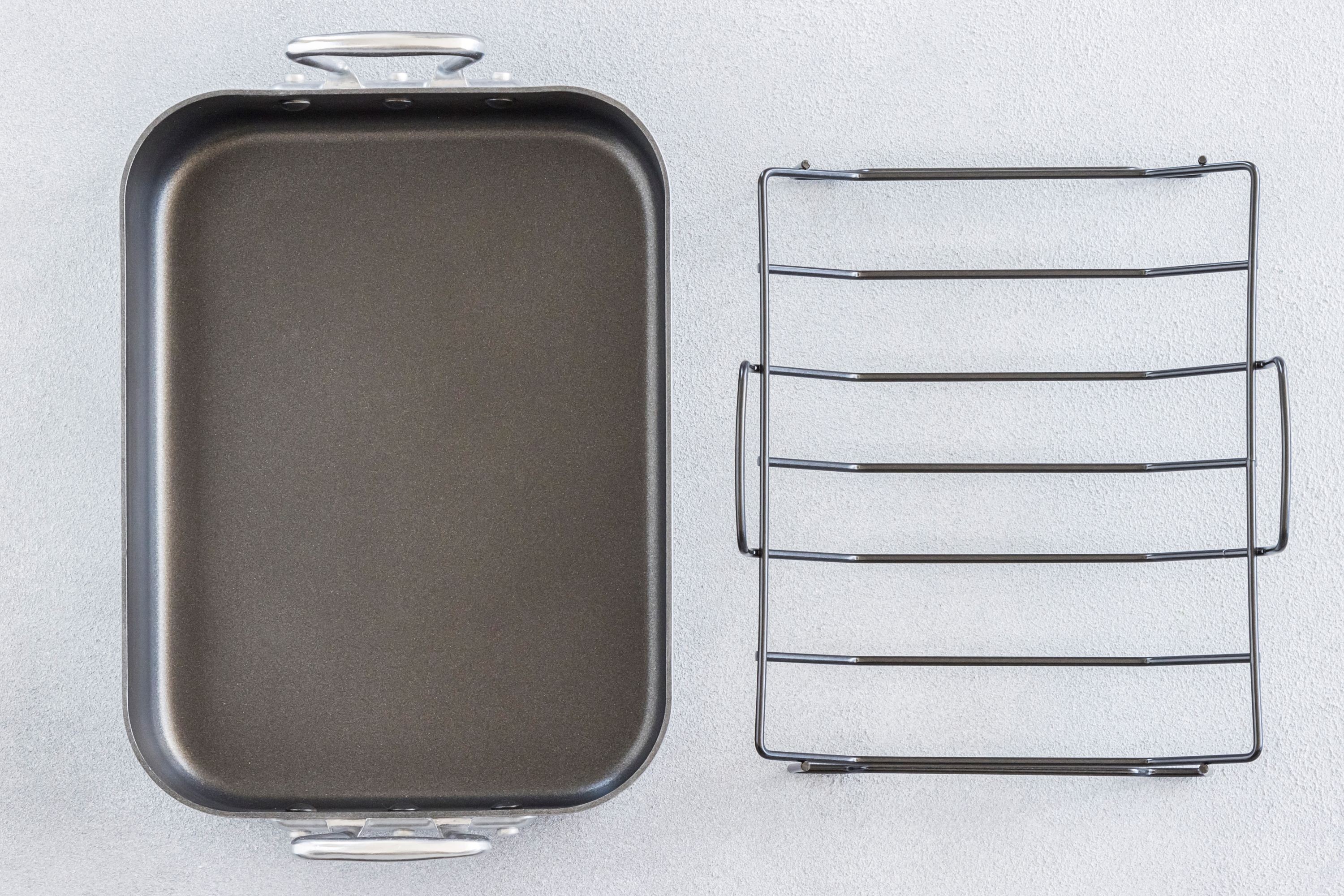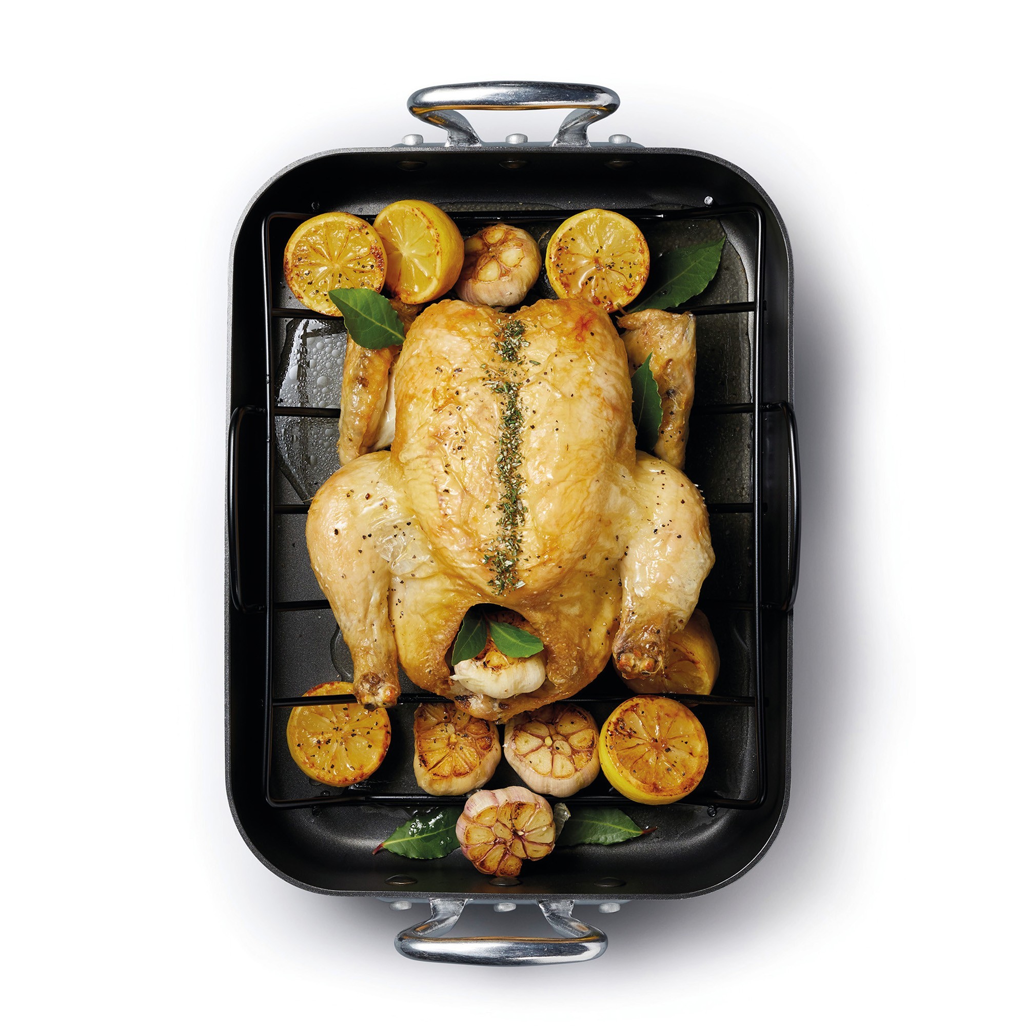 Тази тава с практични дръжки е идеалният избор за равномерно приготвяне на пържоли от всички видове месо, без да е необходимо да използвате много мазнина. Скарата ще позволи на мазнината да се отцеди в тавата и месото ще се приготви равномерно.