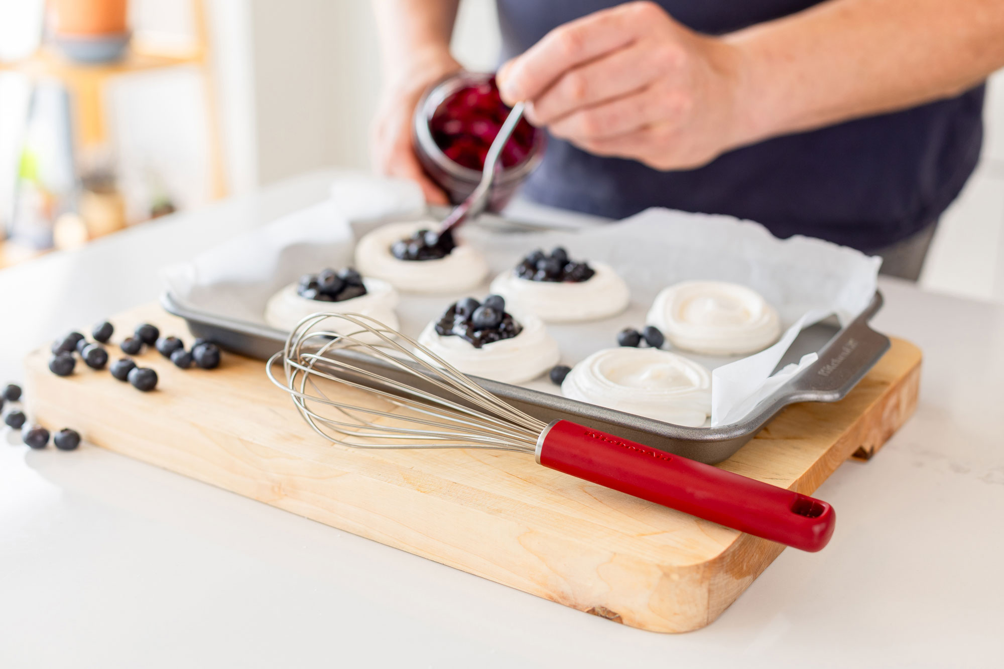 Бъркалката KitchenAid бързо въвежда въздух в съставките, което я прави подходяща за разбиване на сметана, белтъци и леки глазури или гладки сосове.