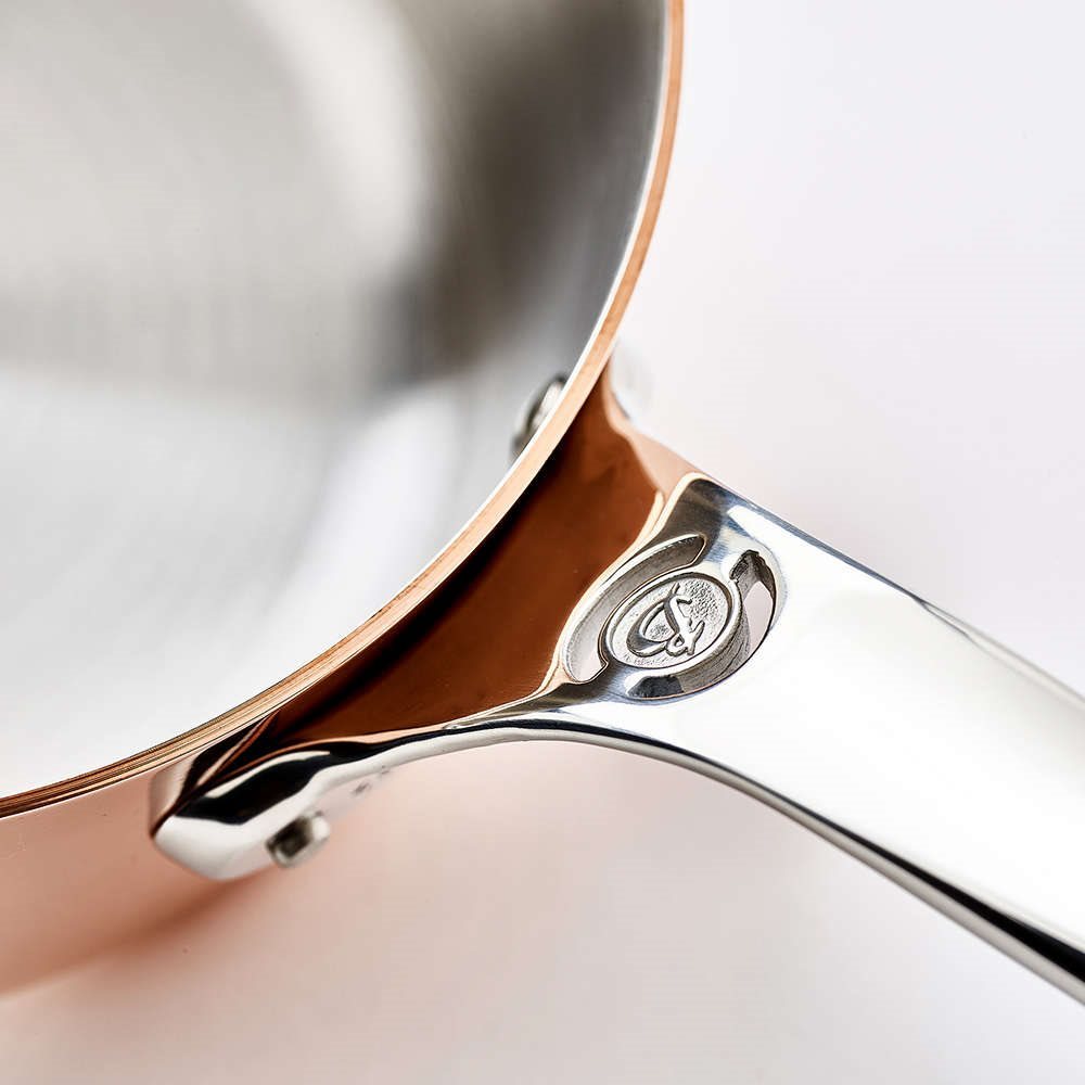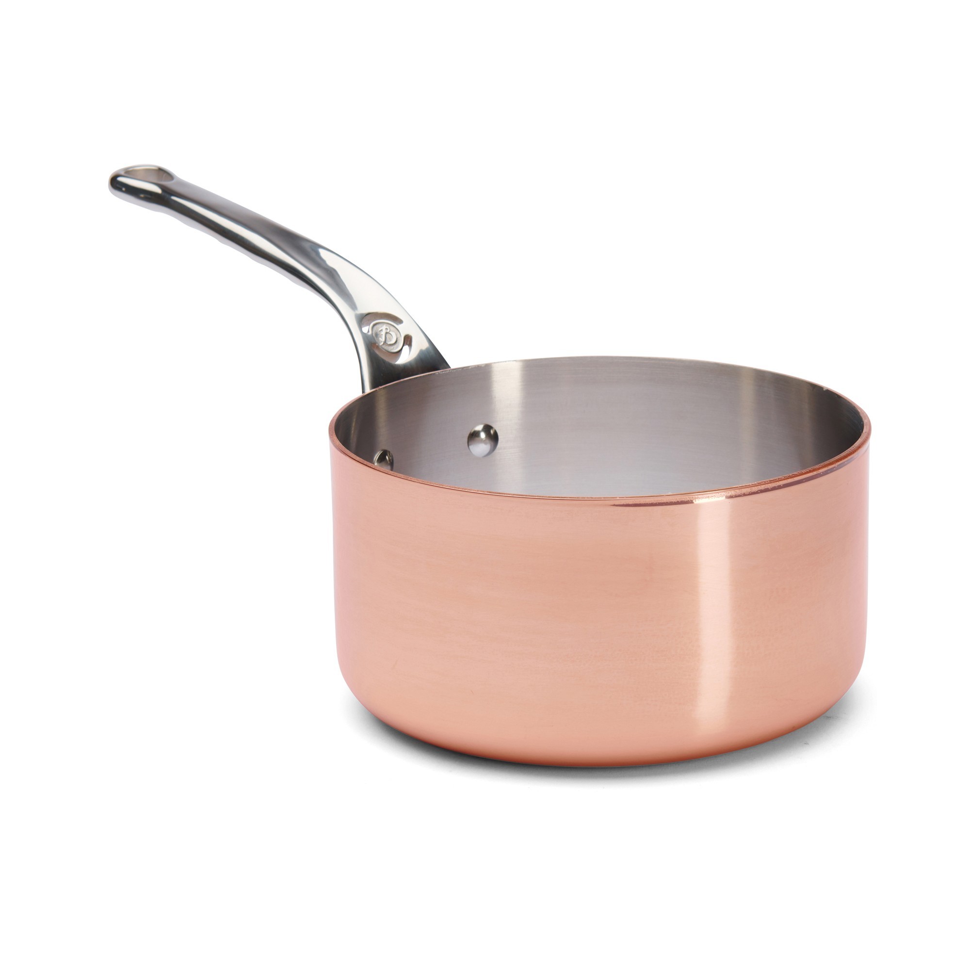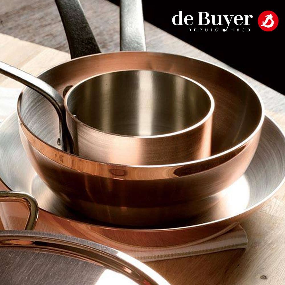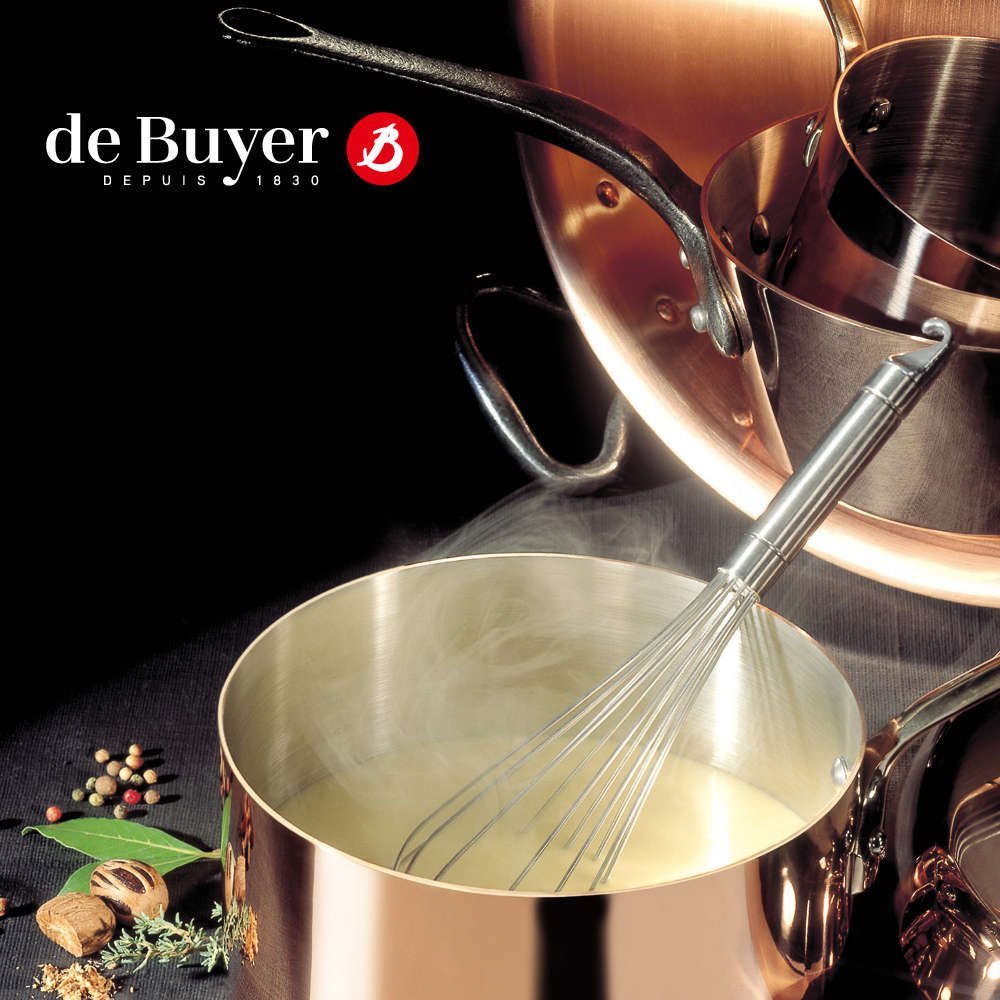 Тенджера за сосове, марка de Buyer, с диаметър 18 см, изработена от мед отвън и неръждаема стомана отвътре, капацитет 2,5 л, висок 10 см. Процентът на медта, използвана при производството на тенджерата, е 90%, а използваната вътре неръждаема стомана представлява 10%.