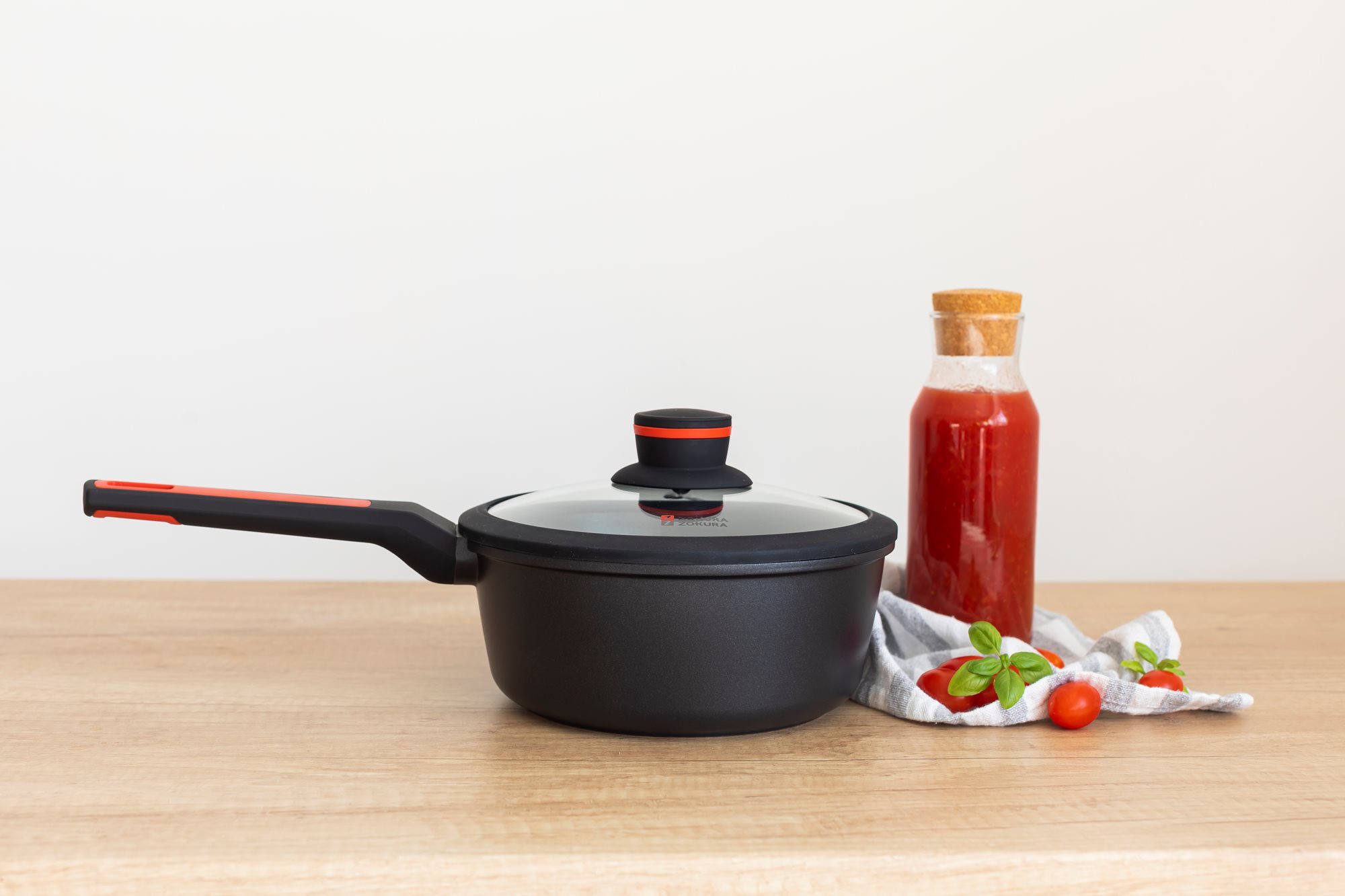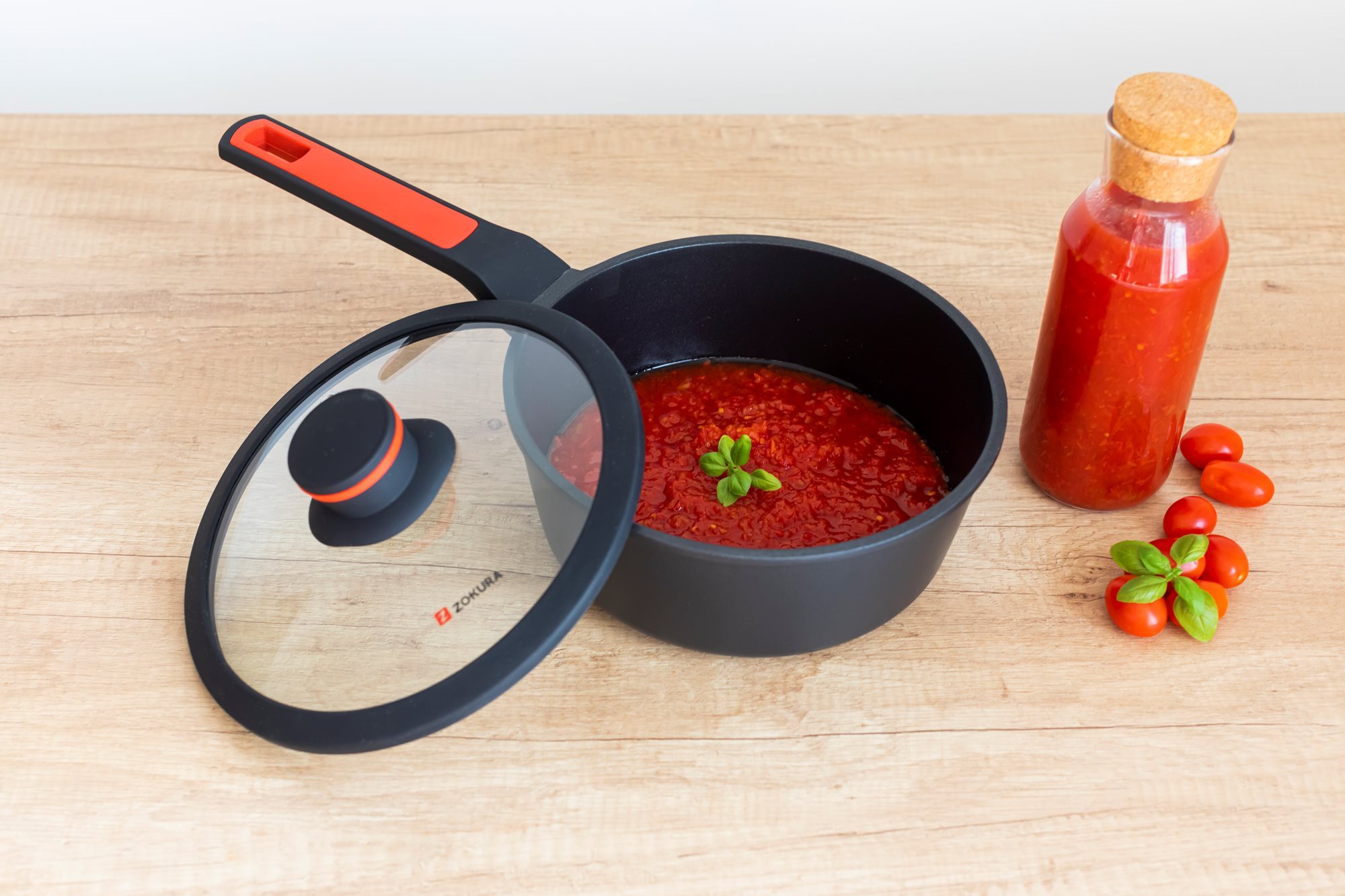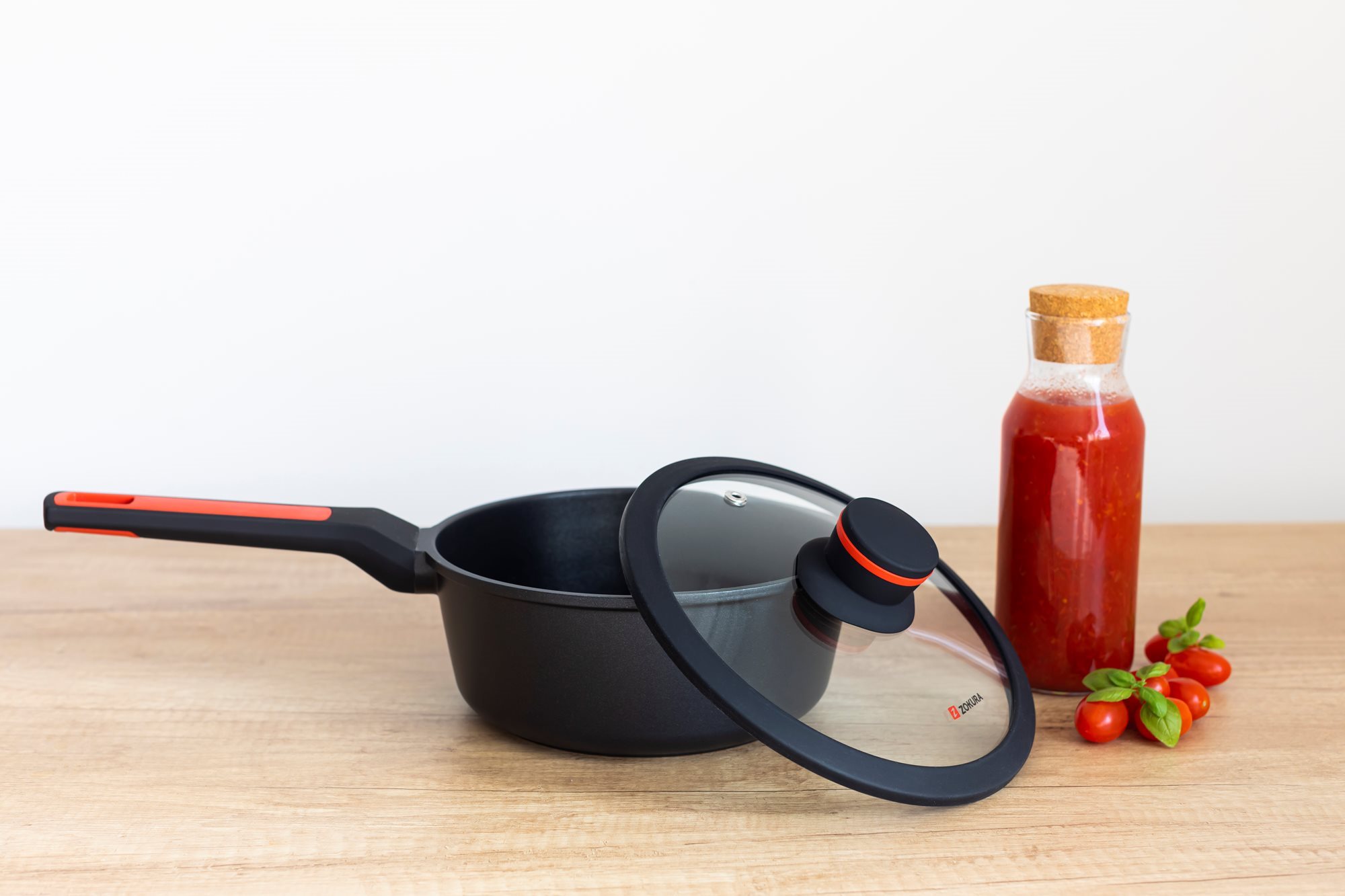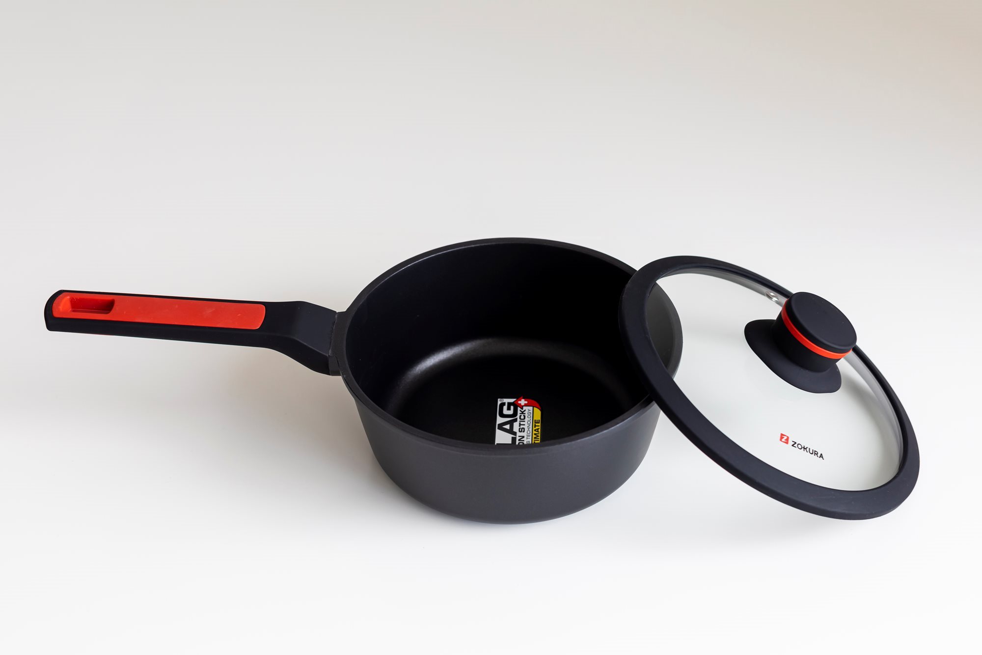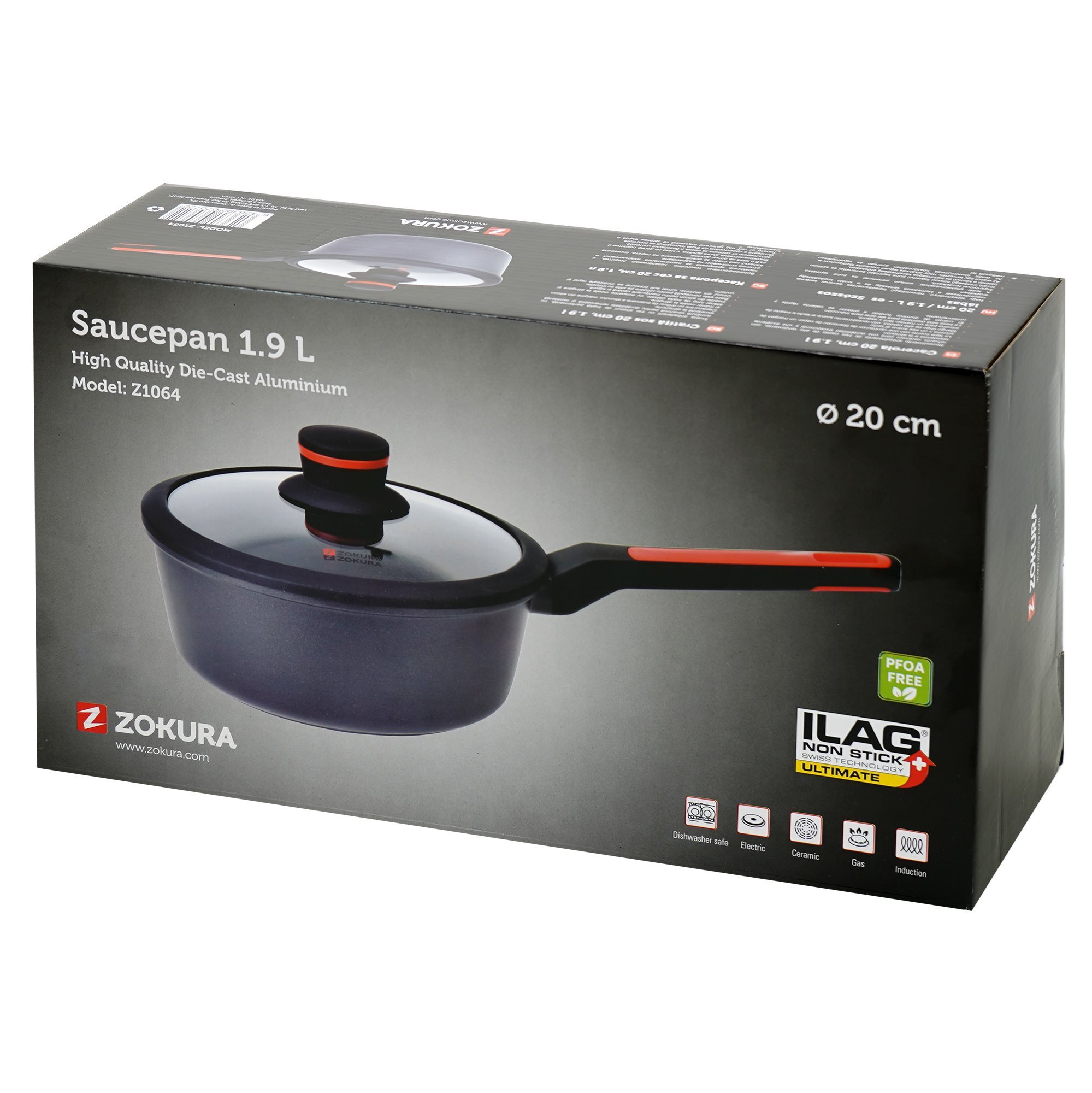 Тенджера със стъклен капак, от лят алуминий, с незалепващо покритие, диаметър 20 см, вместимост 1,9 л, височина 8,5 см, марка Zokura.