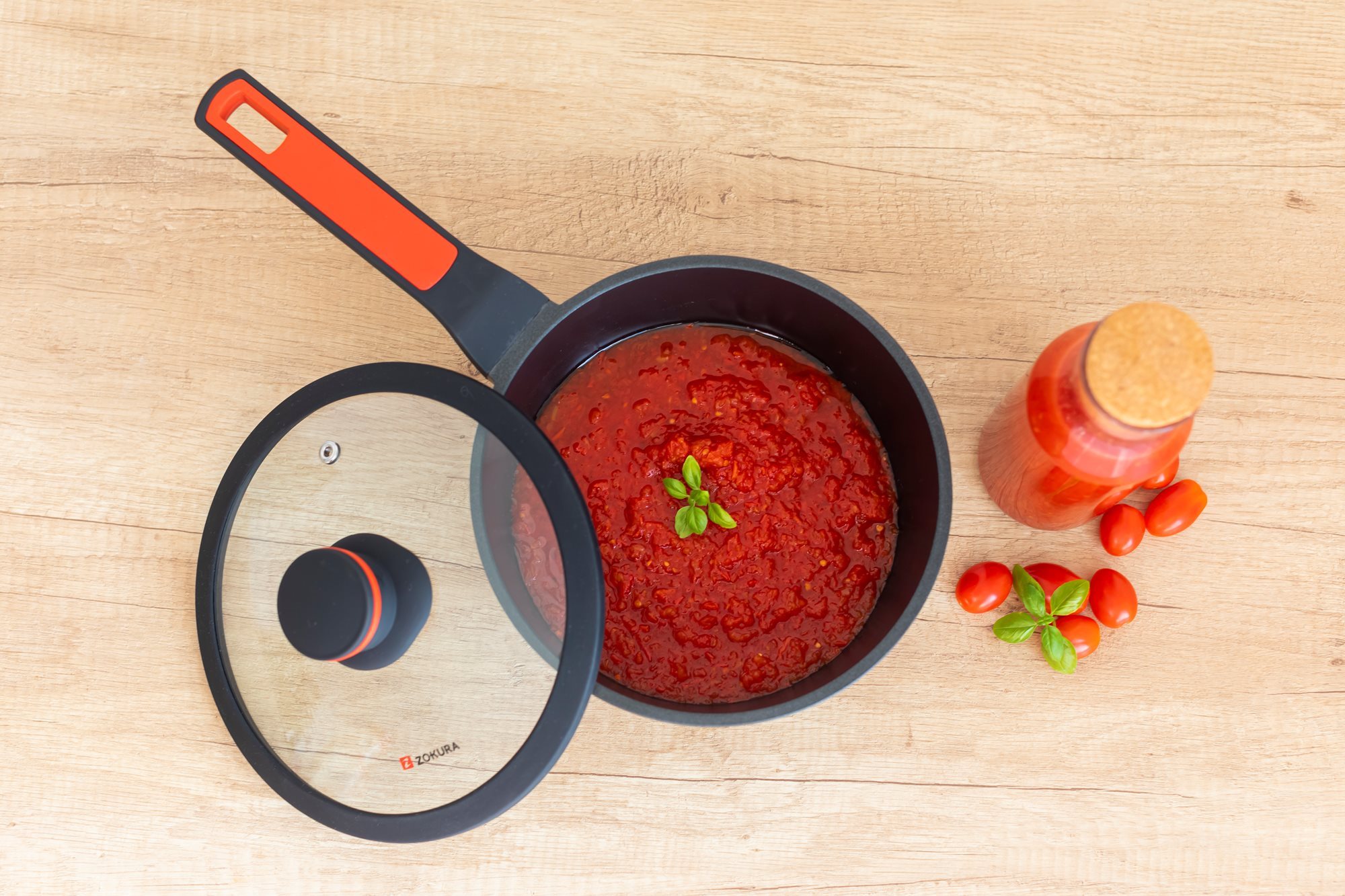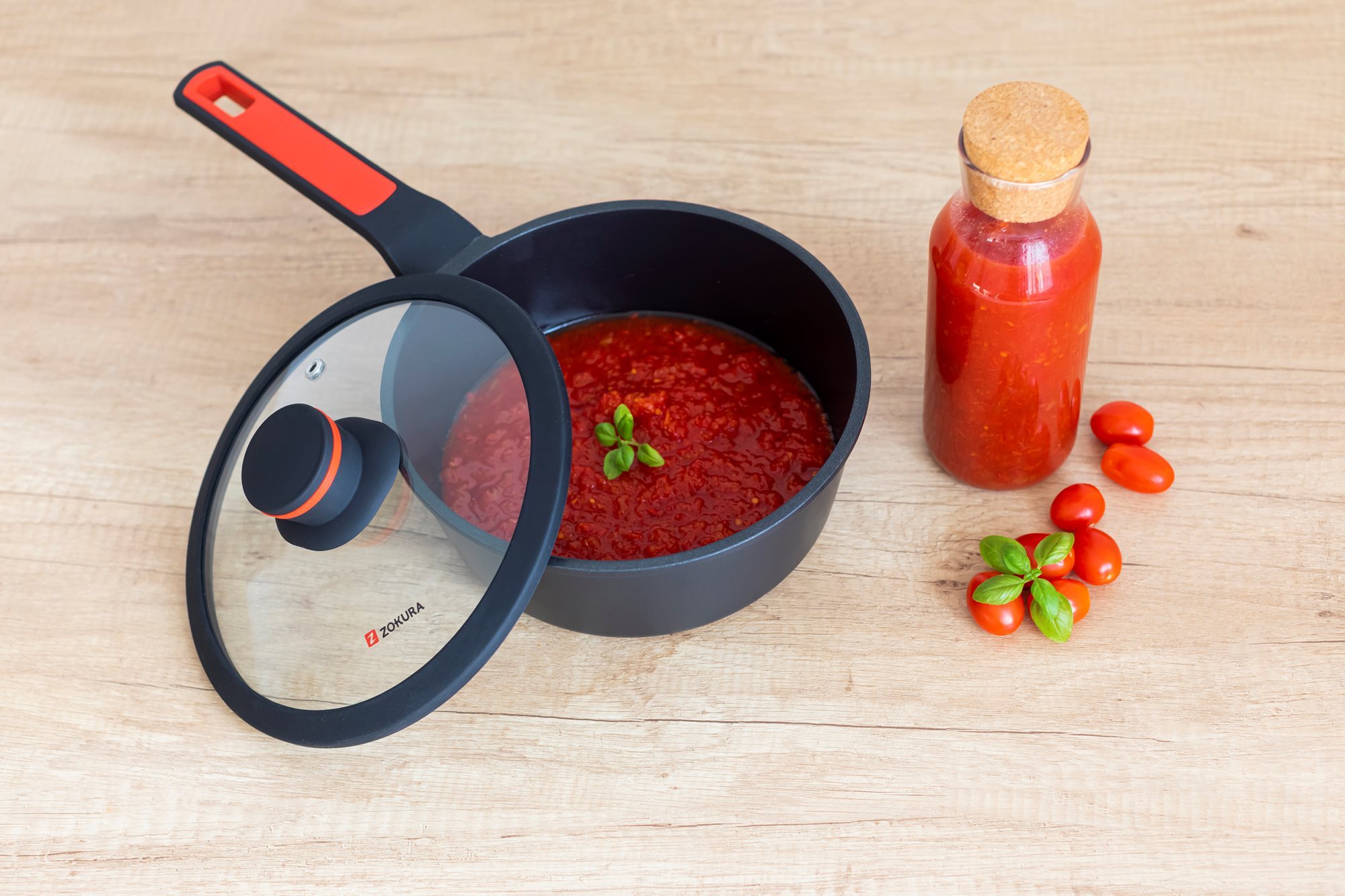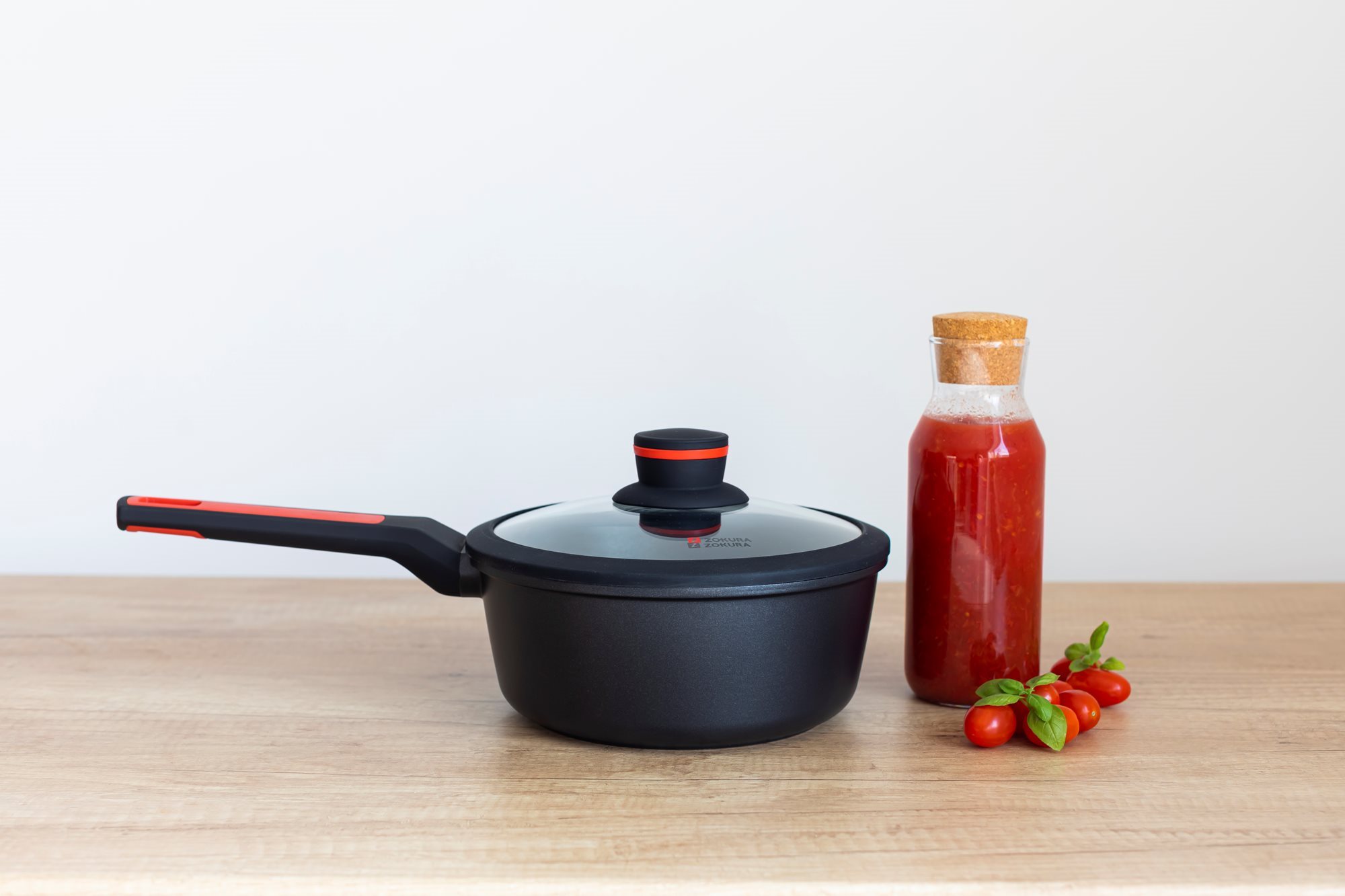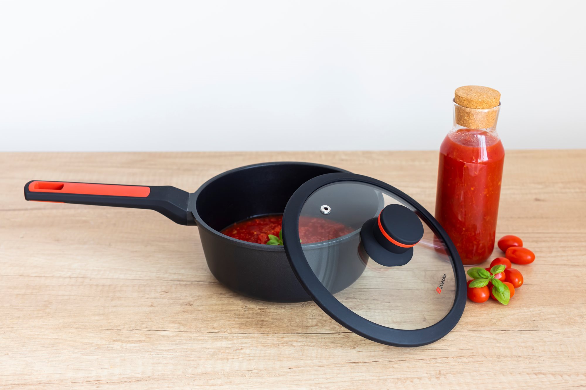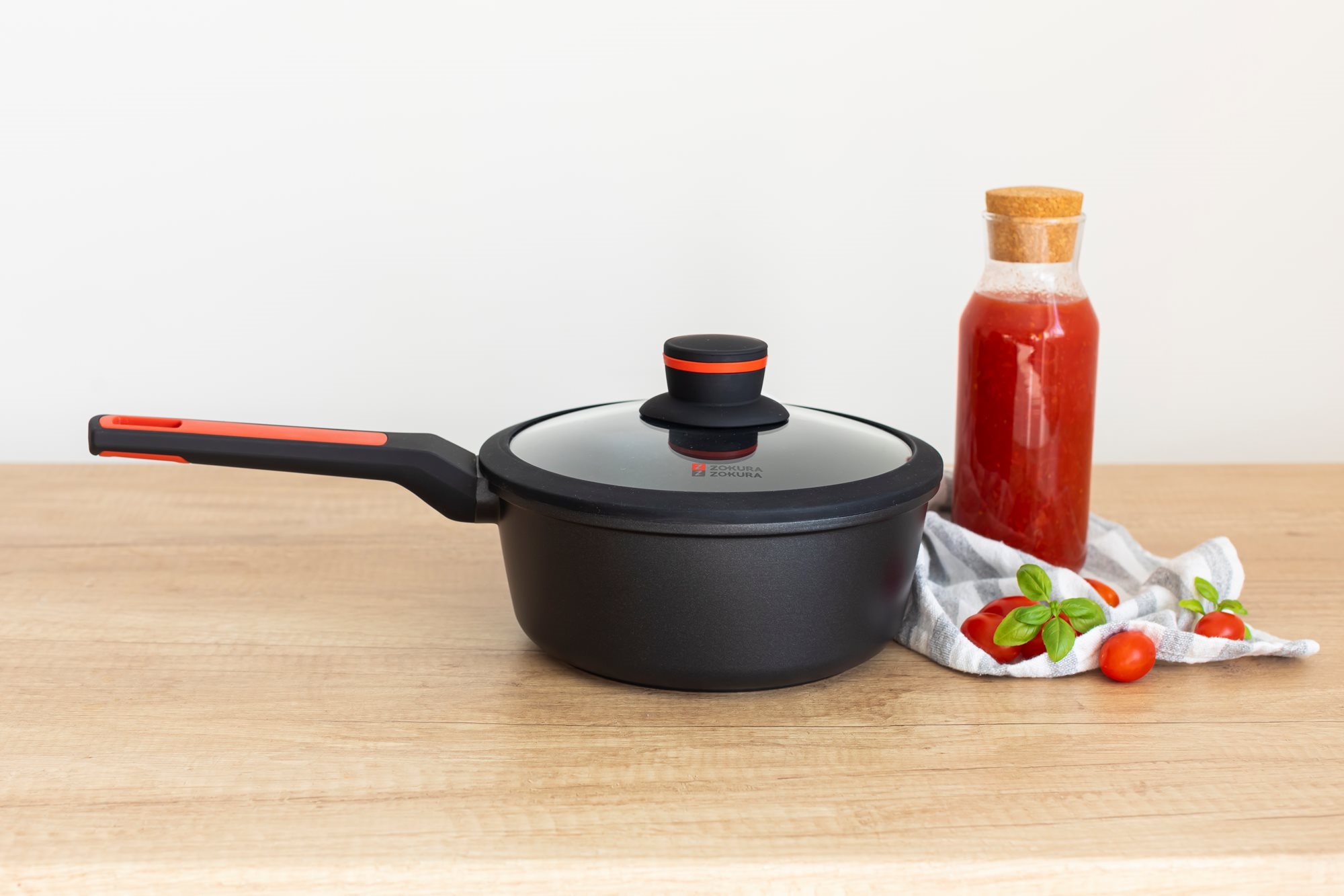 Тенджера със стъклен капак, от лят алуминий, с незалепващо покритие, диаметър 20 см, вместимост 1,9 л, височина 8,5 см, марка Zokura.
