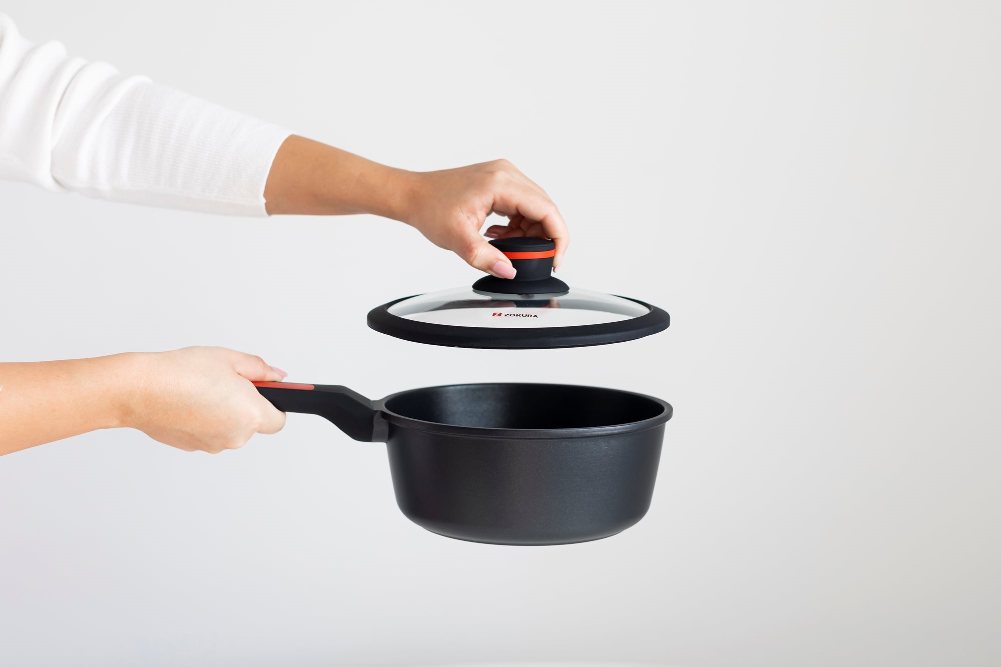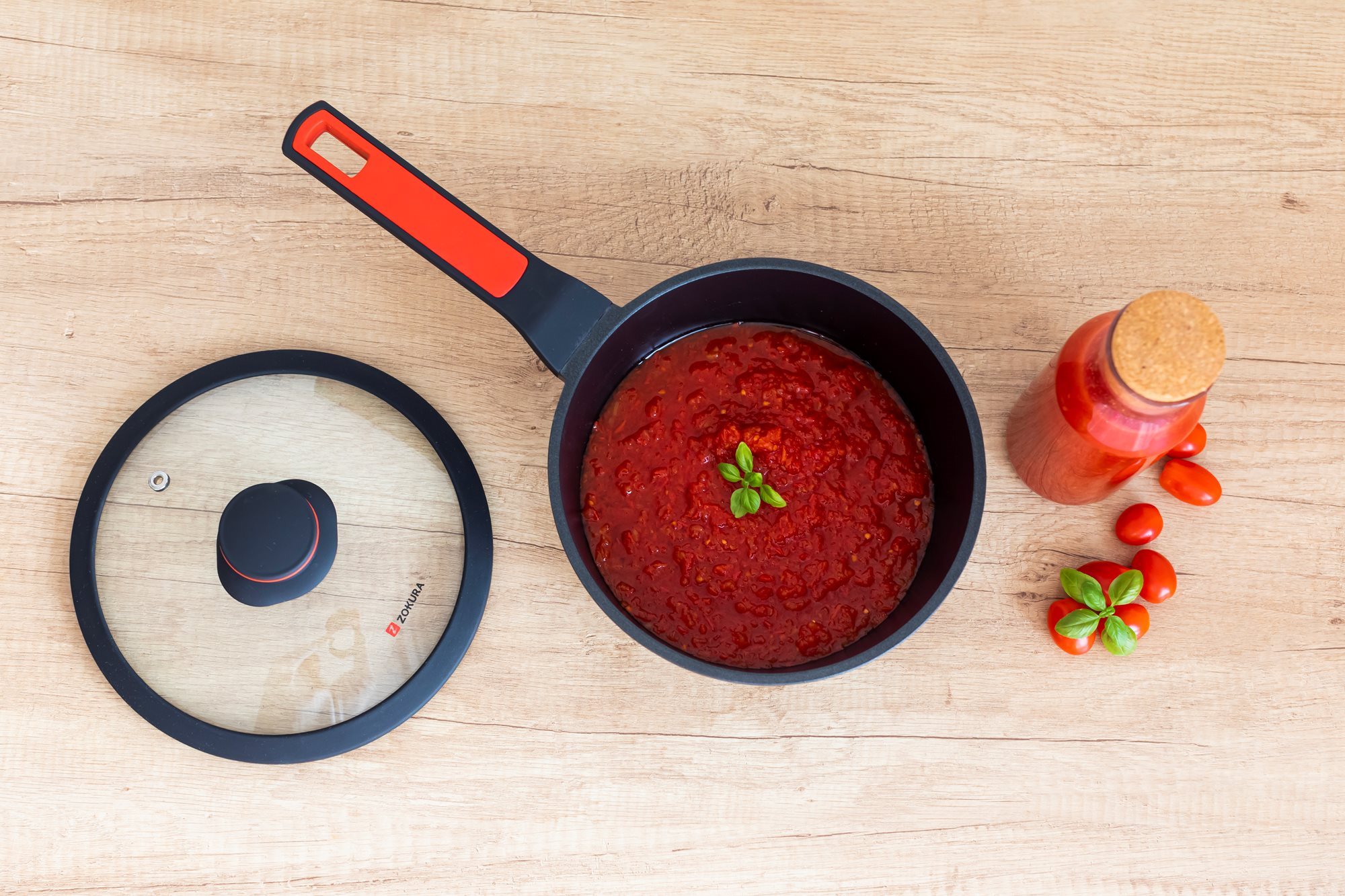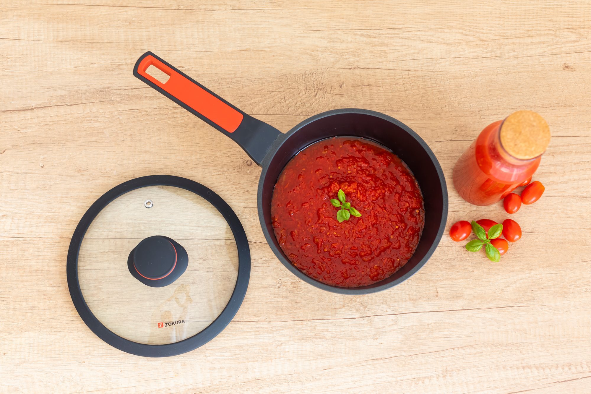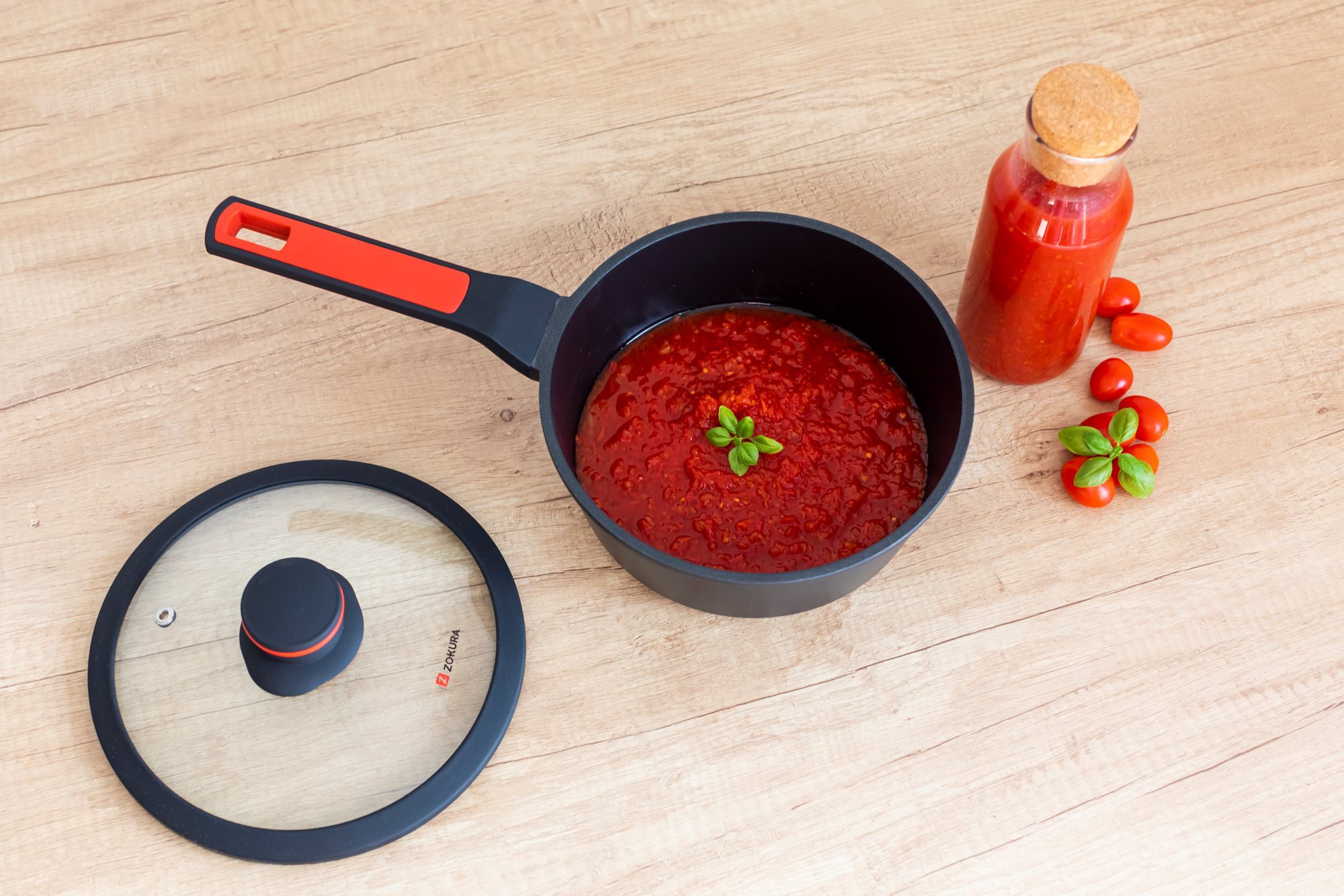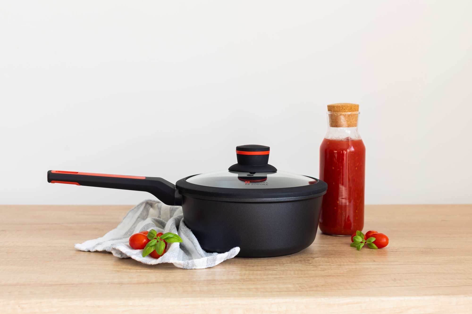 Тенджера със стъклен капак, от лят алуминий, с незалепващо покритие, диаметър 20 см, вместимост 1,9 л, височина 8,5 см, марка Zokura.