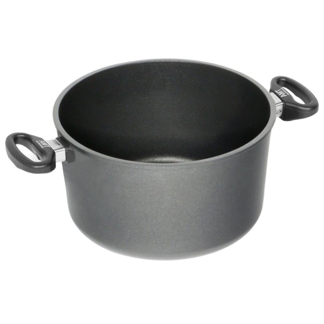 Съдовете за готвене на AMT Gastroguss са изработени от алуминий с незалепващо покритие Lotan®, и са произведени в Германия . AMT Gastroguss - Най-добрият тиган в света - Според VKD (най-голямото сдружение на готвачи в Германия) Всички продукти на AMТ Gastroguss са изработени от ръчно излят алуминий от квалифицирани занаятчии. Предимствата на ръчно летия алуминий при производство включват: по-бързото втвърдяване предотвратява деформации на материала, по-хомогенно леене и по-добър външнен вид на материала от с механизирано леене. Съдовете AMТ Gastroguss имат много дебела основа с дебелина до 9 мм. Тя съхранява повече енергия и не прегрява лесно. Основата на съдовете на AMТ Gastroguss е известна със запазването на своята форма, дори ако е обект на екстремни температурни колебания. Незалепващото покритие от няколко слоя на съдовете на AMG Gastroguss, е уникално и се използва само от тях. Освен незалепващите свойства, покритието помага за по-лесното почистване на съдовете и има антибактериален ефект. Покритието Lotan® предлага всички предимства на класическия анти-адхезивен слой, но го прави без PFOA. Ръкохватките на АМТ Gastroguss са устойчиви на температури до 240 ° C . Така че, можете да готвите храната веднага след като сте я запържили на плота, без да сменяте съда. Ергономичните дръжки на съдовете са разработени с помощта на Германския национален кулинарен отбор. Може да се мие в съдомиялна машина.