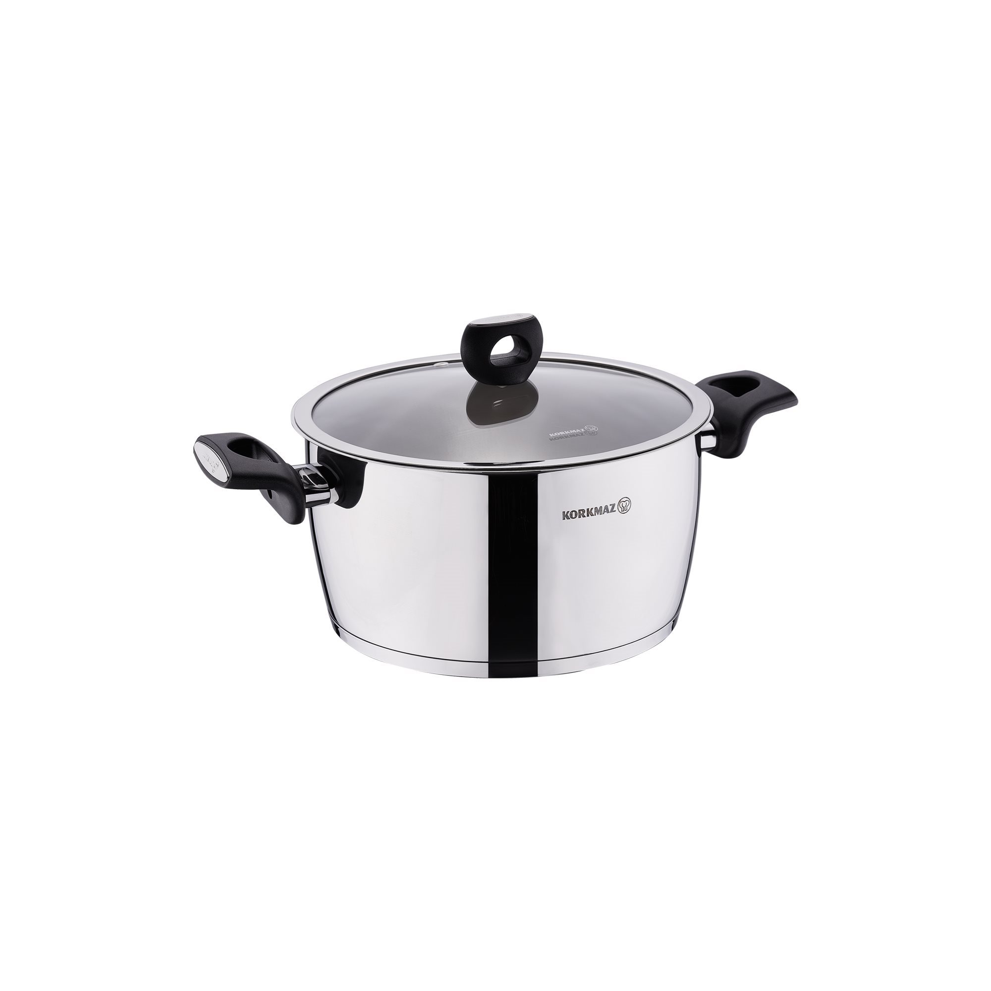 Тенджера с термоустойчив стъклен капак, диаметър 16 см, вместимост 2 л, изработена от неръждаема стомана 18/10 Cr-Ni (хром-никел), марка Korkmaz