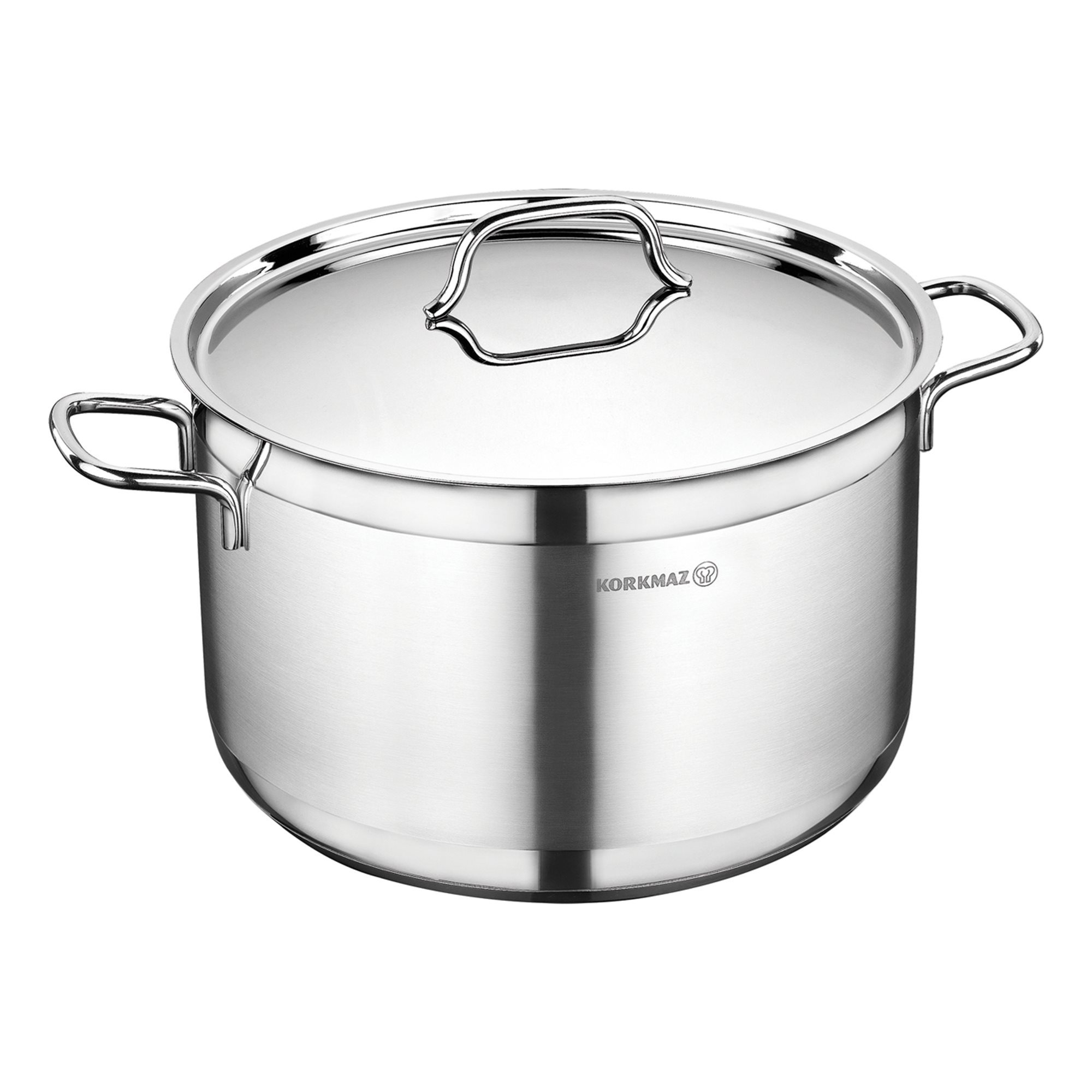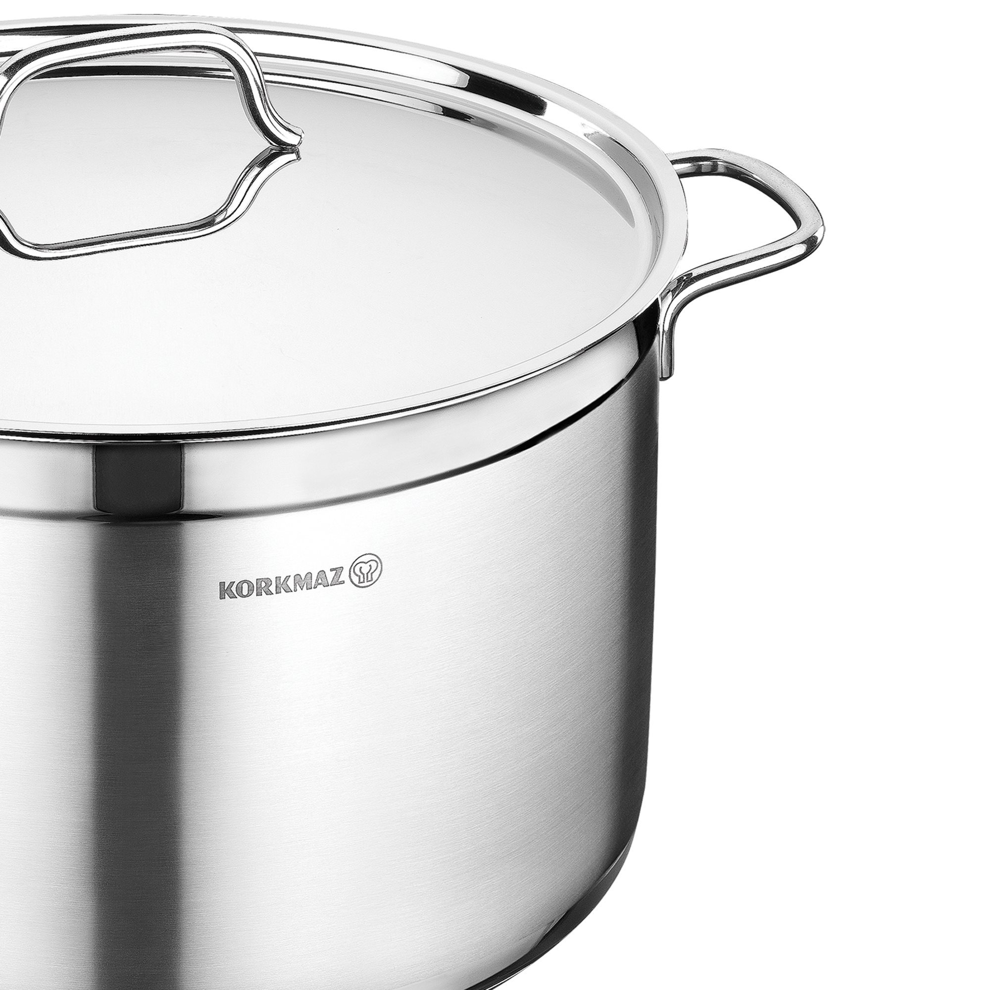 Тенджера с капак, диаметър 28 см, вместимост 8,5 л, изработена от неръждаема стомана 18/10 Cr-Ni (хром-никел), марка Korkmaz.