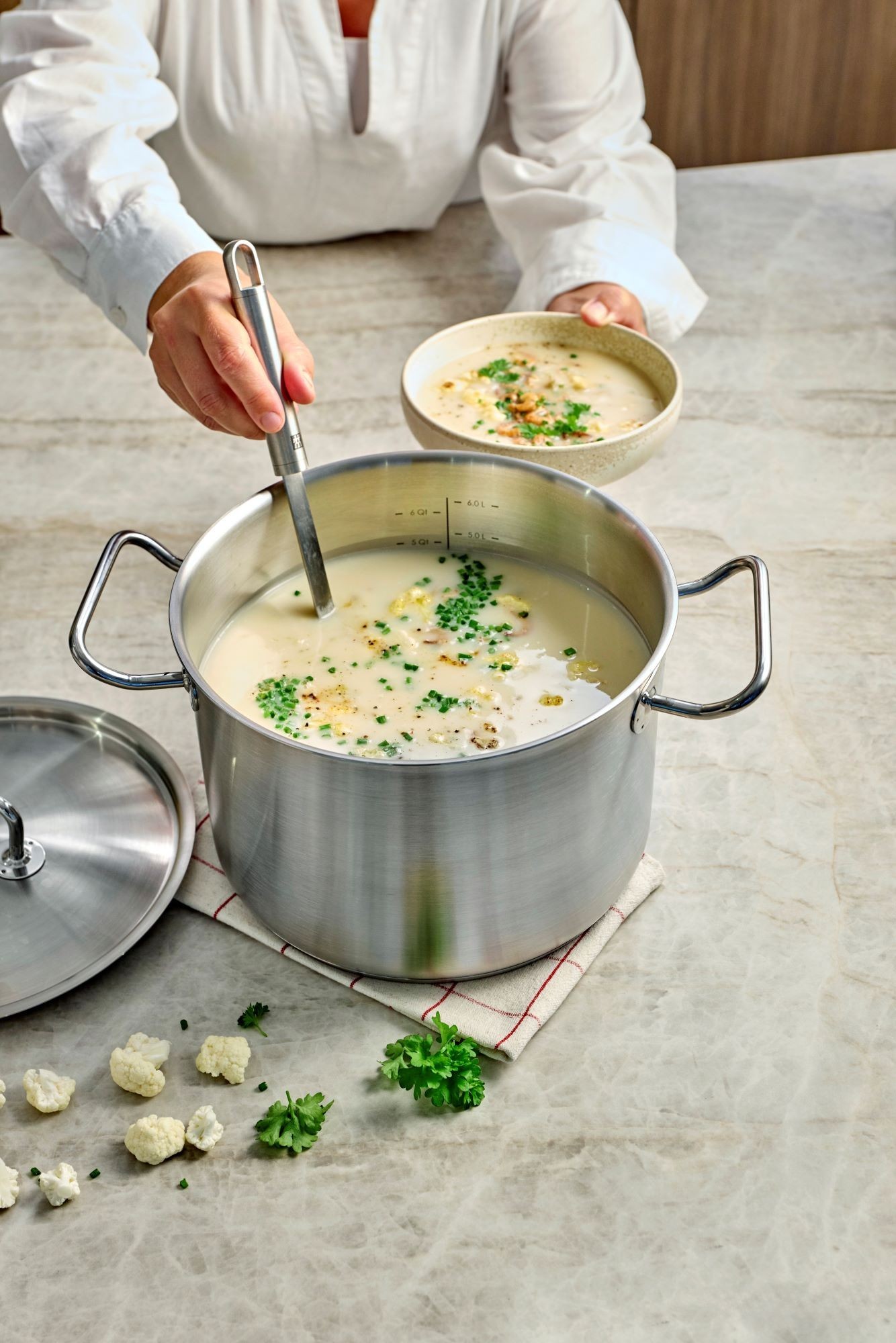 Пригответе любимите си супи и бульони в тази тенджера за готвене Classic Pro 3, с диаметър 24 см и вместимост 7,5 л, произведена от Demeyere.