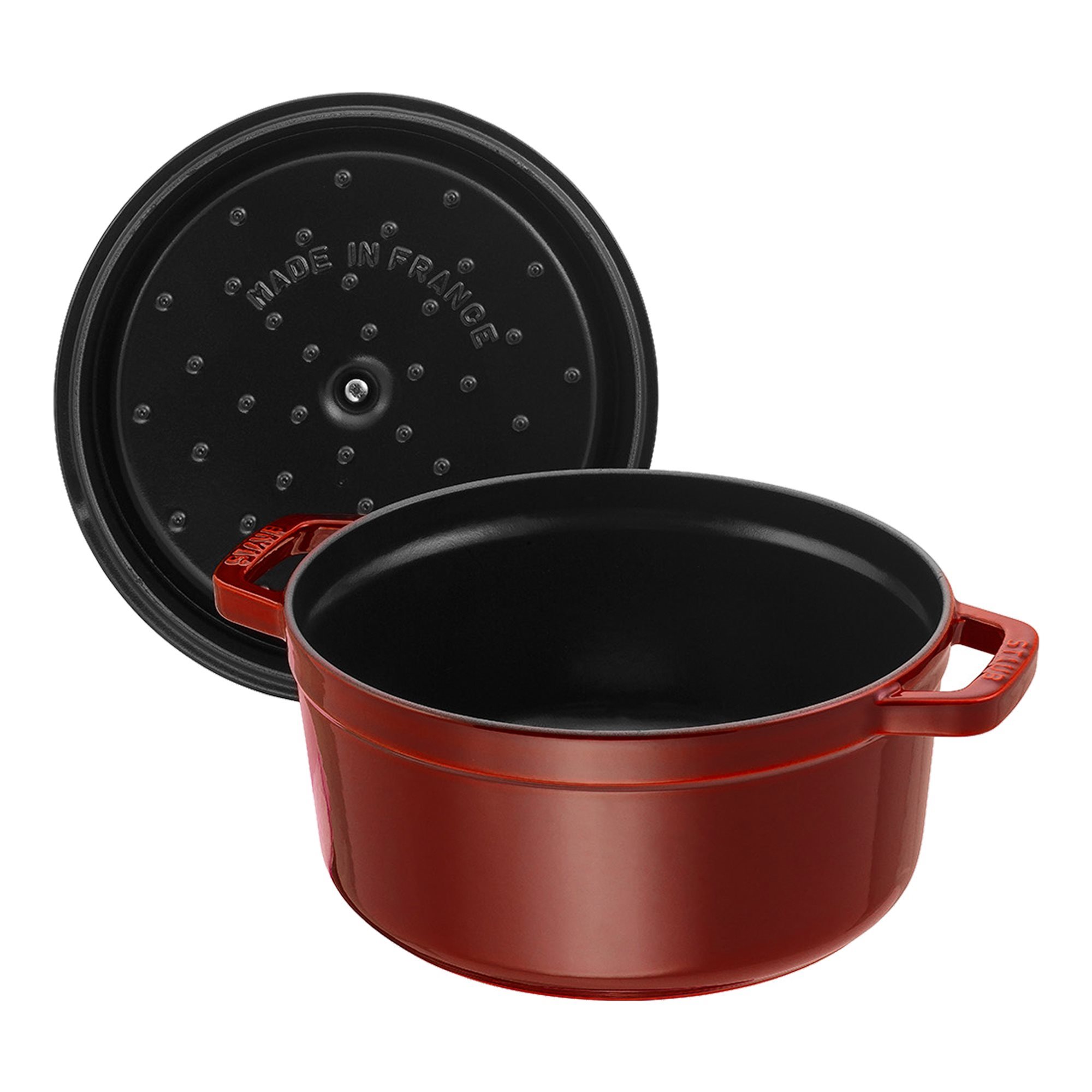 Готварски съд от гамата Cocotte, марка Staub, диаметър 28 см, капацитет 6.7 л, изработен от чугун.