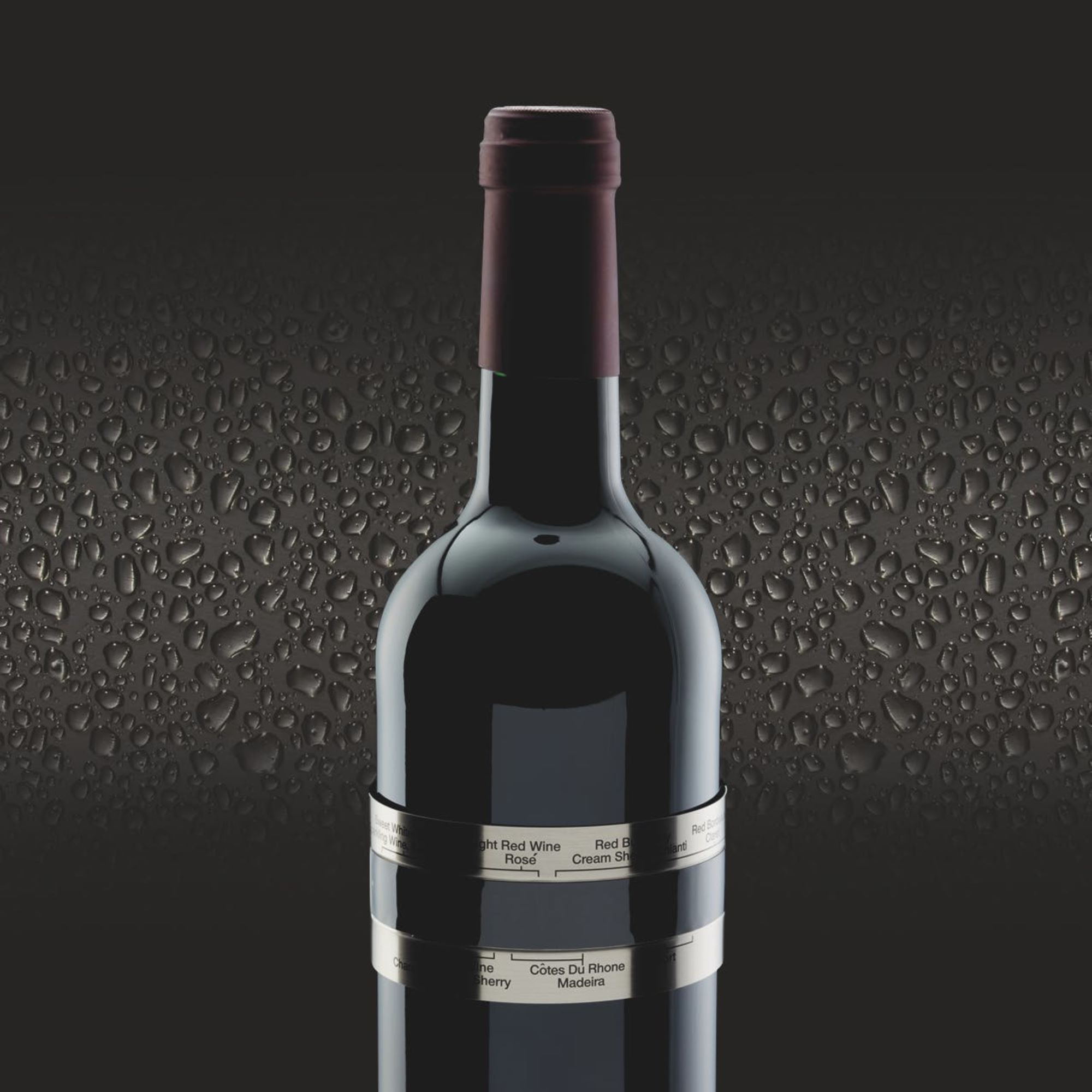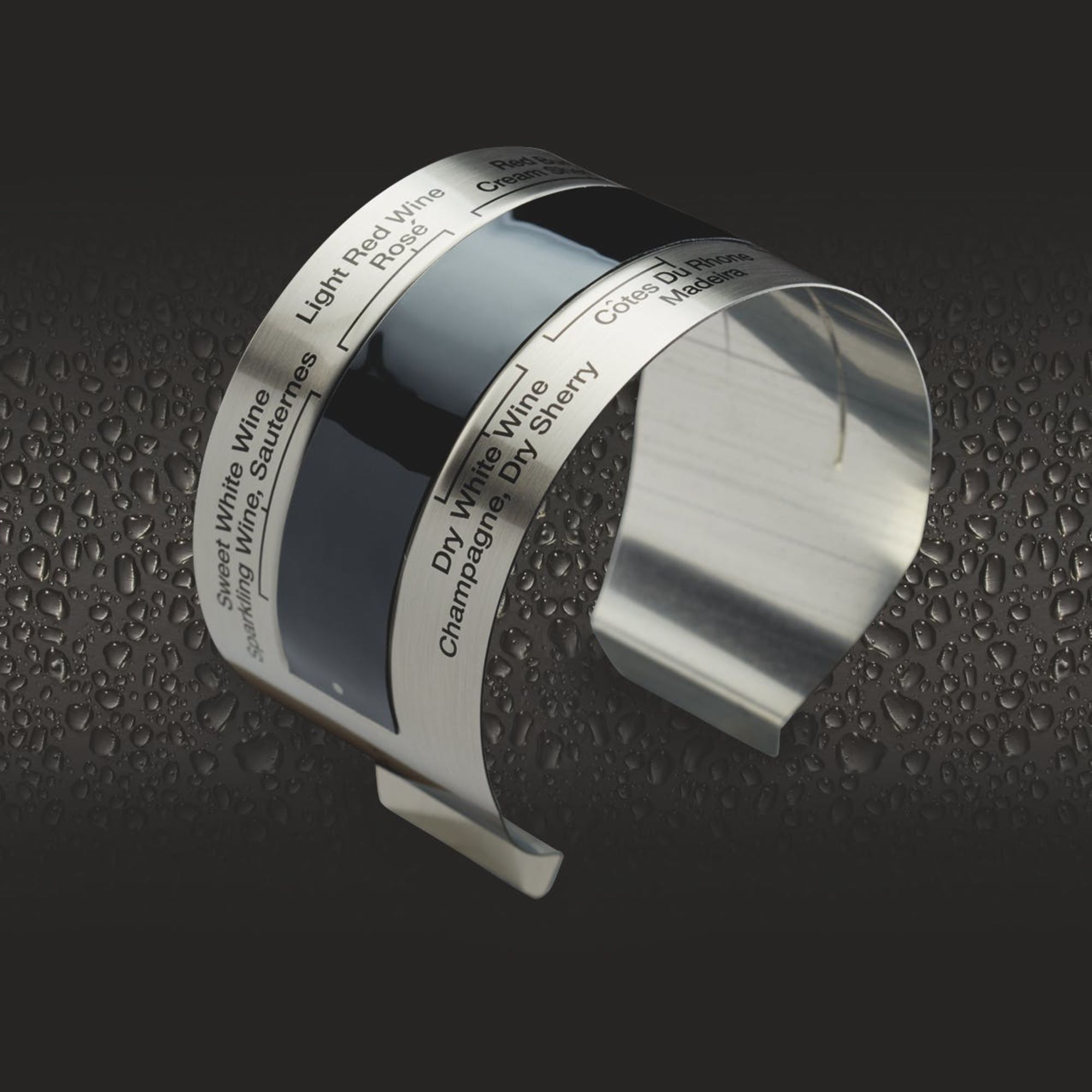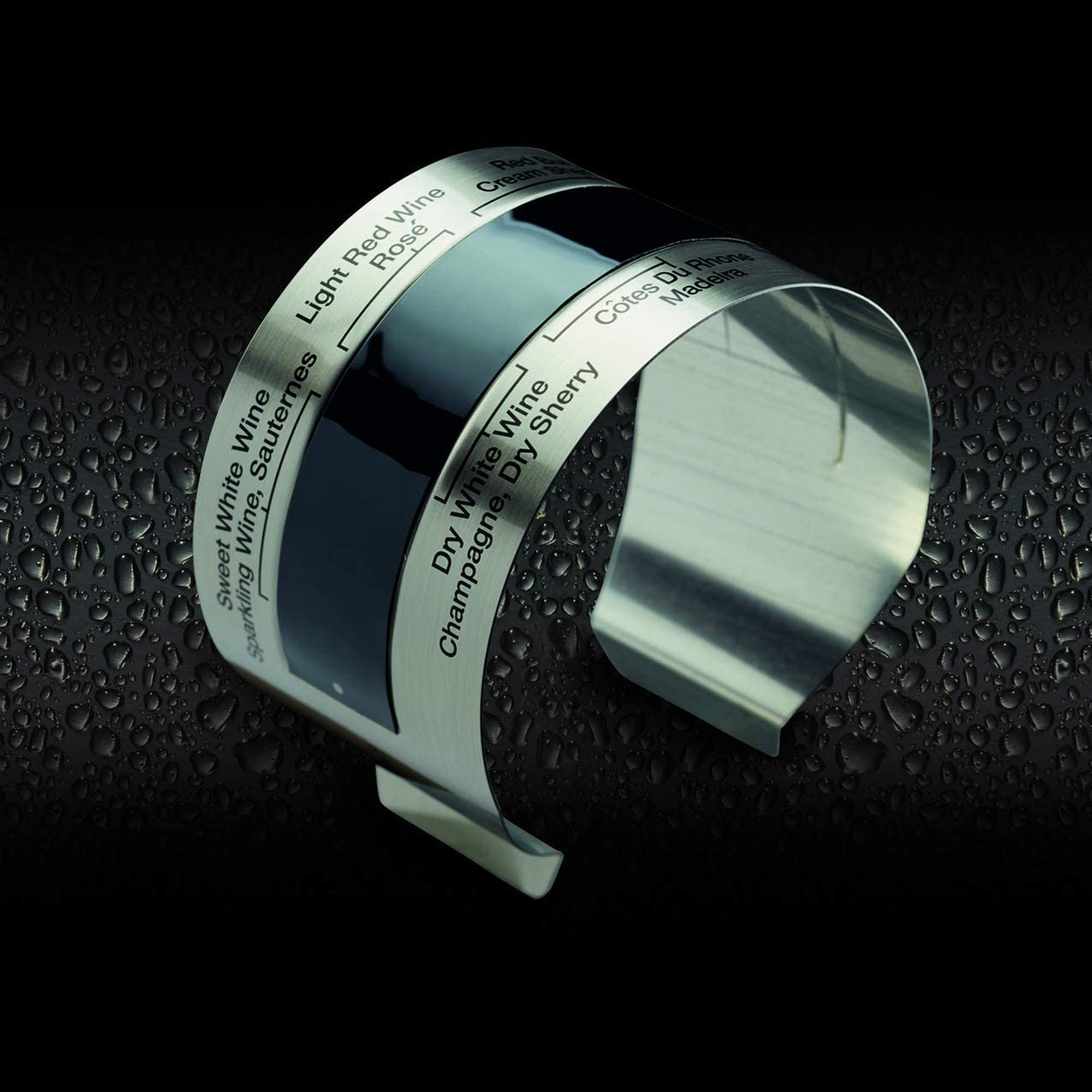 Този термометър разполага с маркировки, показващи идеални температури за определени асортименти от бяло и червено вино.