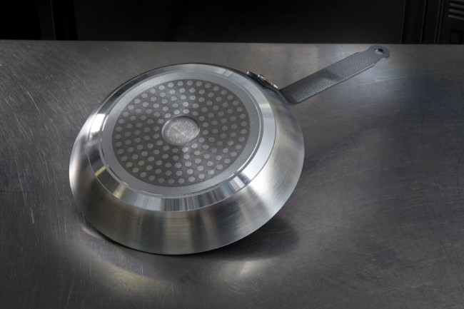 Външната страна на тигана е оборудвана с неръждаем слой, специално предназначен за индукция, който има структура от пчелна питка, която помага за по-добро разпределение на топлината.