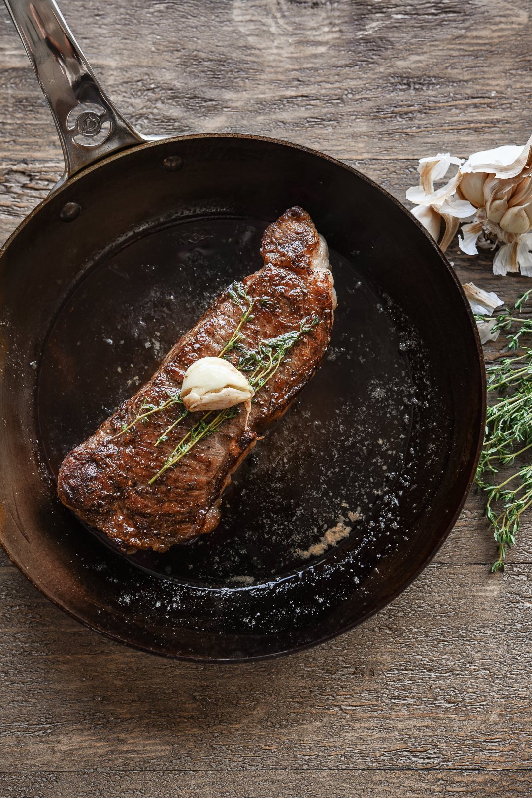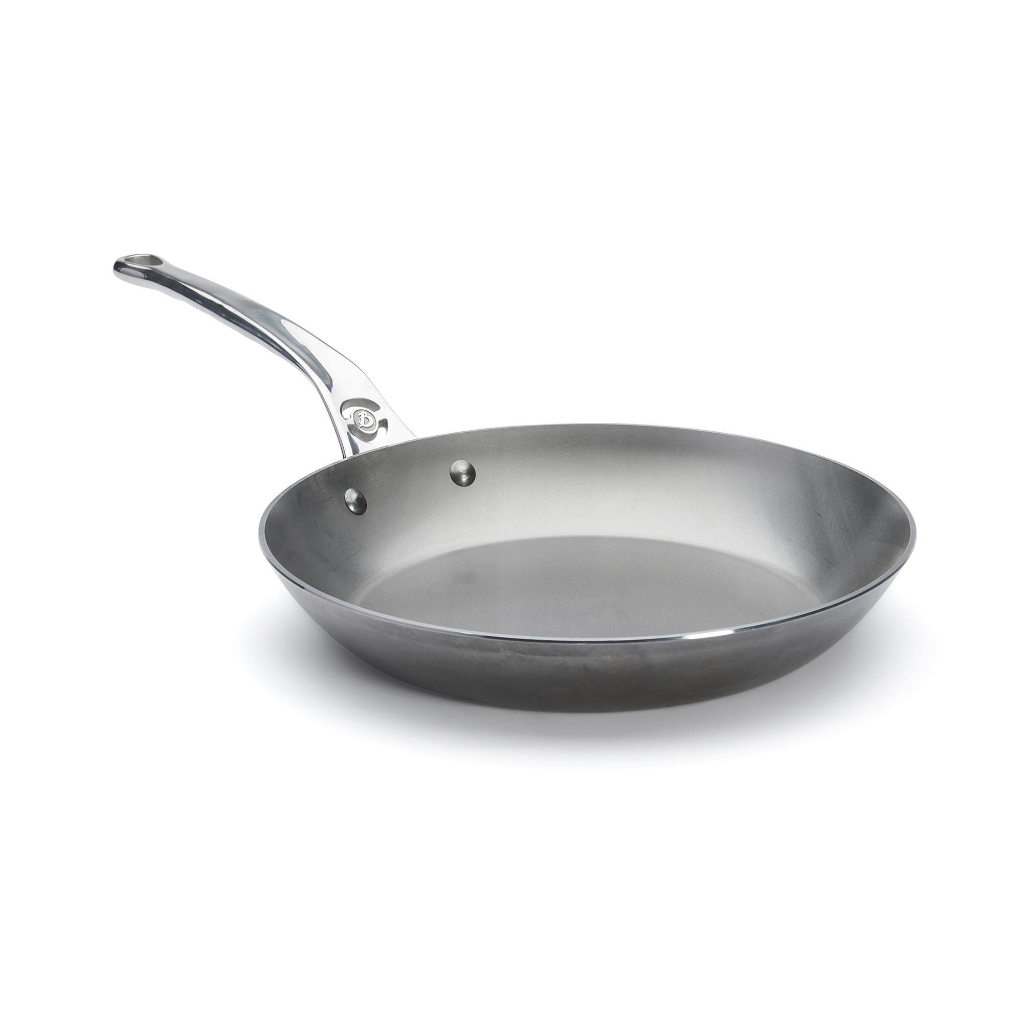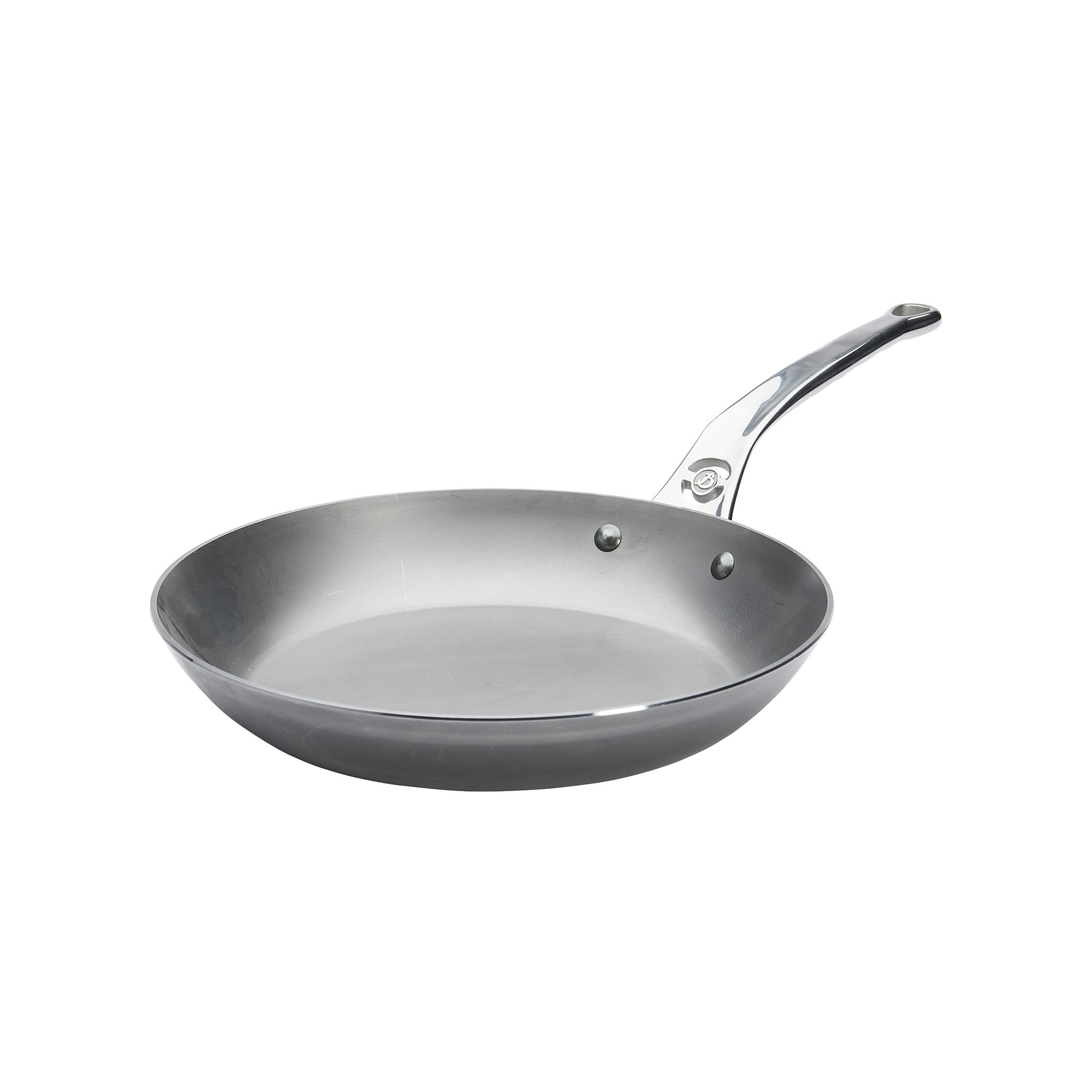 Професионален тиган, марка de Buyer с диаметър 28 см, височина 4 см, изработен от стомана с дебелина 3 мм, която не се деформира. Завършването е направено с естествен пчелен восък, който предпазва тигана от окисляване и улеснява операцията по seasoning преди употреба (вижте видеоклипа по-долу за подробности относно seasoning).