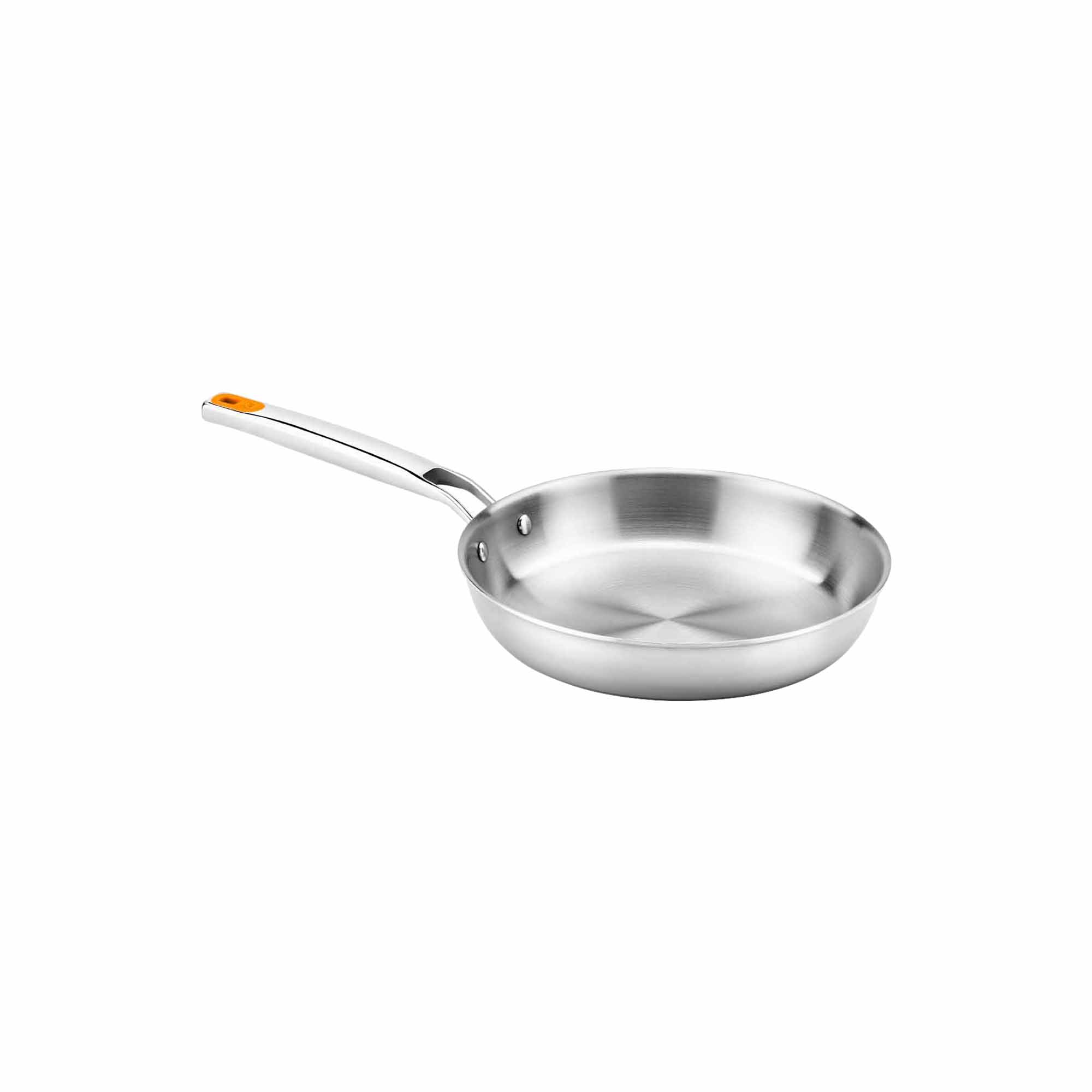 Премиум нитованата дръжка от неръждаема стомана му придава елегантен вид и осигурява удобно и сигурно управление. Освен това е подходящ за всички топлинни източници, включително индукционни, благодарение на трислойната си пълна индукционна основа.