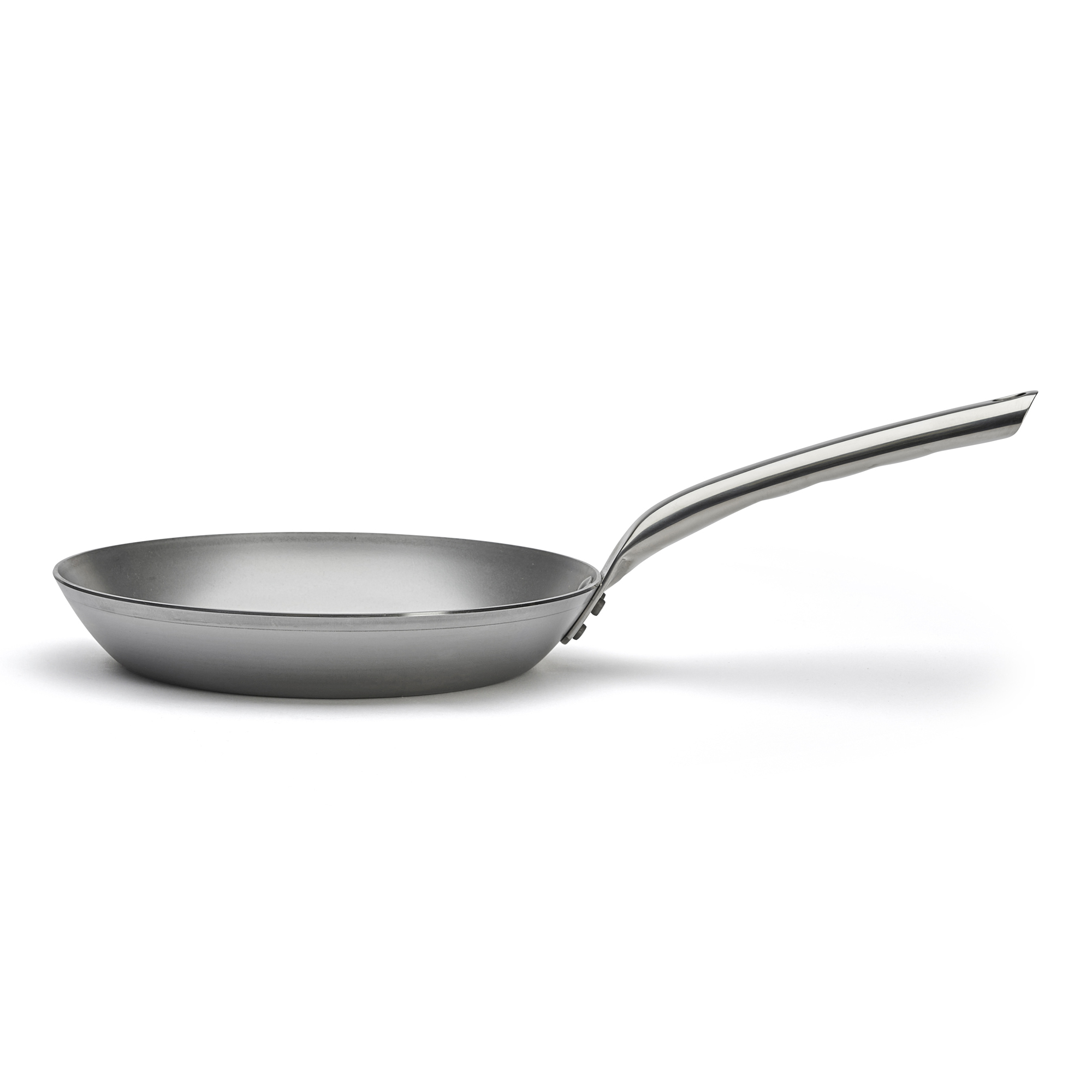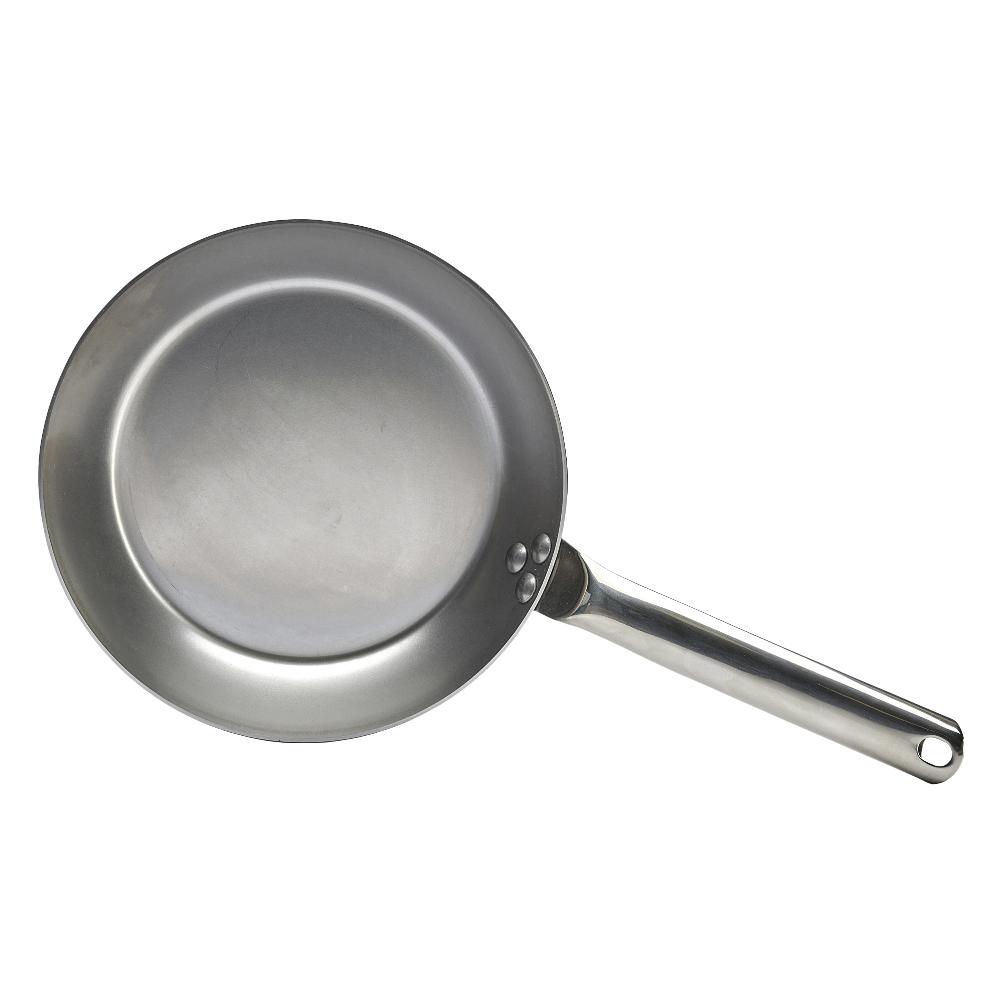 Професионален тиган - марка de Buyer - диаметър 24 см, височина 3,5 см, изработен от въглеродна стомана с дебелина 2,5 мм, която не се деформира. Тиганът е идеален за пържене и запичане на месо, риба или зеленчуци.