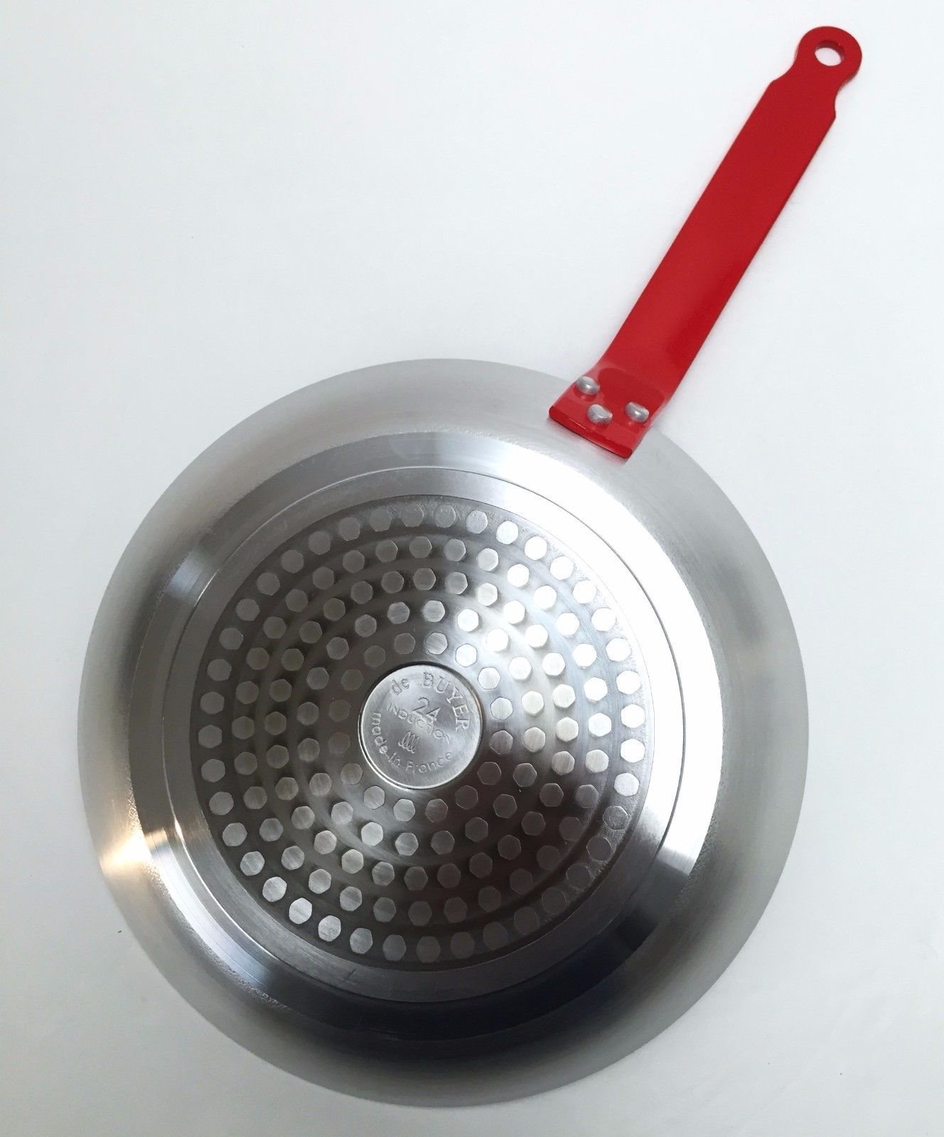 Тиган марка de Buyer с диаметър 28 см, височина 3,8 см, изработен от алуминий с дебелина 5 мм. Има незалепващ слой от PTFE, състоящ се от 5 слоя, който не съдържа PFOA и има повишена устойчивост на надраскване. Тиганът е в съответствие с международните HACCP стандарти.