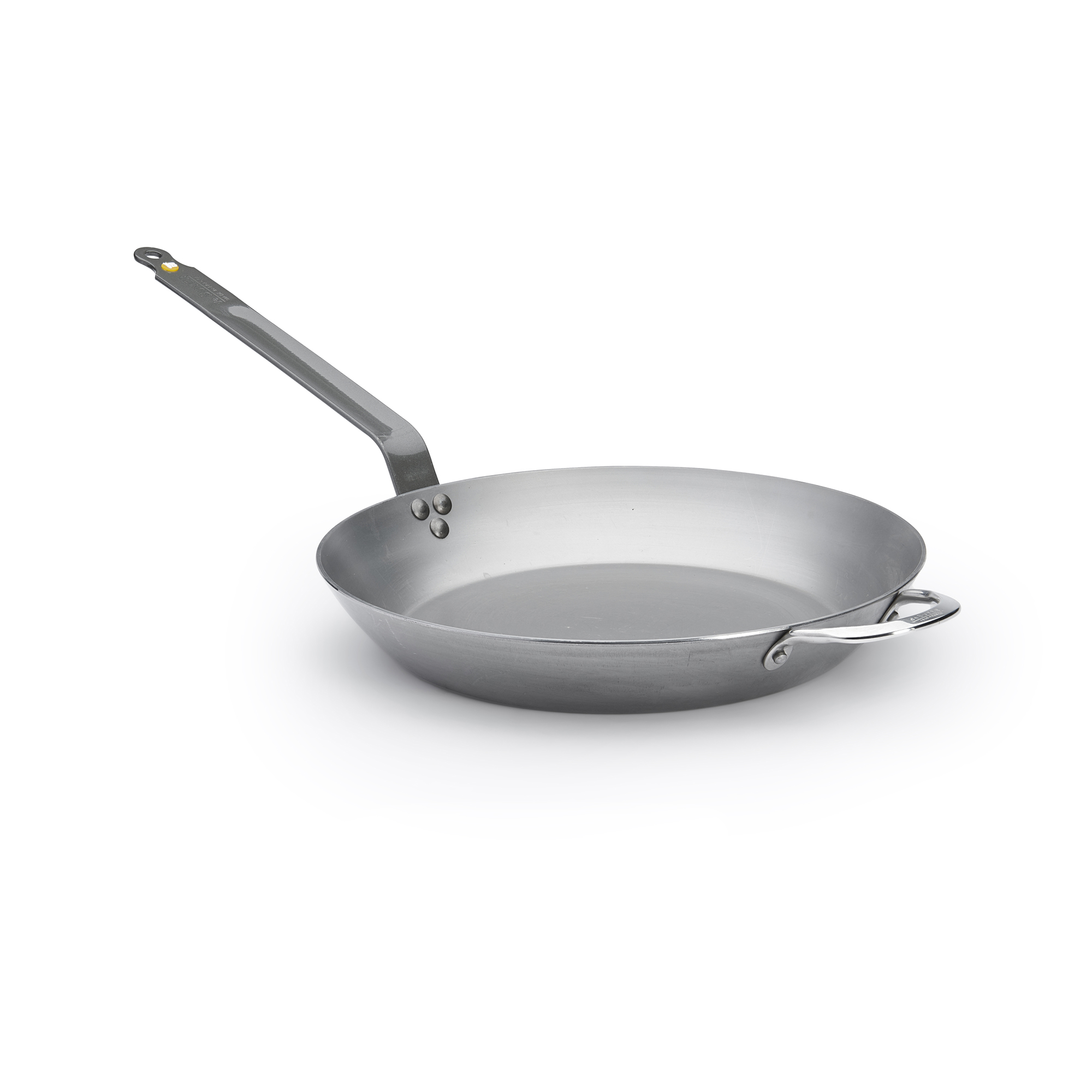 Тиган с професионално качество - марка de Buyer - диаметър 36 см, височина 5 см, изработен от стомана с дебелина 3 мм, която не се деформира.
