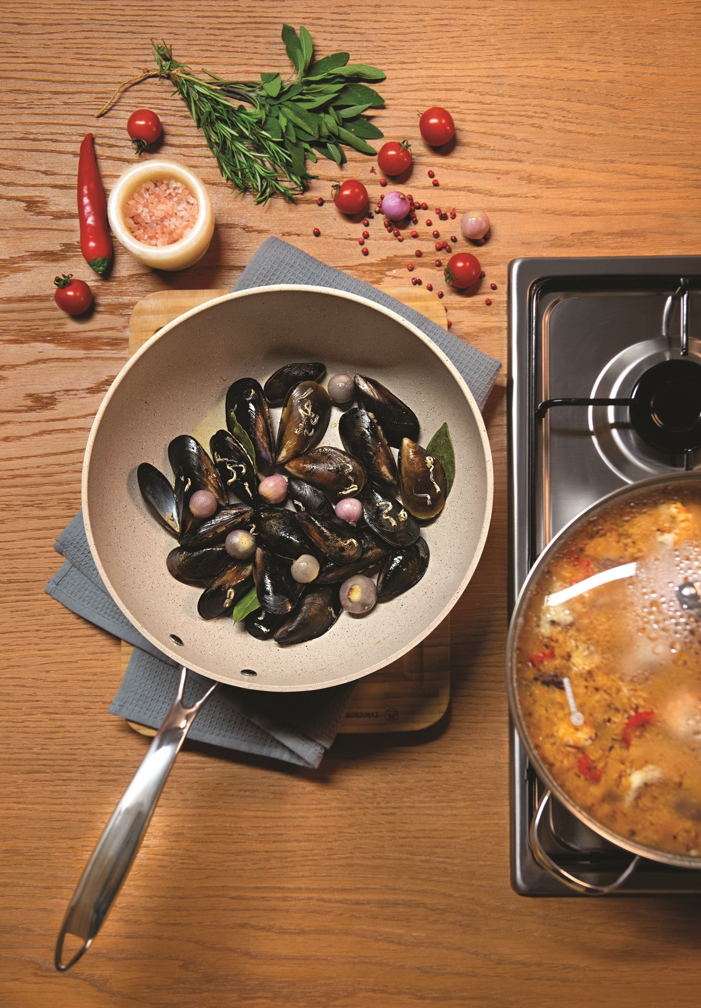 Незалепващият слой не съдържа PFOA, кадмий или олово и ще ви помогне да приготвите здравословни и вкусни ястия с по-малко олио за готвене, отколкото в други видове съдове за готвене.