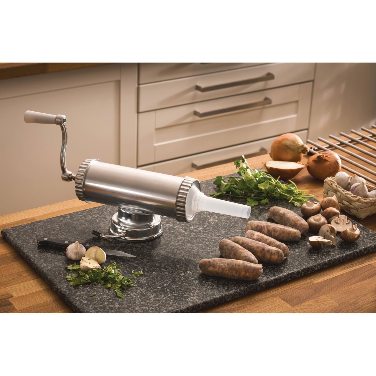 Освен това, можеш да приготвиш наденици с различна дебелина, в зависимост от диаметъра на тръба за пълнене, която ще избереш- 15, 19, 22 мм.
