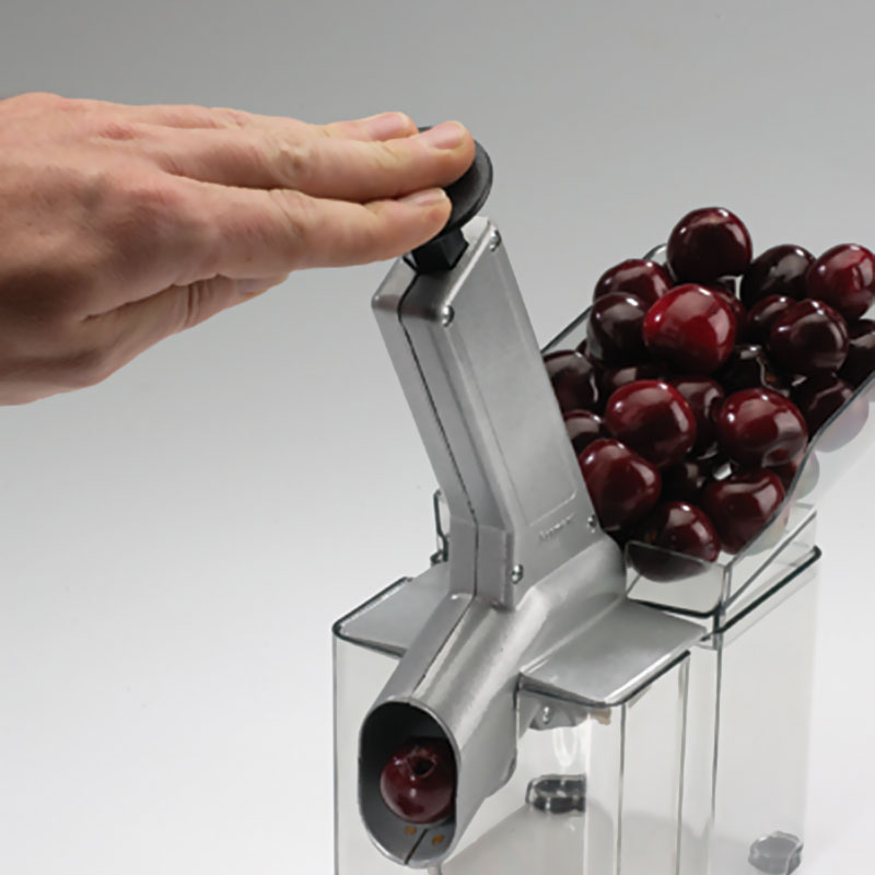 Има специален механизъм за бързо отстраняване на черешовите костилки (чрез перфорация). Може да обработва над 15 кг череши на час .